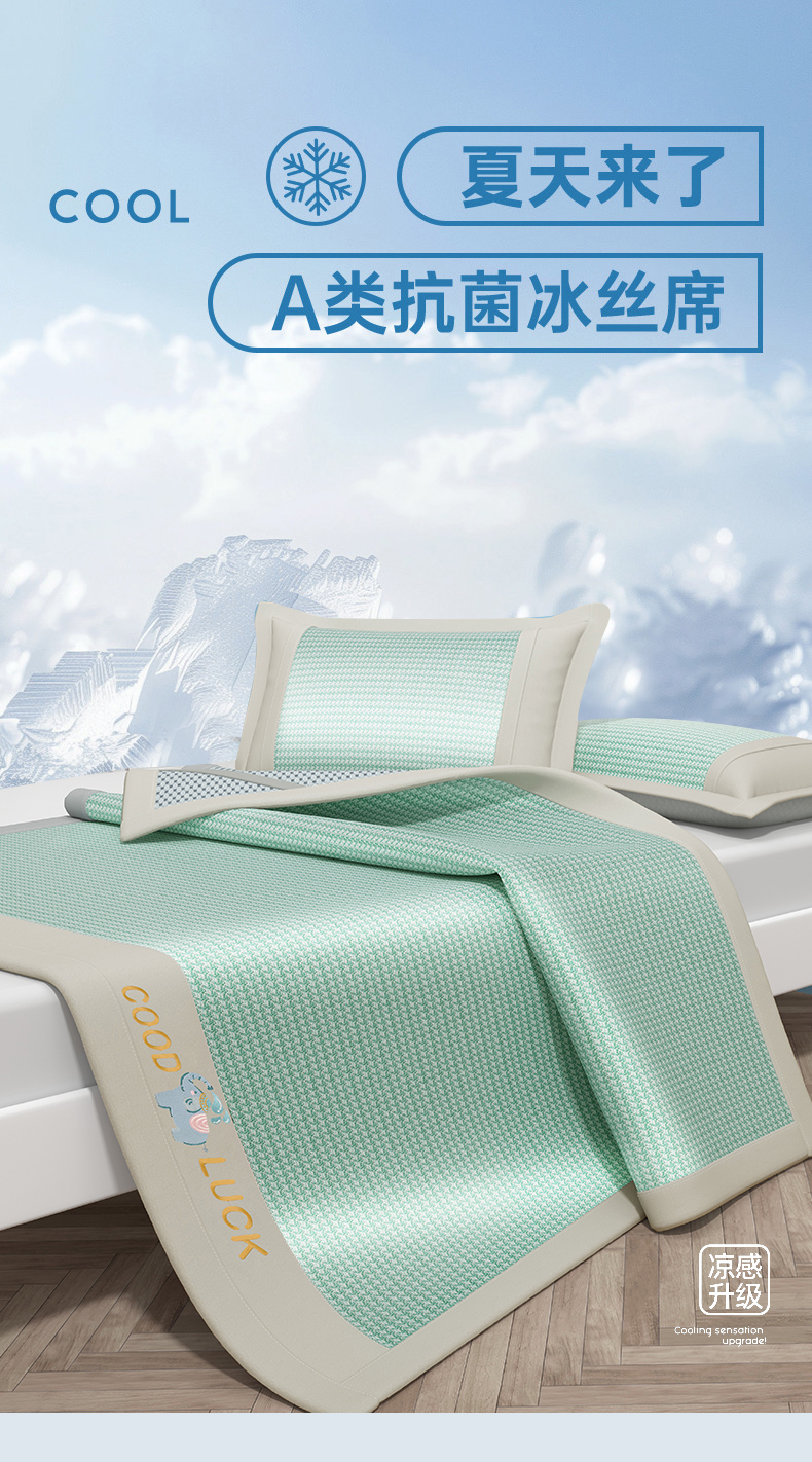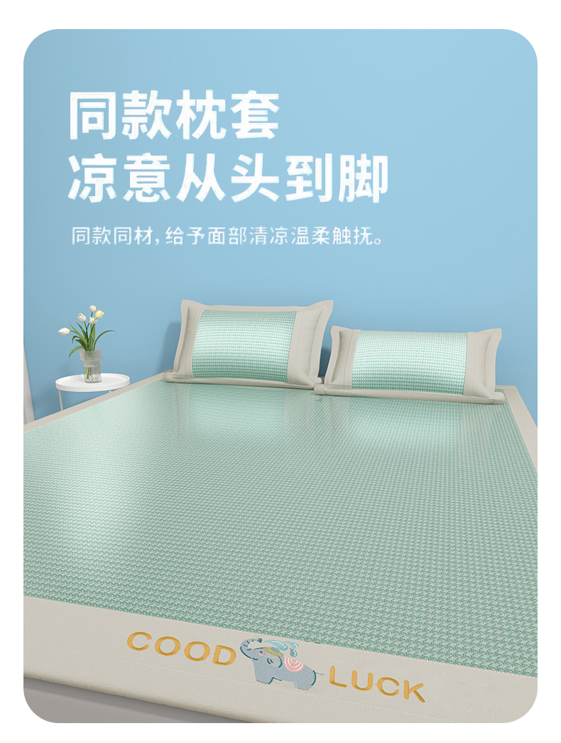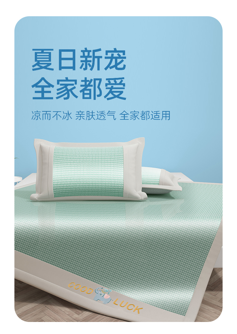 当前位置: 91家纺网 > 商品网购 > 床上用品 > 凉席 > 冰丝席 > 绒艺席业 2025新款A类抗菌冰丝凉席系列-小象宝款 绿色