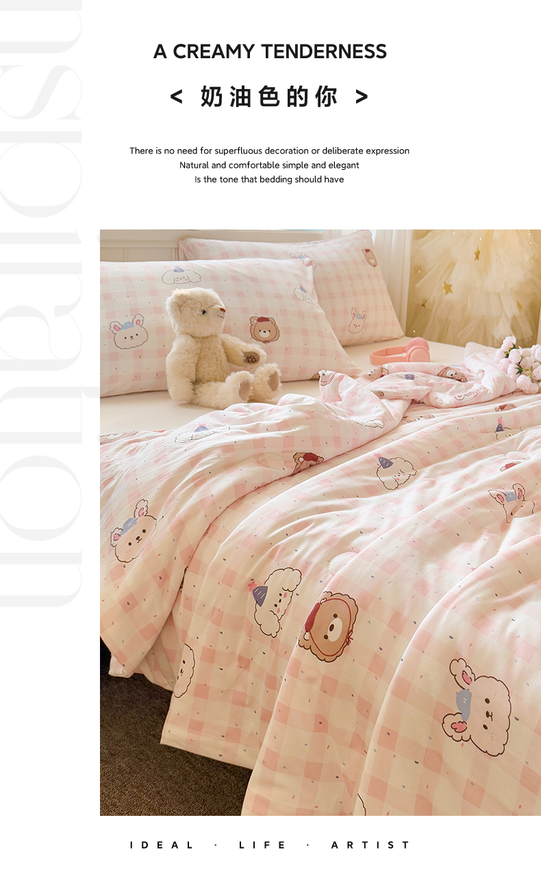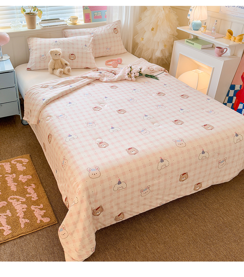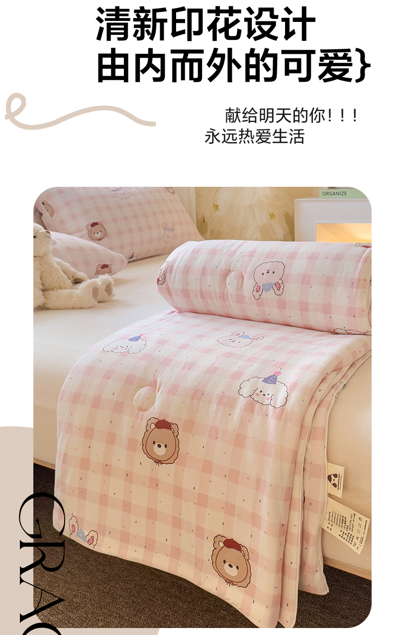 商品名称:名兮家居 2025新款针织棉夏凉被 粉格宝贝