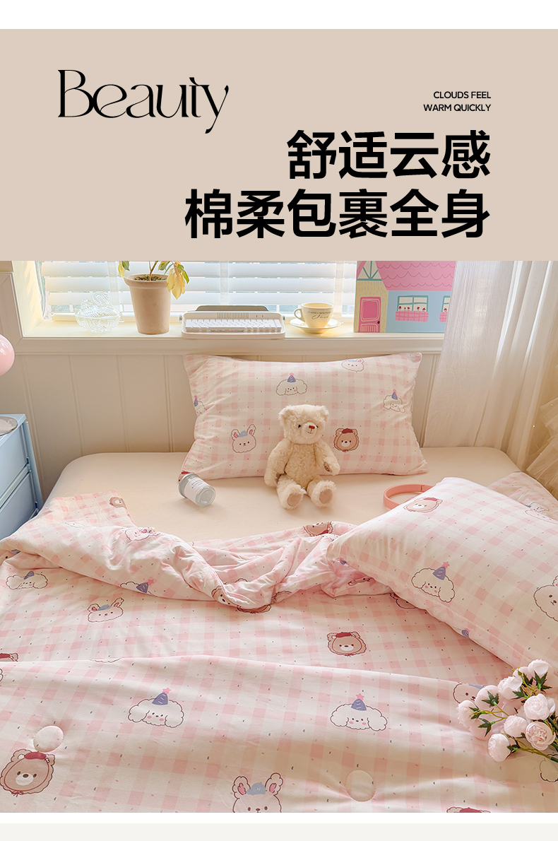 (总)名兮 2023新款全棉印花卡通风四件套,抱抱熊,波波熊,菲菲兔,机器小新,可爱萌宠,可爱兔