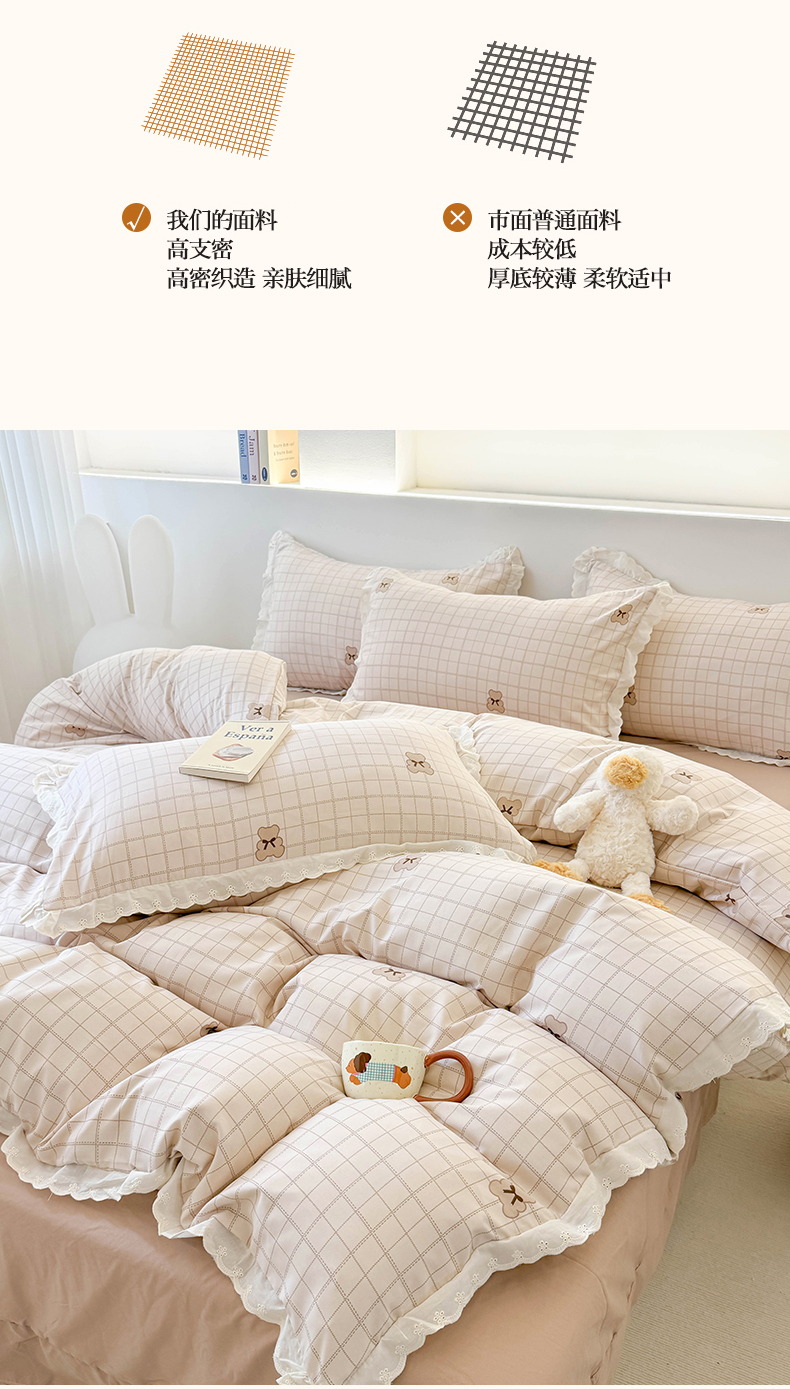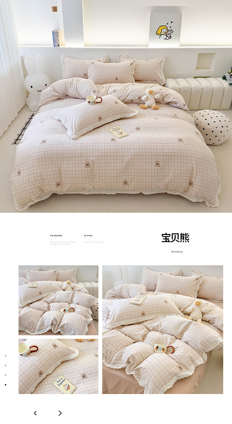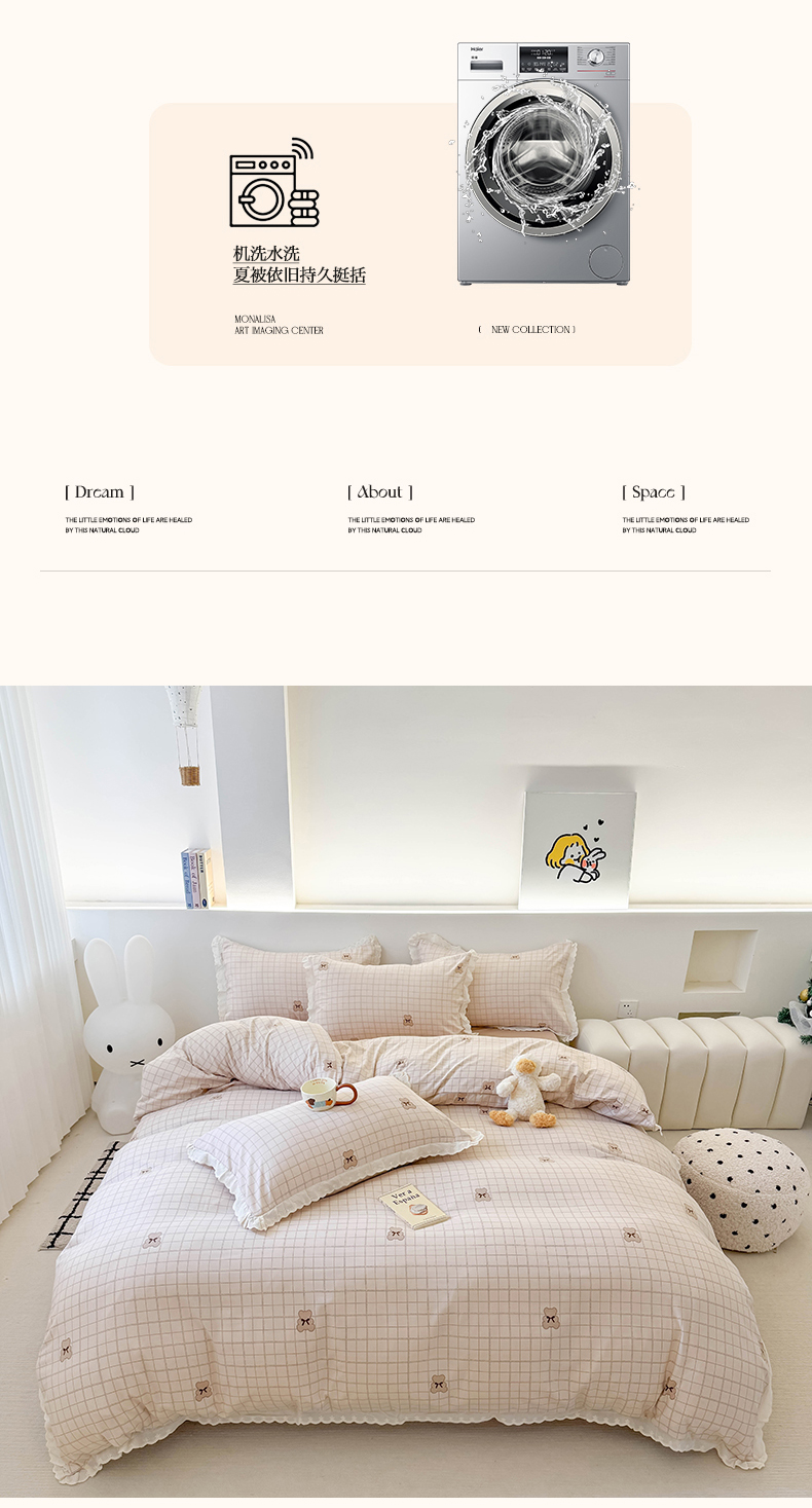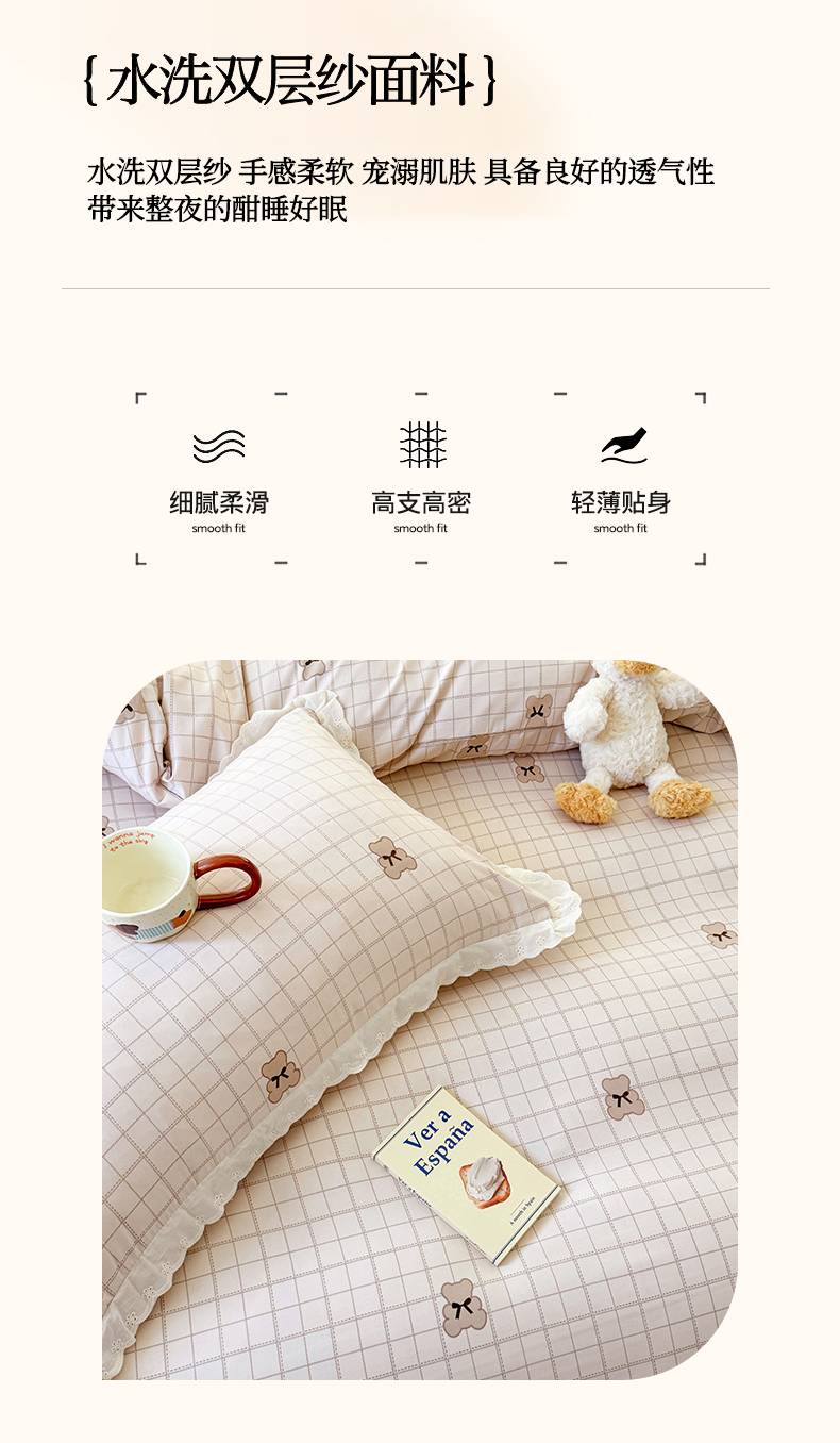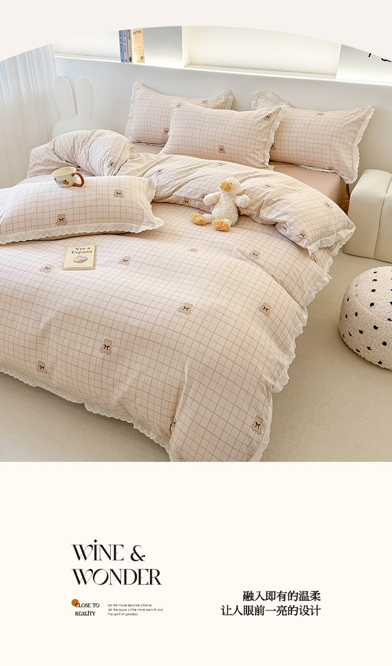 商品名称:吾欢心 2025新款韩版花边水洗双层纱四件套夏被四件套(棚拍图) 宝贝熊