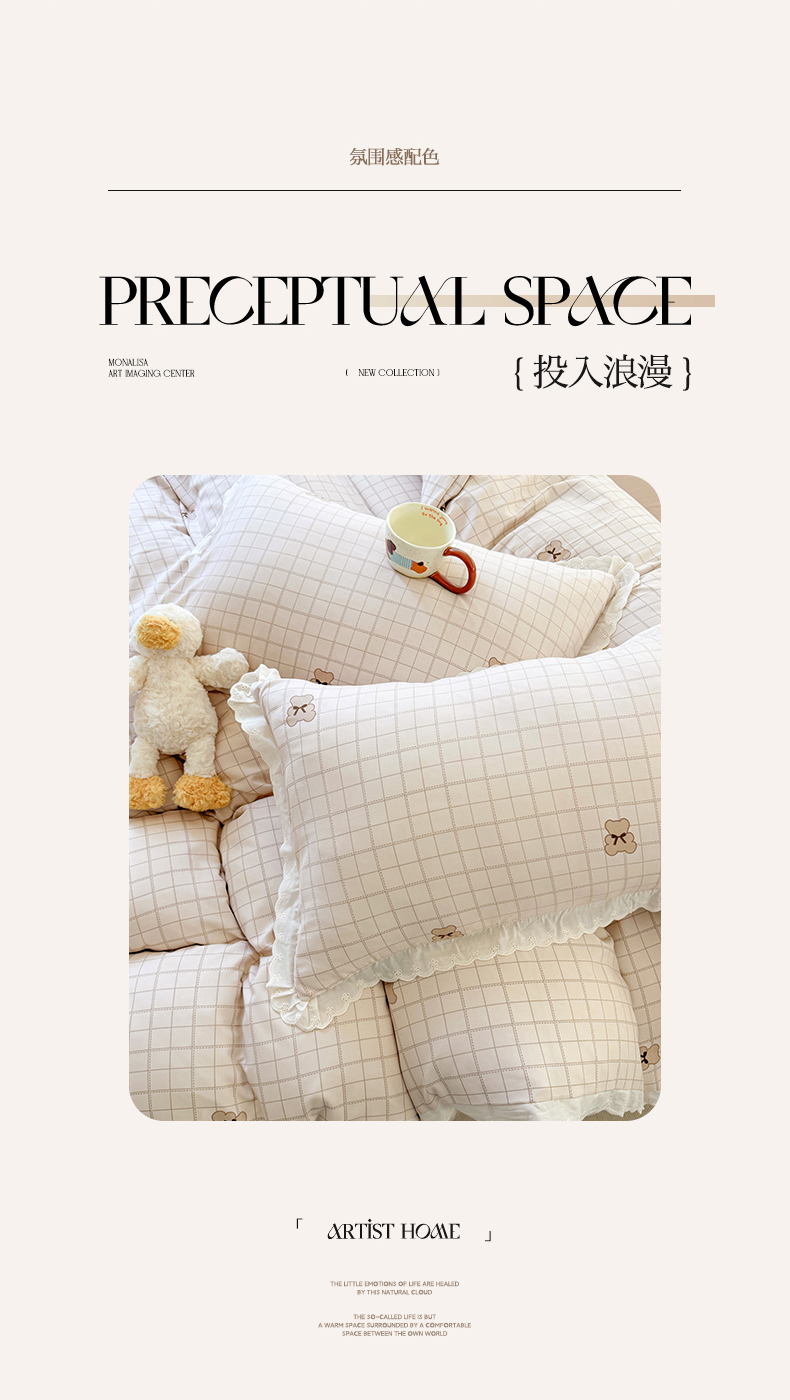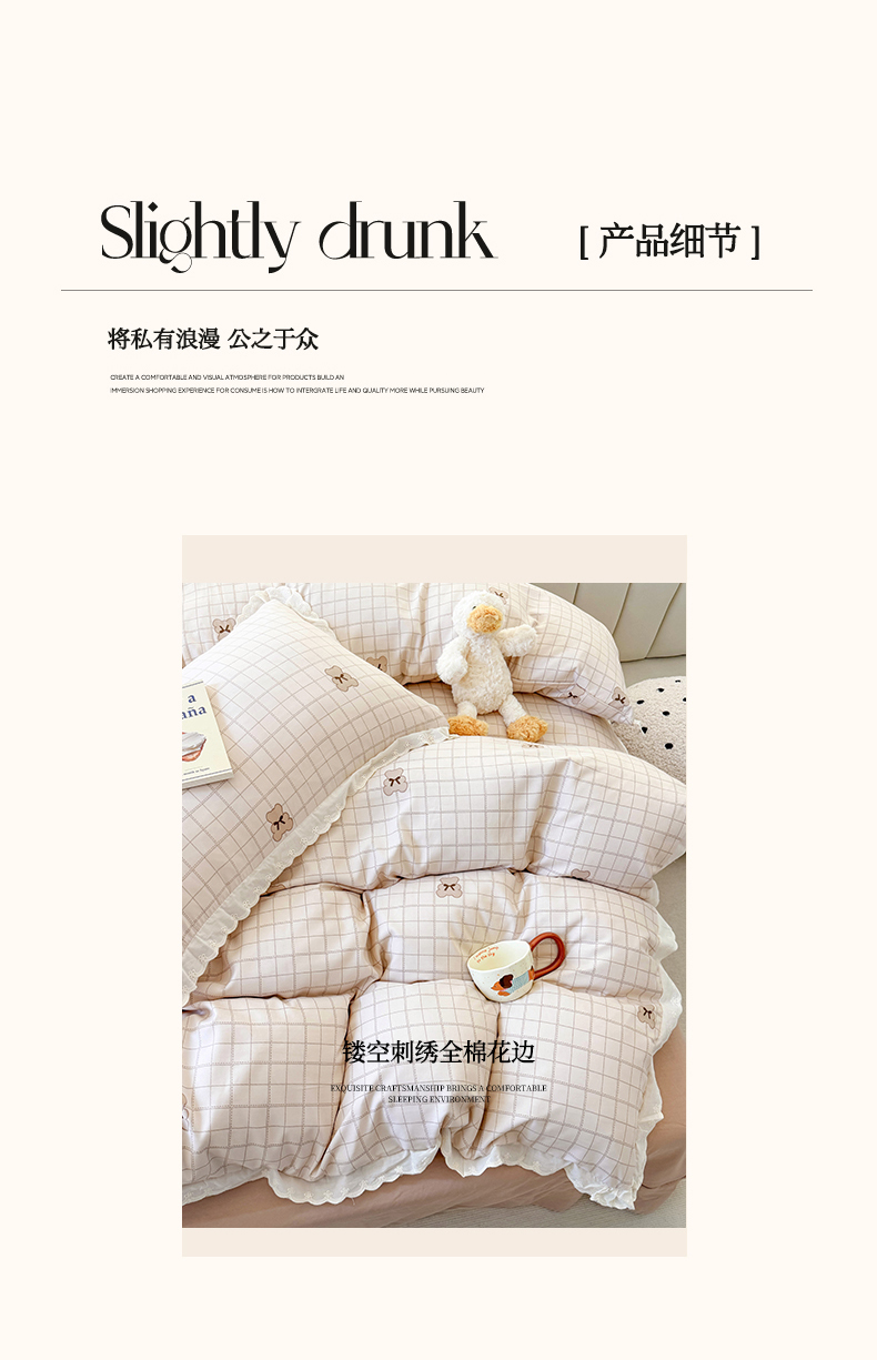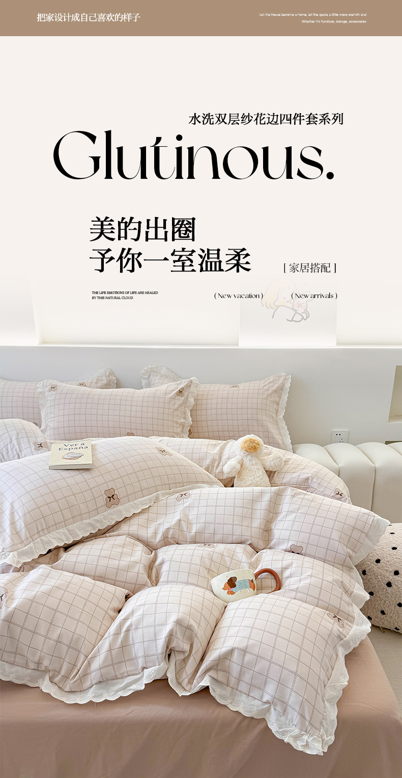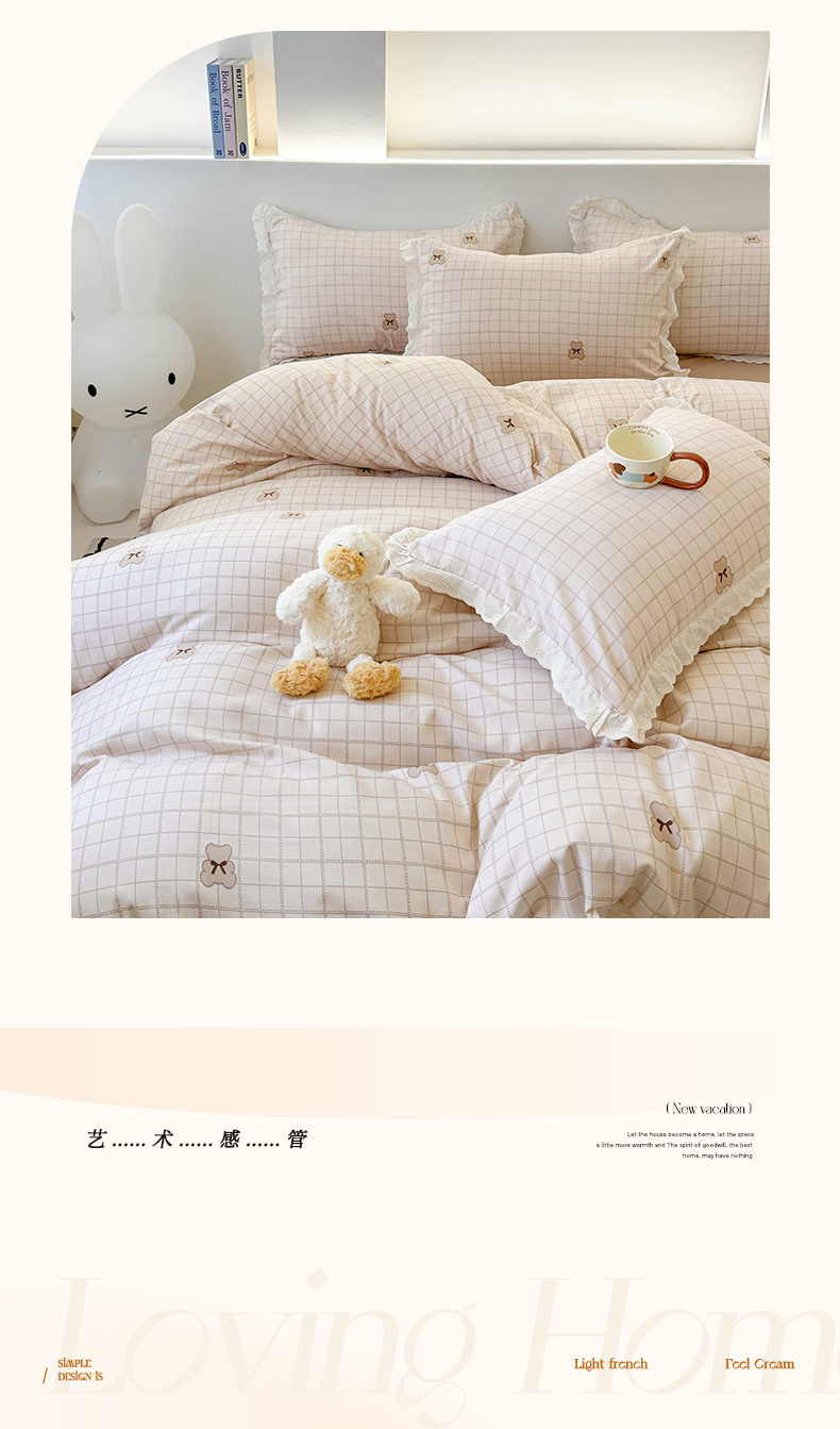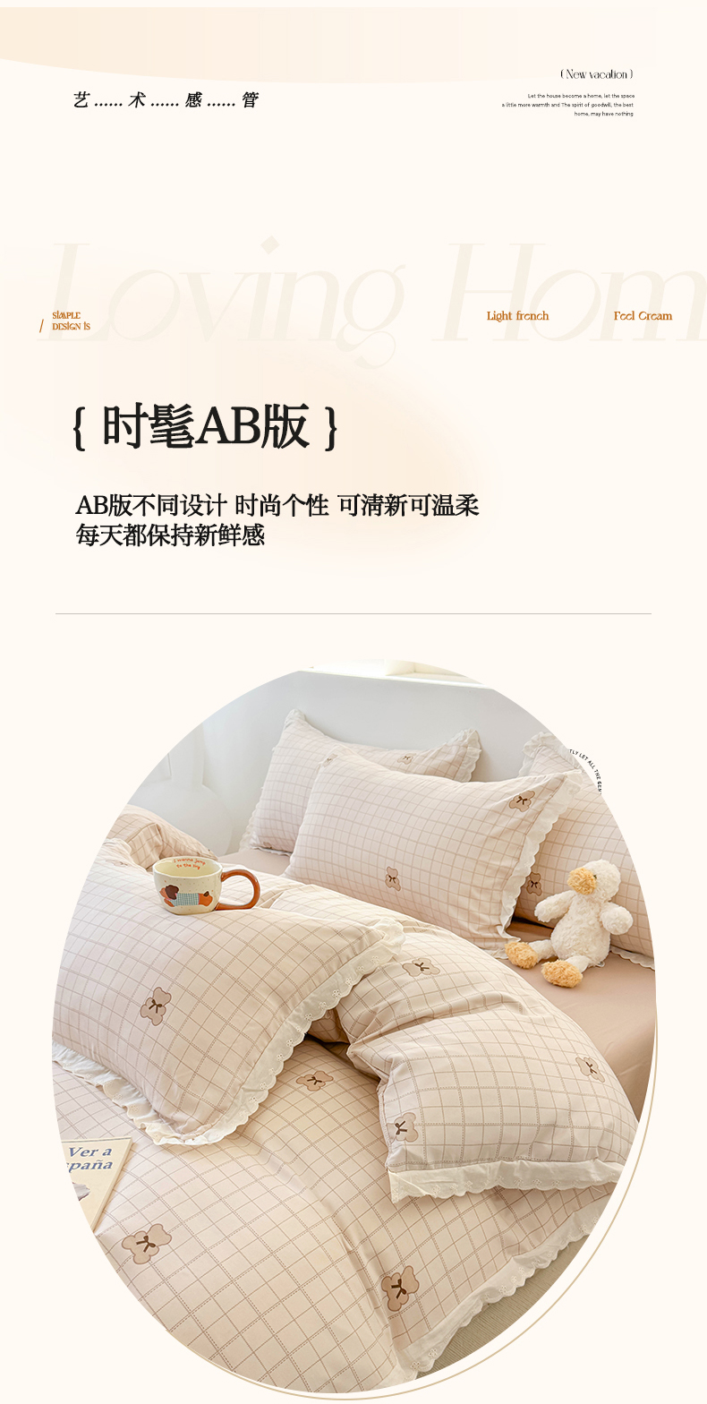 商品名称:吾欢心 2025新款韩版花边水洗双层纱四件套夏被四件套(棚拍图) 宝贝熊