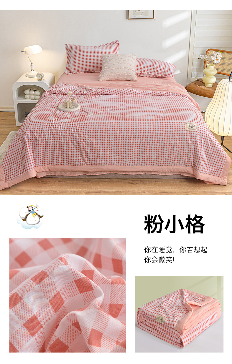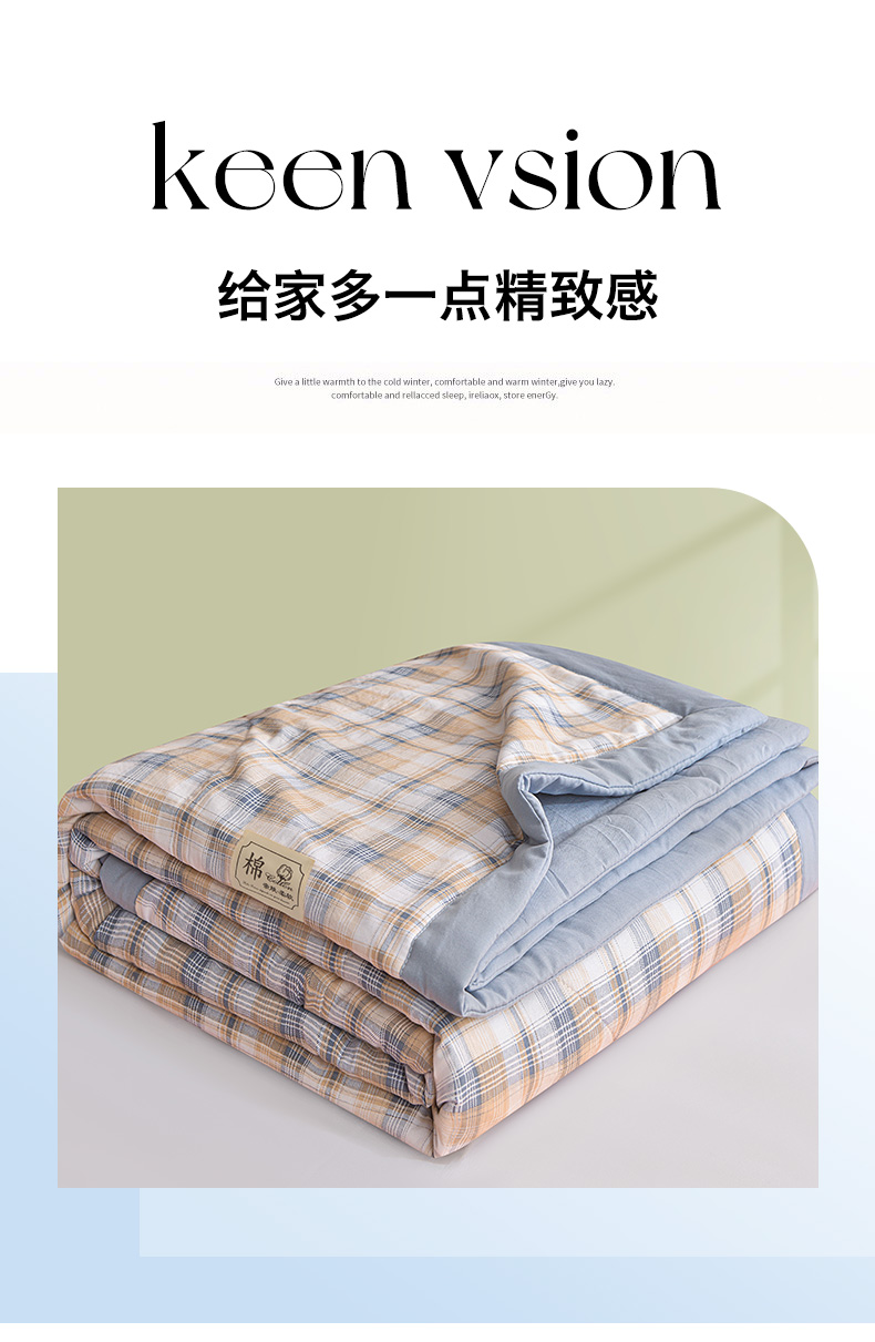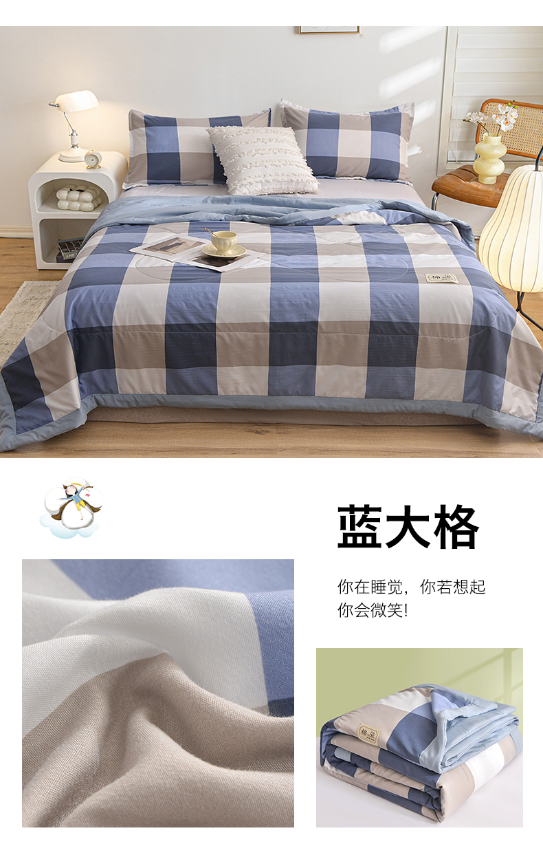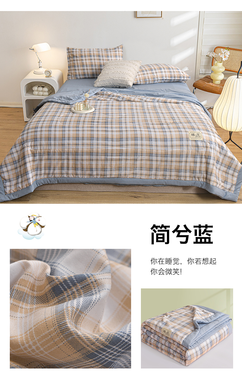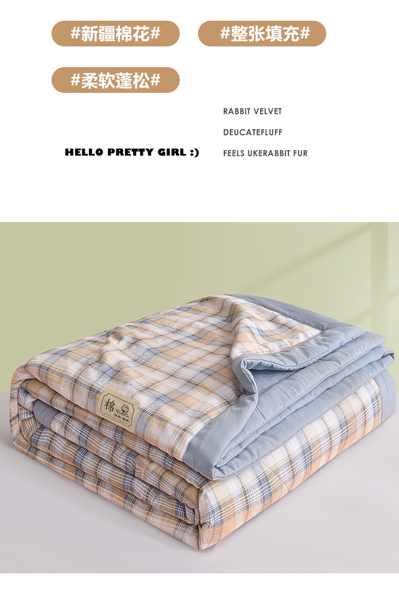 商品名称:(总)小鱼儿家纺 2025新款A类母婴级高克重色织水洗棉100%新疆棉花被夏被空调被夏凉被纯手工包边被子被芯可机洗