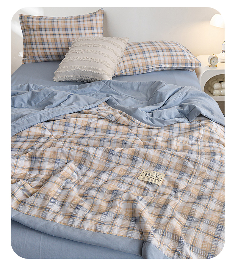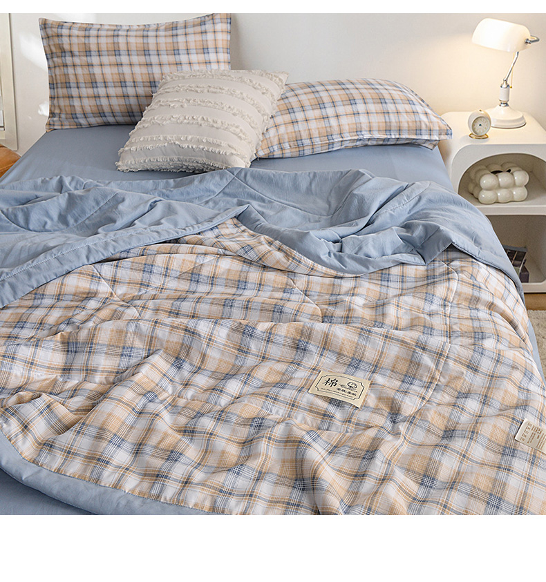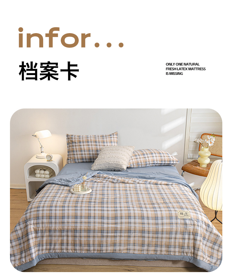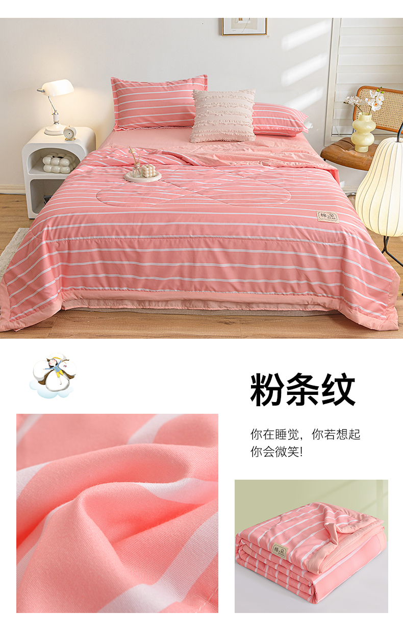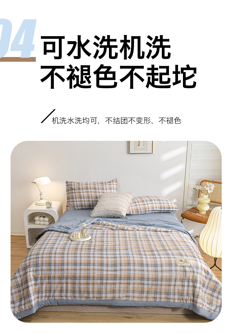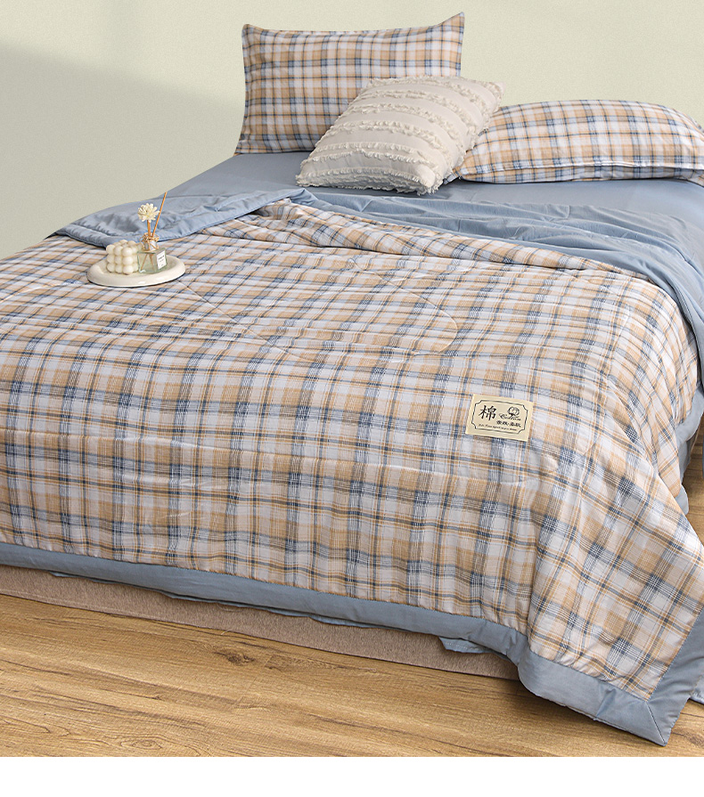 商品名称:(总)小鱼儿家纺 2025新款A类母婴级高克重色织水洗棉100%新疆棉花被夏被空调被夏凉被纯手工包边被子被芯可机洗