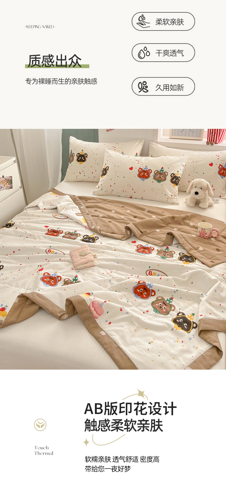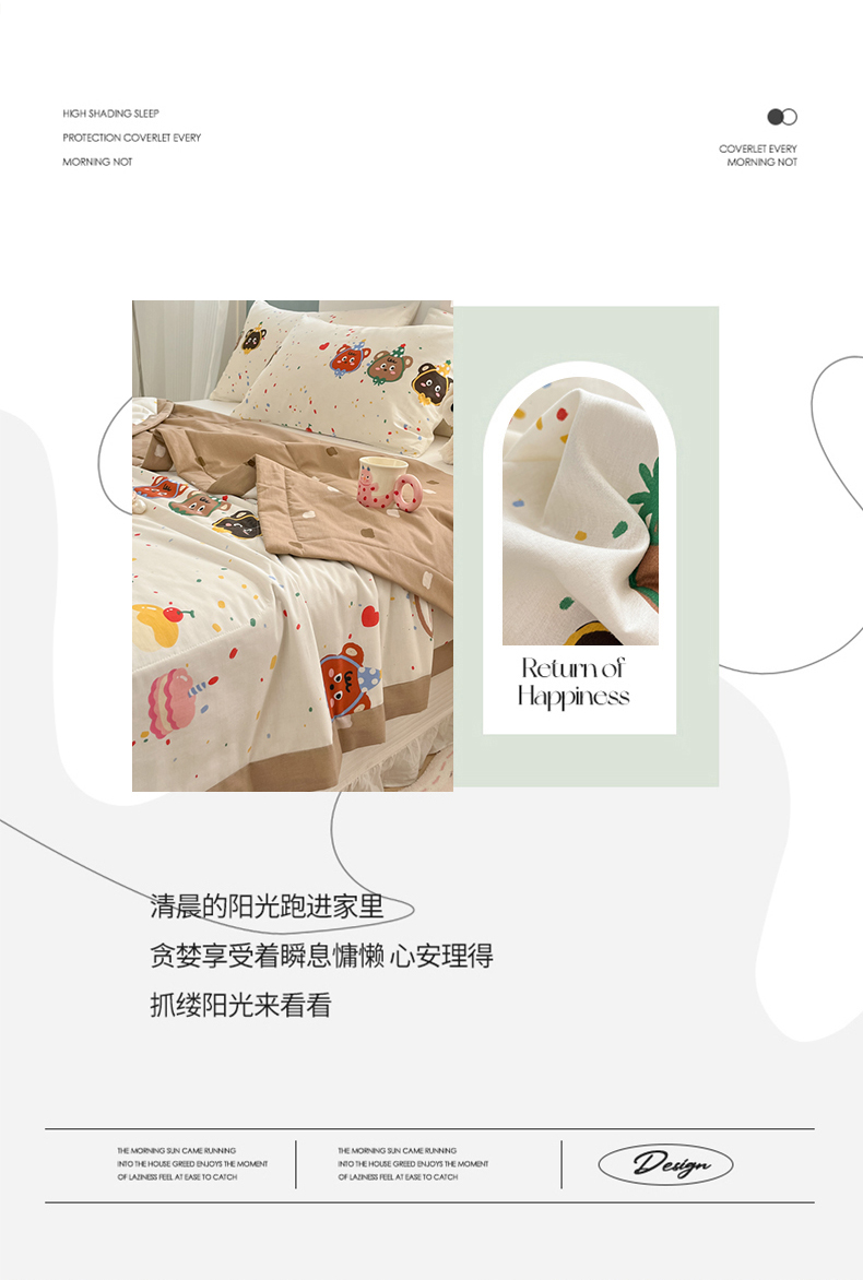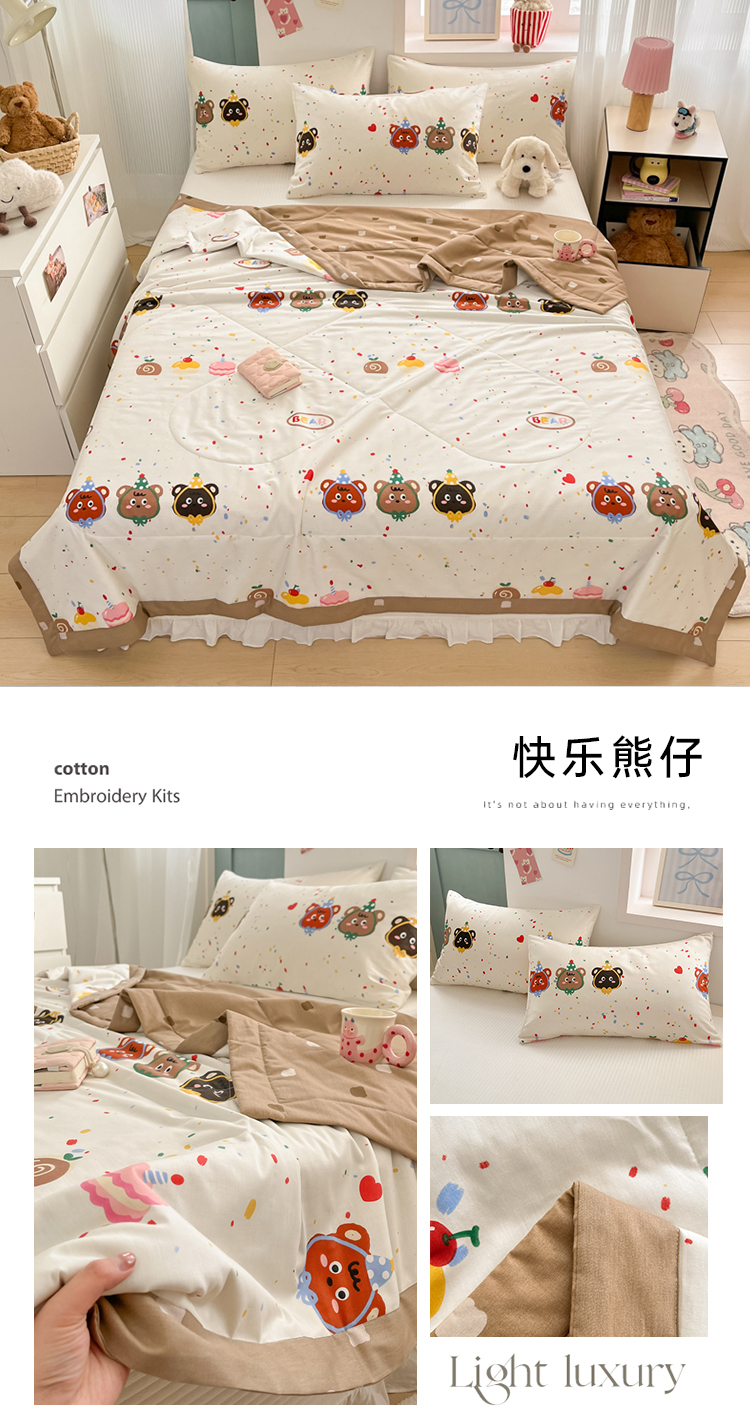 当前位置: 91家纺网 > 商品网购 > 被子 > 夏被 > 寻米 2025新款13070全棉纯棉印花夏被夏凉被空调被 快乐熊仔