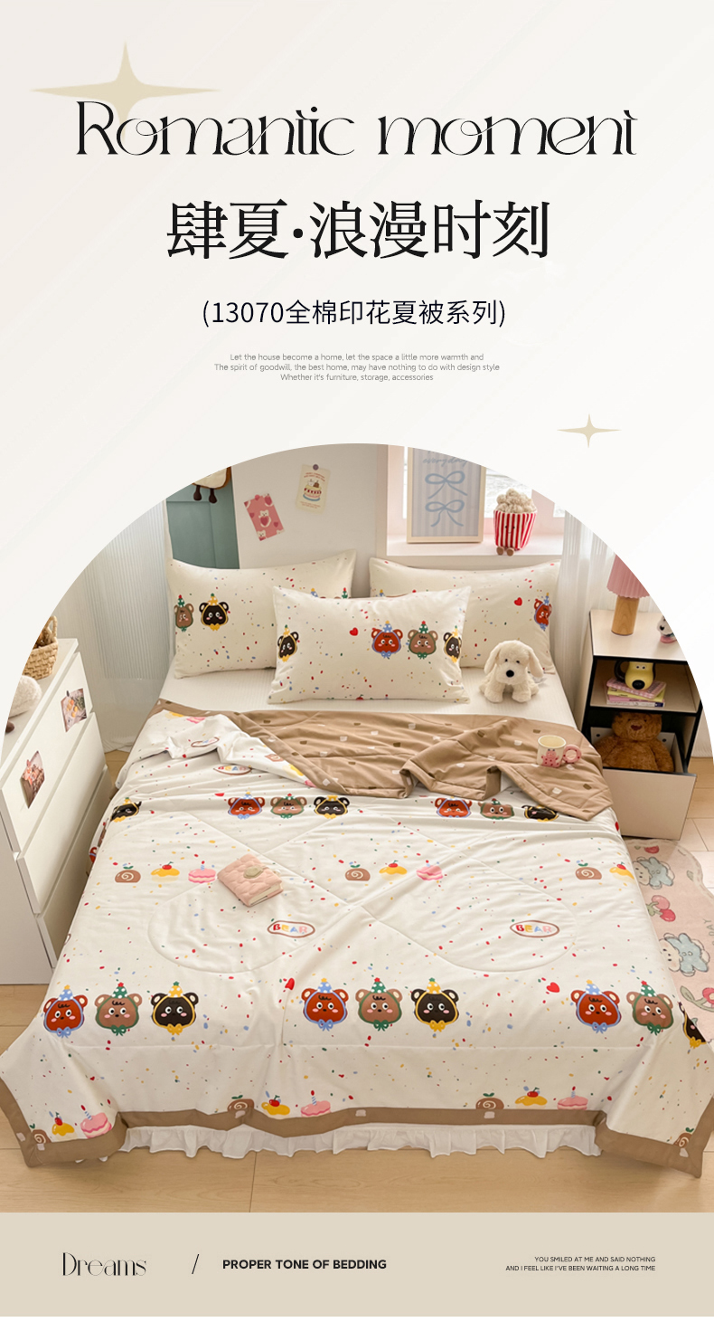 • 91家纺网 家纺一手货源 找家纺 寻米 2025新款13070全棉纯棉印花夏被夏凉被空调被 快乐熊仔