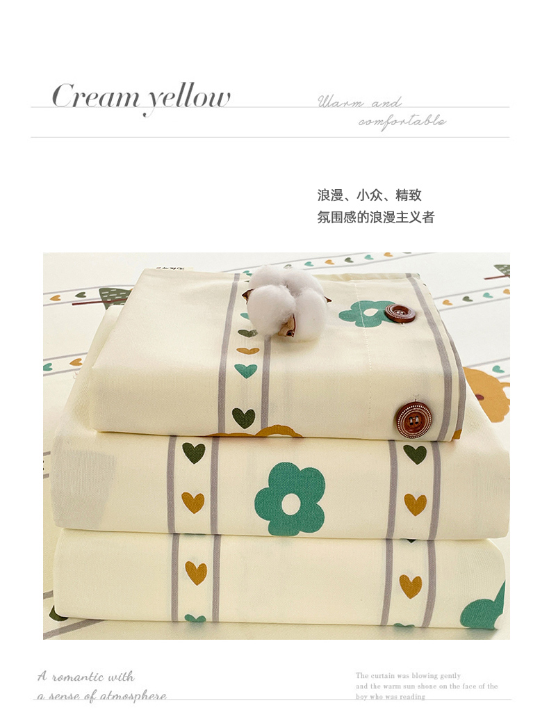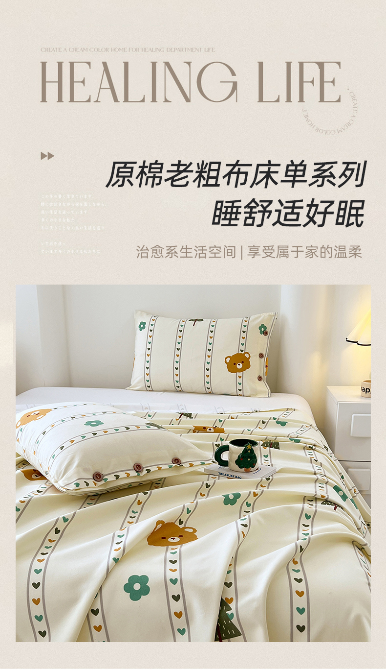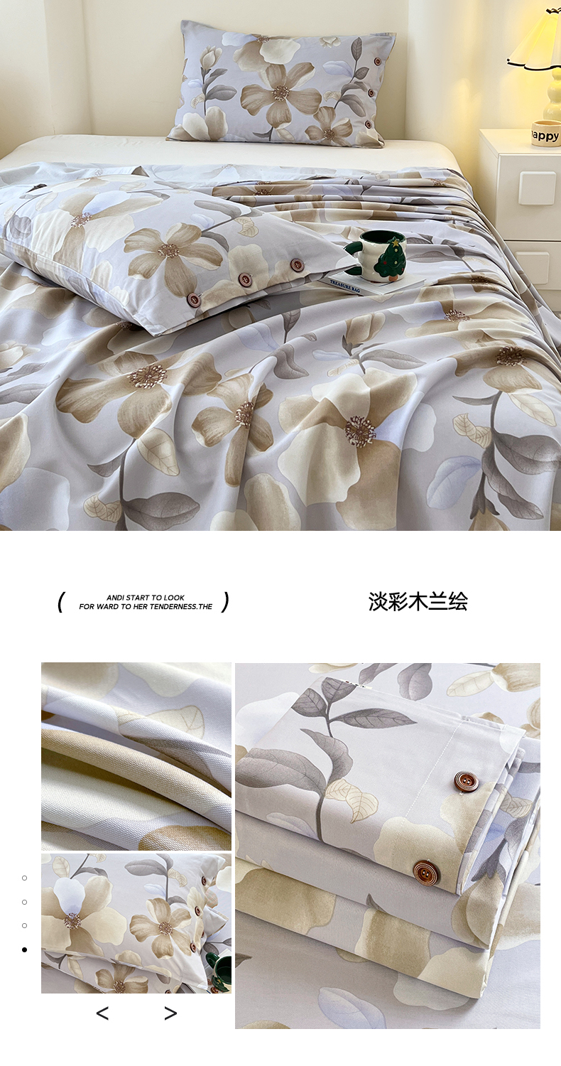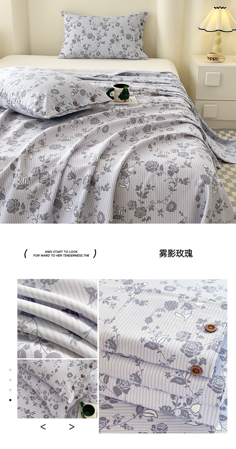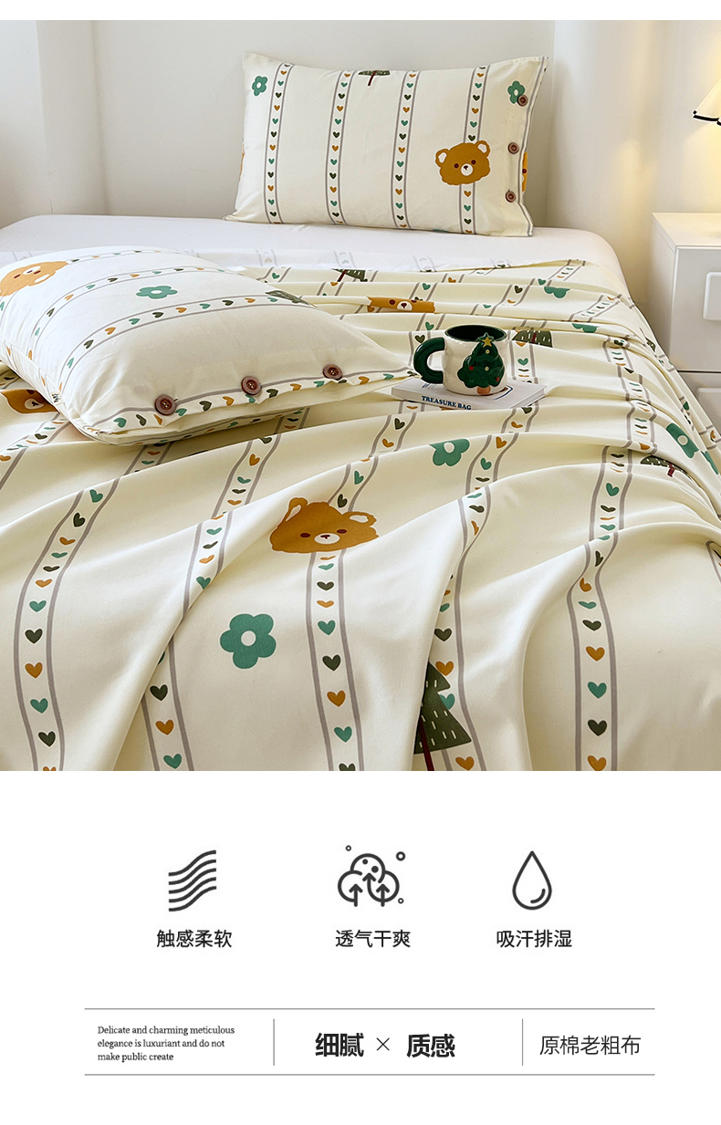 商品名称:(总)原棉老粗布三件套2025新款简约花卉空调凉被单亲肤舒适印花床单款