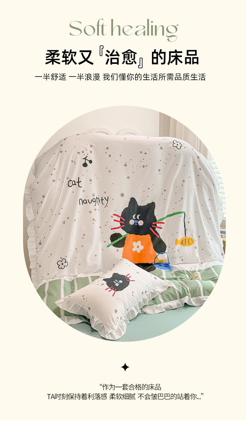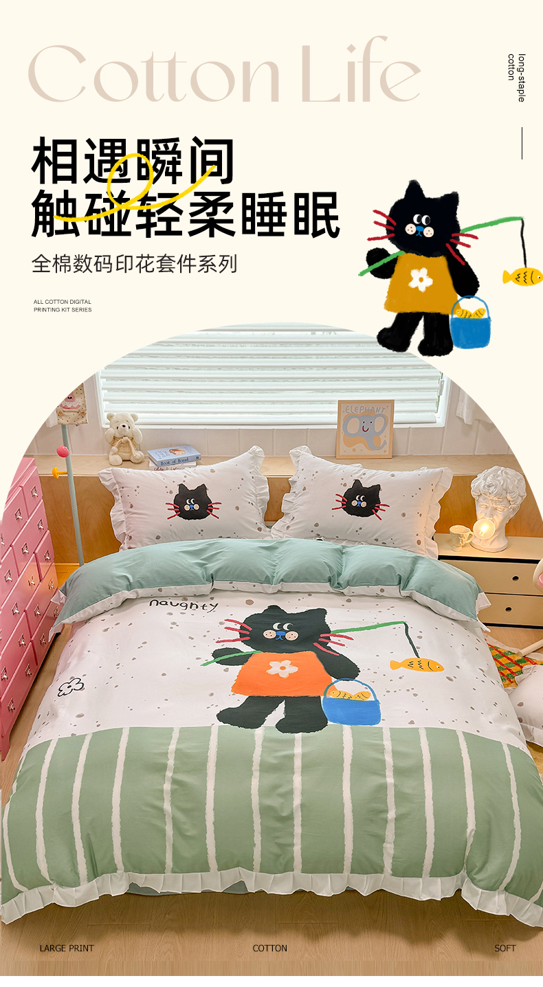 当前位置: 91家纺网 > 商品网购 > 床品套件 > 四件套 > 全棉普通四件套 > 玉元坊 2025新款全棉纯棉数码印花四件套 猫钓鱼
