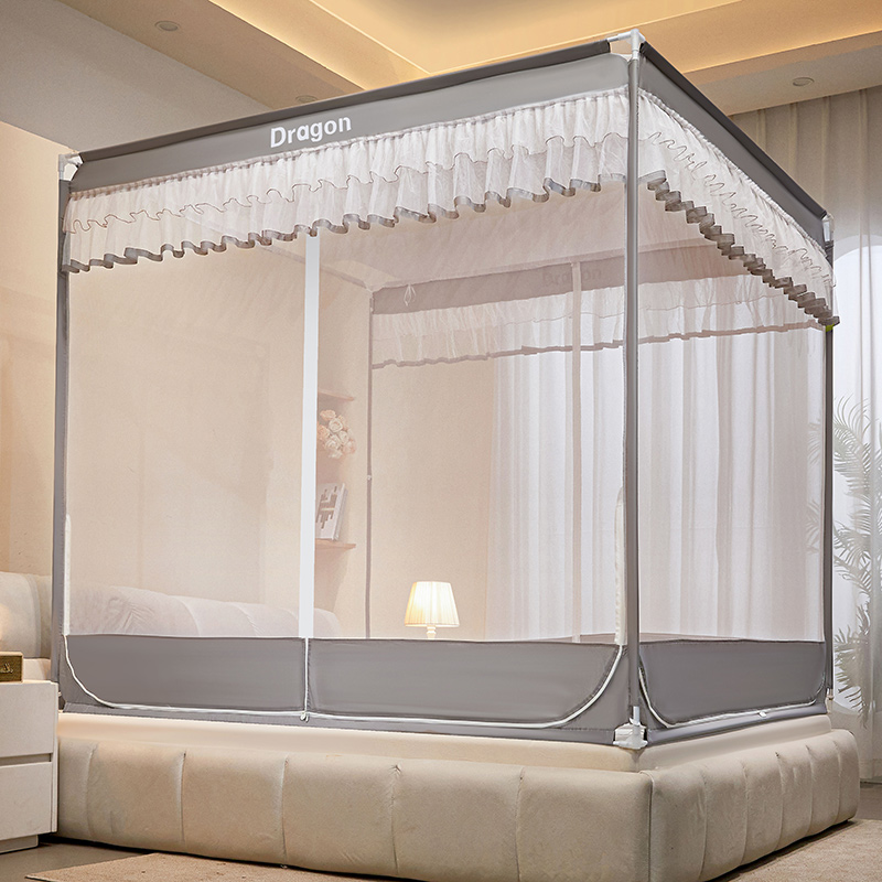 冉美家纺 2025新款T+U门坐床蚊帐 夏茵-简灰