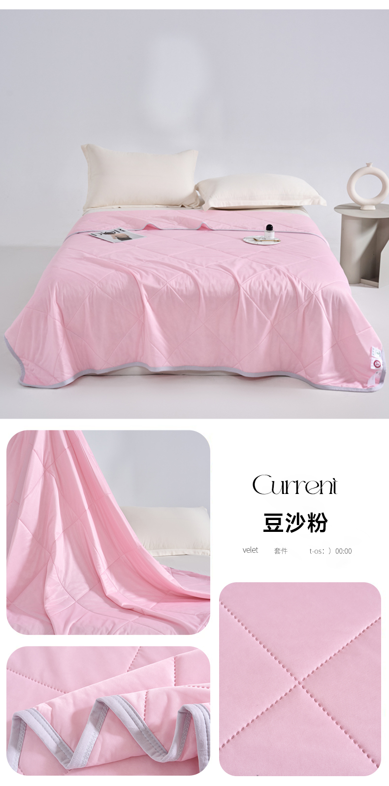 商品名称:晚爱 2025A类氨纶凉感天丝夏被纯色印花冰淇淋夏凉被可机洗空调被 CS豆沙粉
