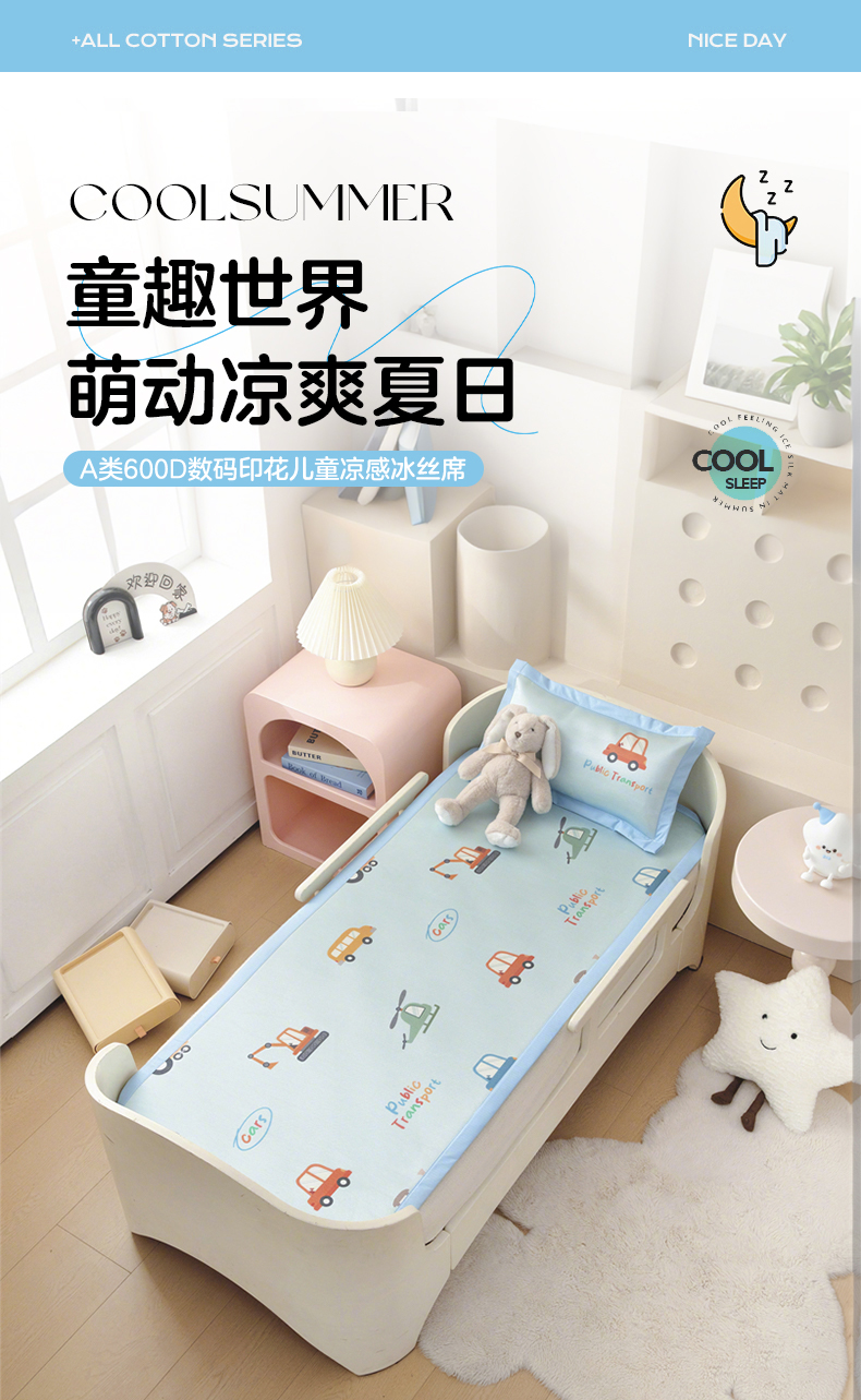 商品名称:御棉坊 2025新款A类600D数码印花儿童凉席 汽车乐园