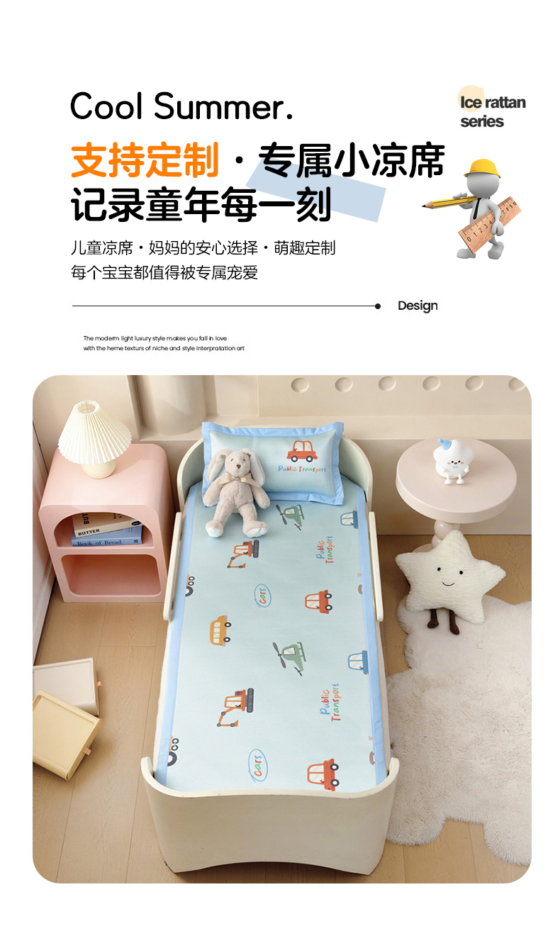 御棉坊 2025新款A类600D数码印花儿童凉席 汽车乐园