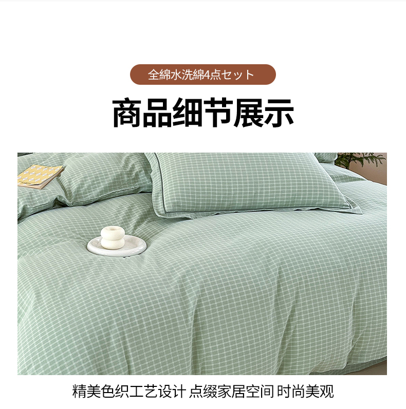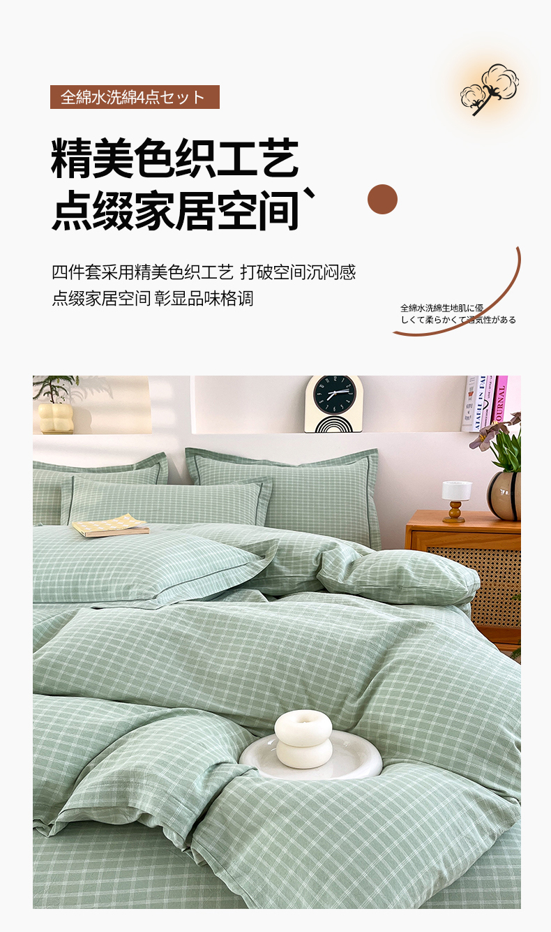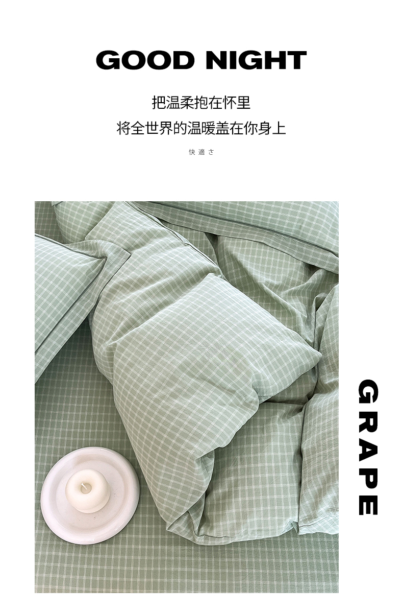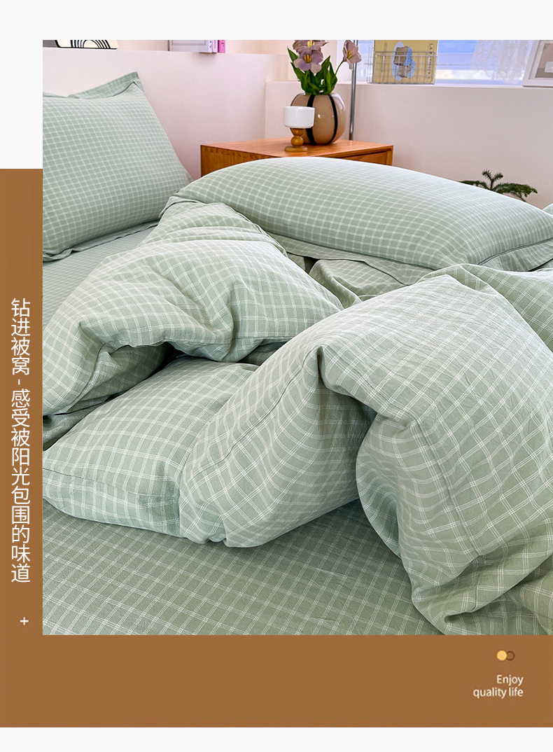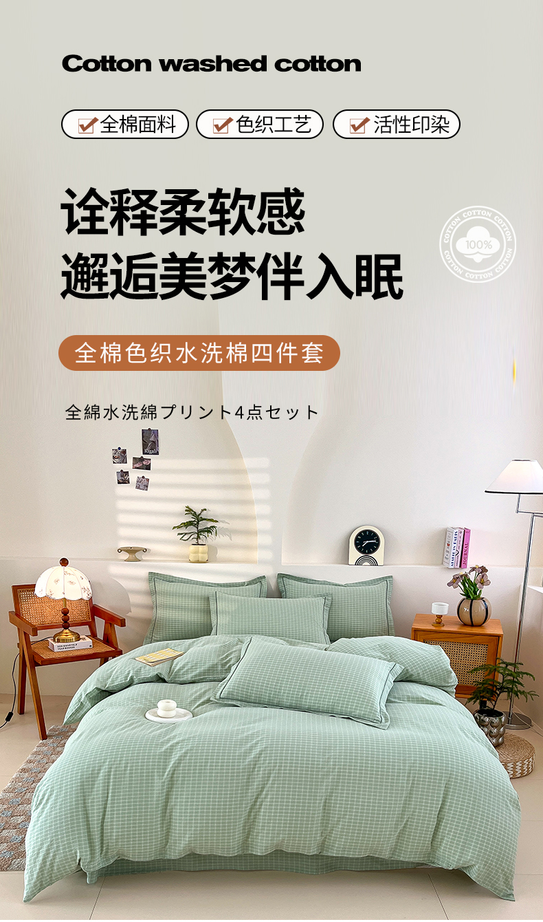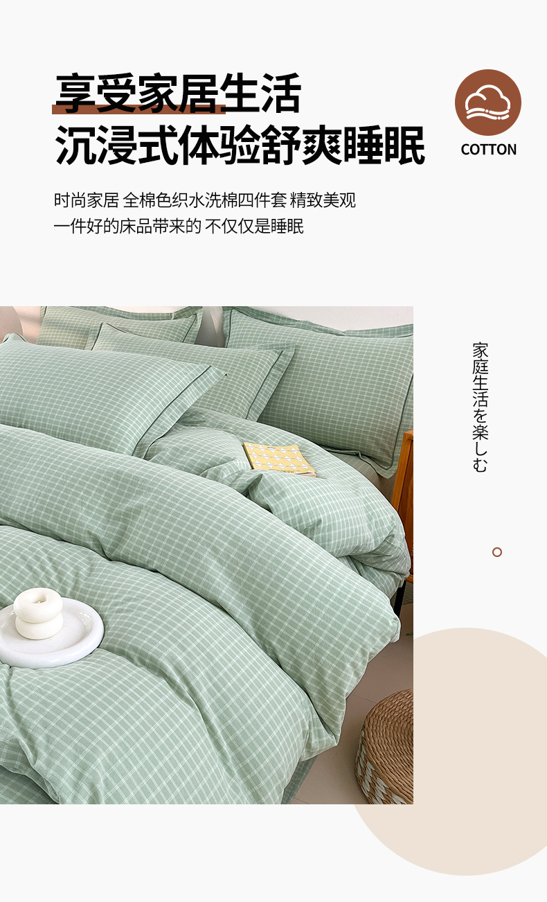 (总)金窝窝家纺 2025新款全棉色织水洗棉床盖四件套,春意盎然淡绿色,春薏时尚灰,多爱多粉色,繁星奶咖米格,绿咖时尚格,米菲灰,米格,浅兰小格