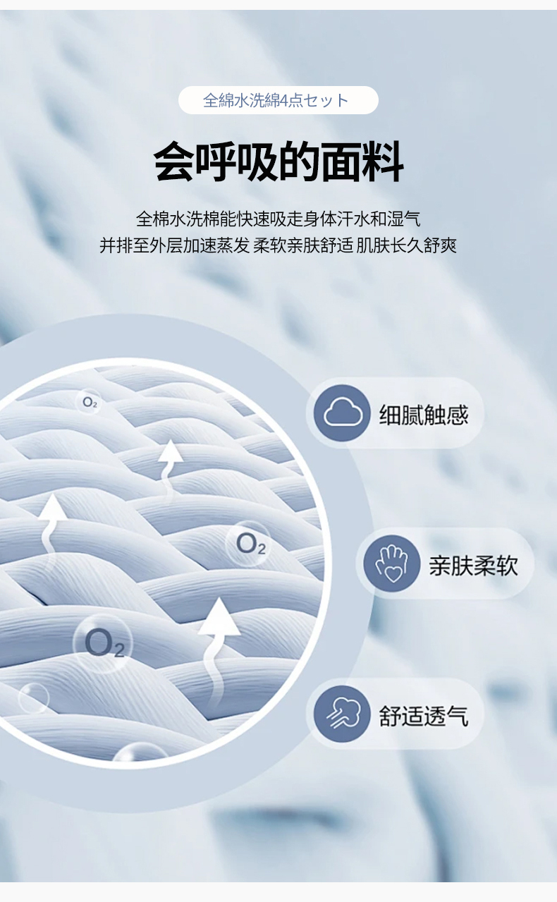 金窝窝家纺 2025新款纯棉水洗棉四件套 春意盎然淡绿色