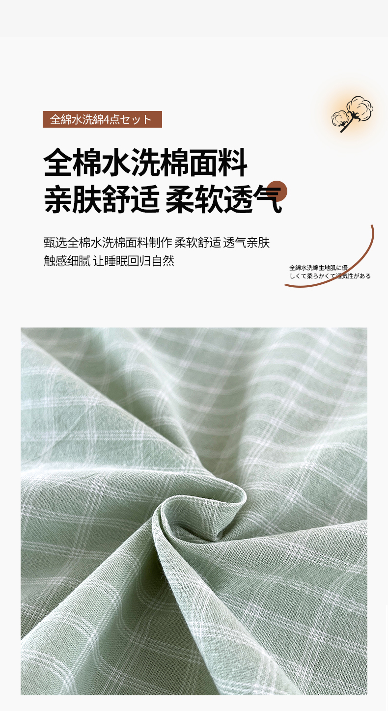 商品名称:金窝窝家纺 2025新款纯棉水洗棉四件套 春意盎然淡绿色