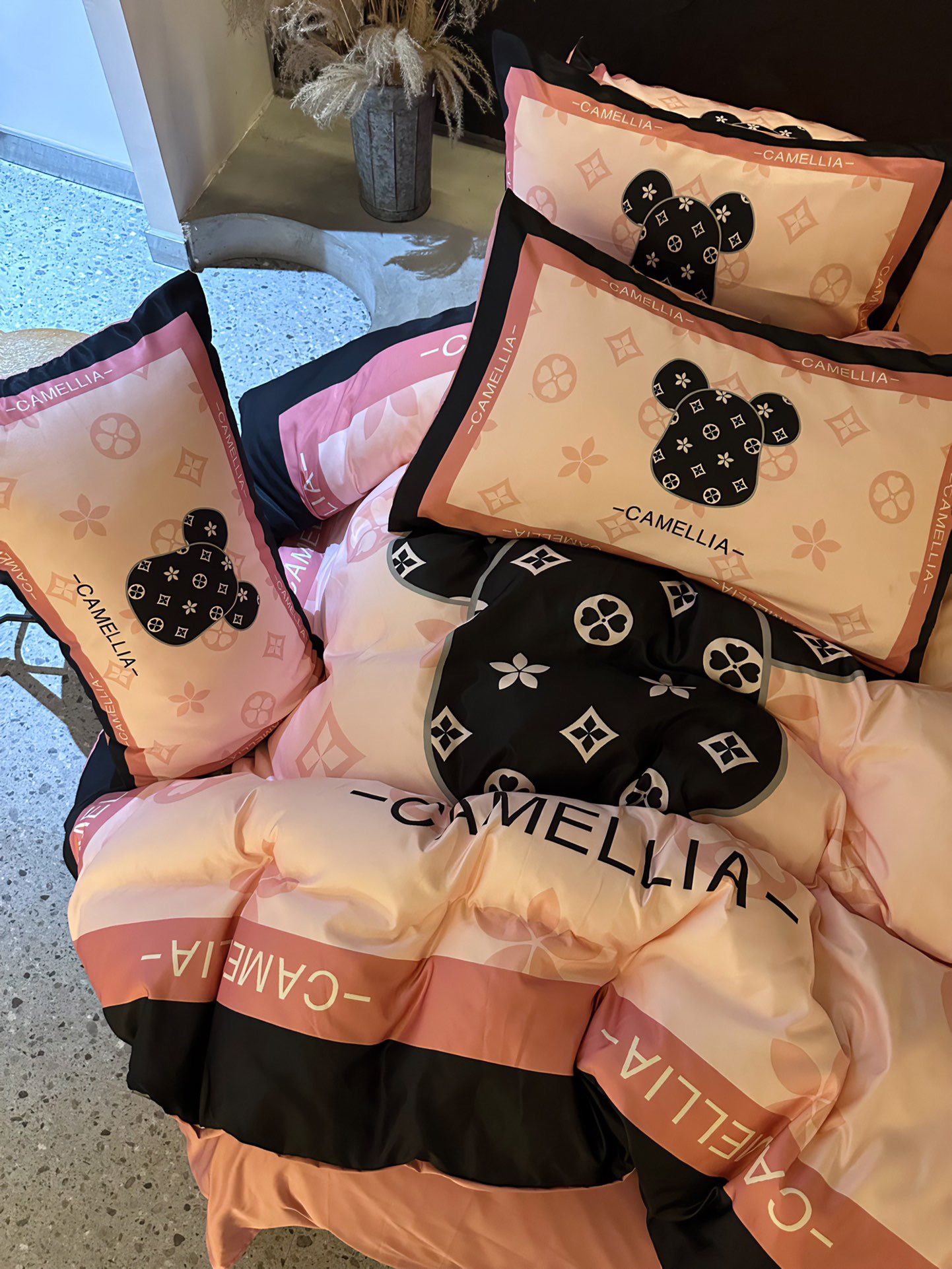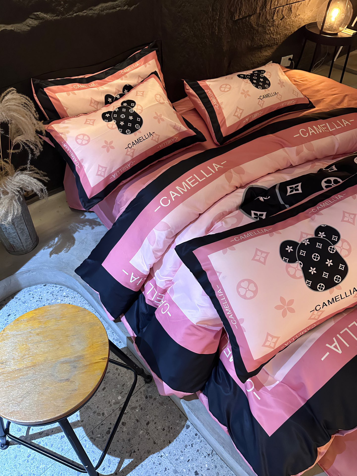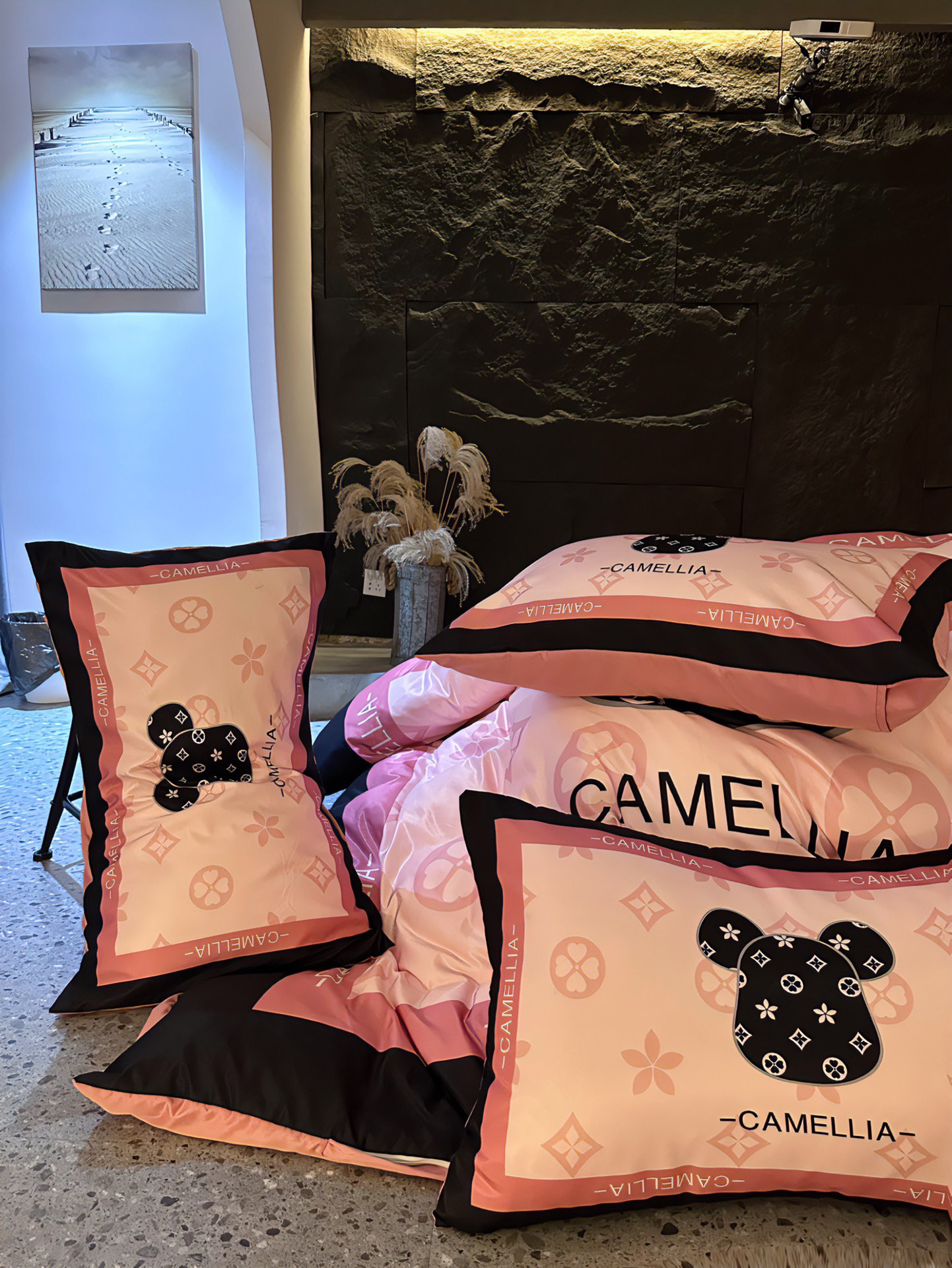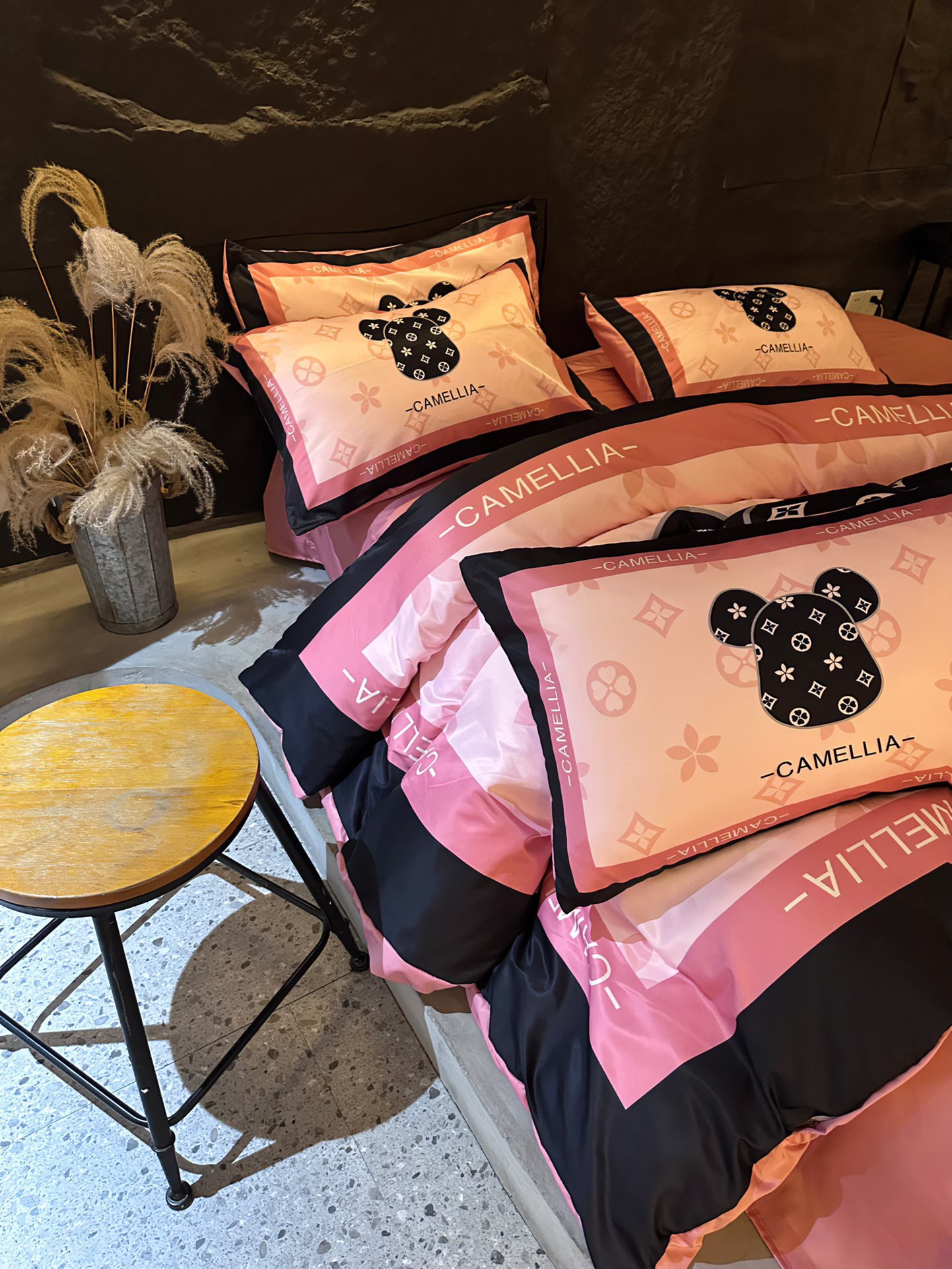 丽斐纺织 2025新款水洗冰丝数码印花四件套 黑粉熊