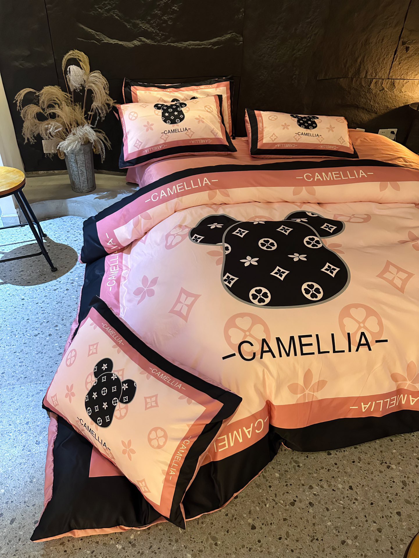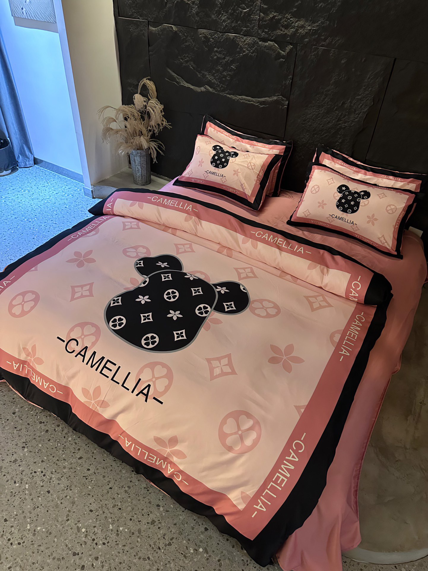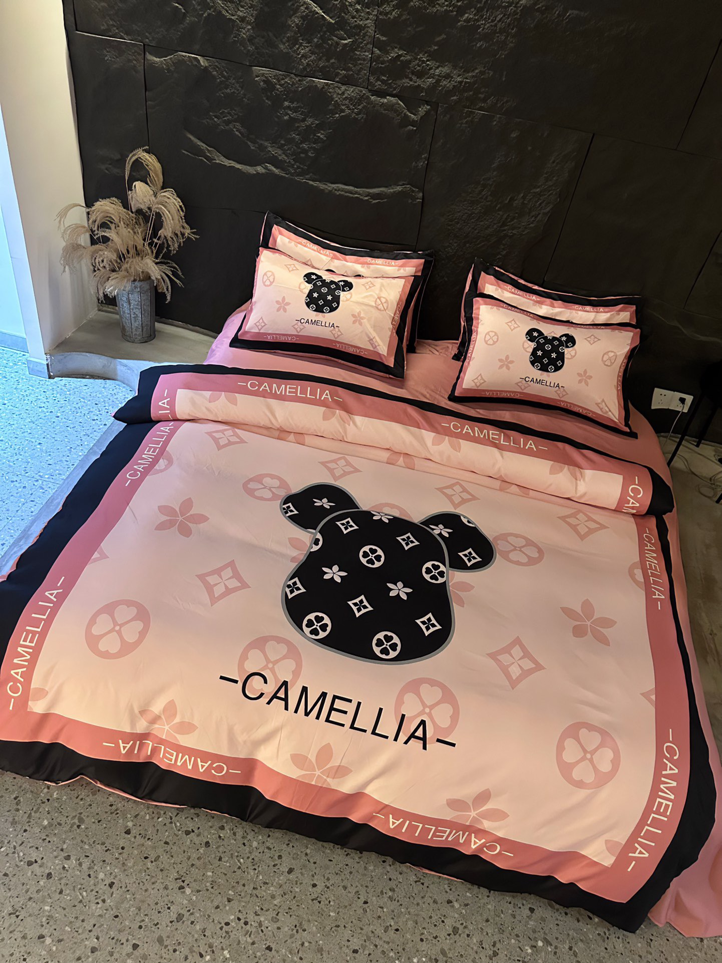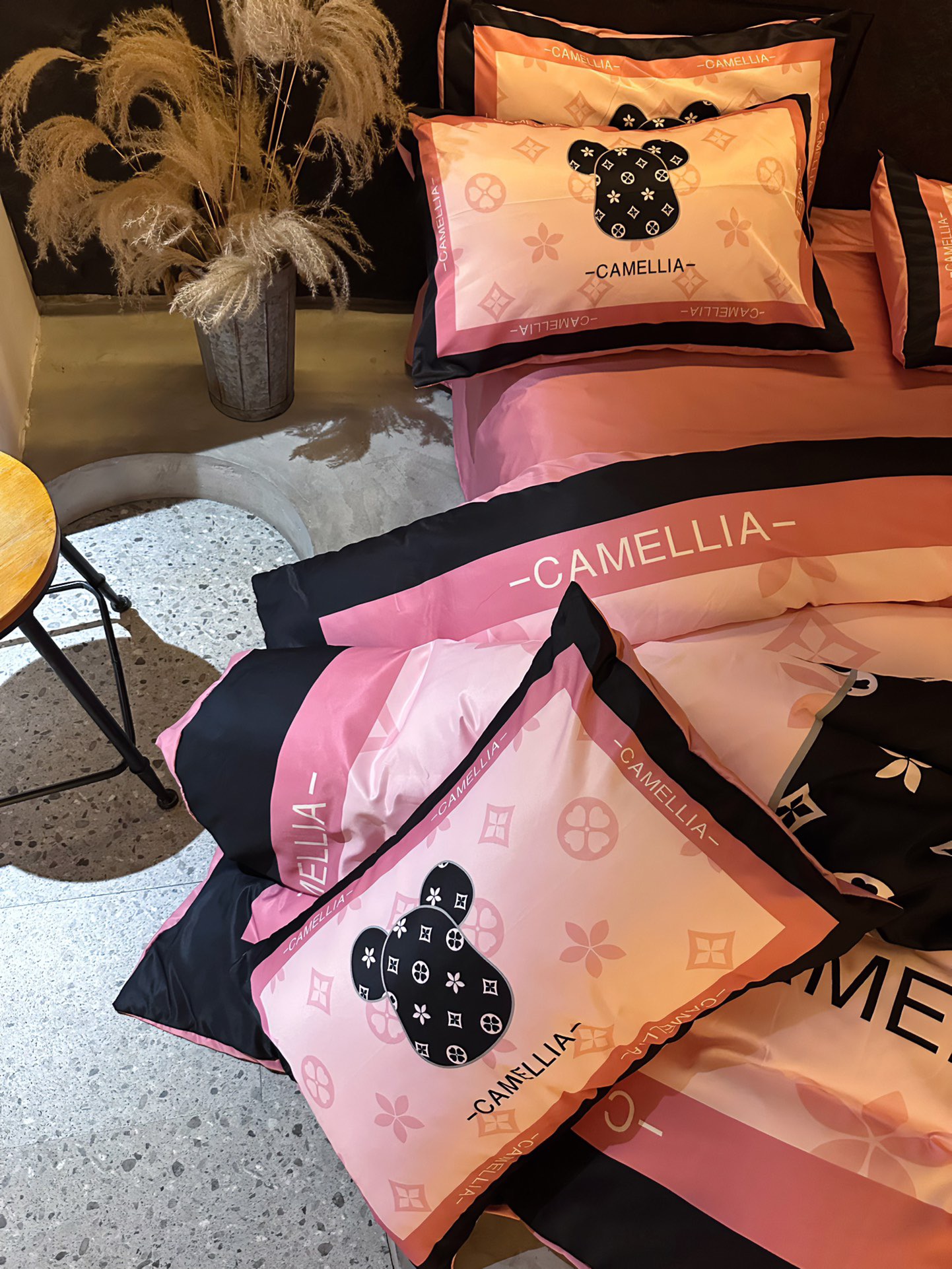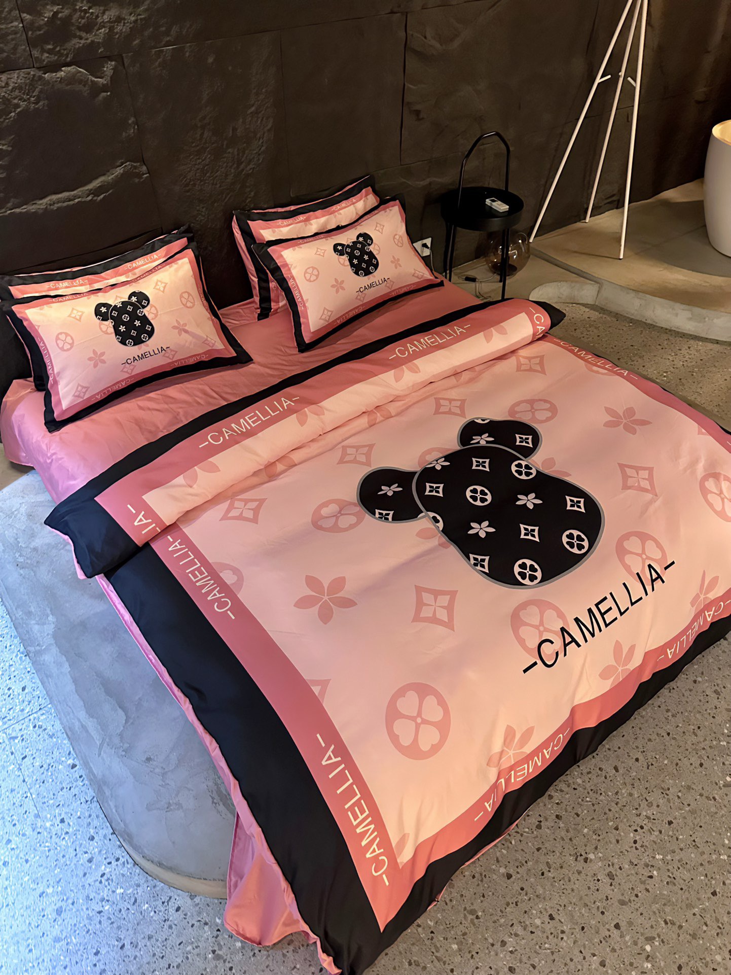 丽斐纺织 2025新款水洗冰丝数码印花四件套 黑粉熊