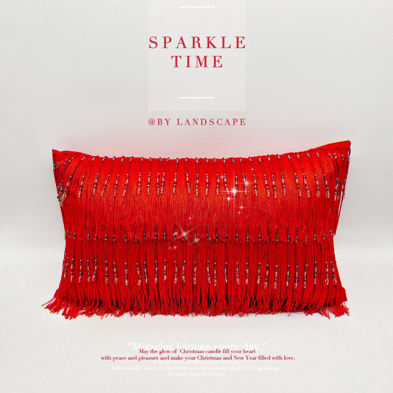 (总)新款婚庆大红全棉100支珠帘流苏抱枕-珠联璧合