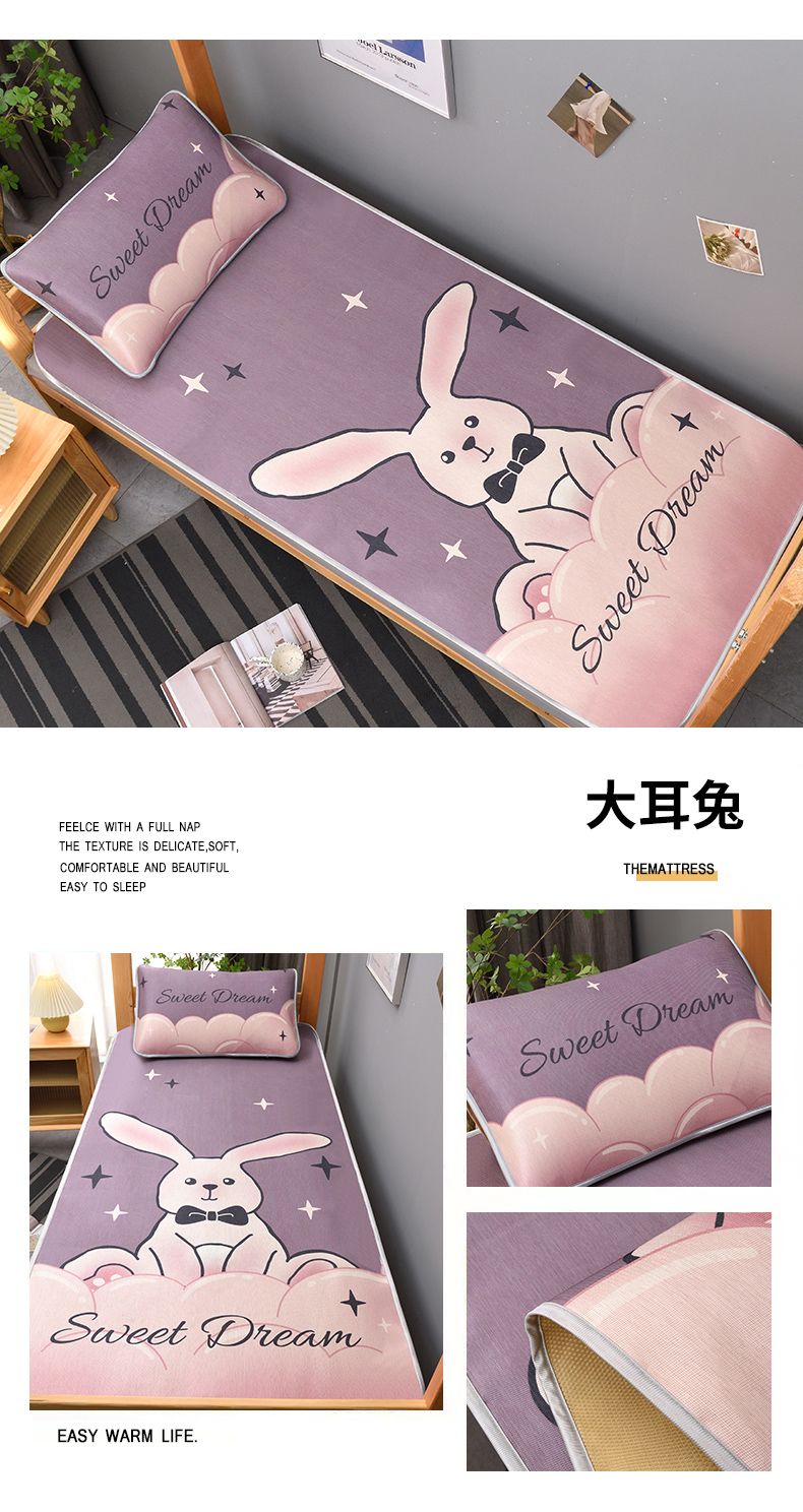 商品名称:多乐家纺 2025新款学生床数码大版印花冰丝凉席(专版花型) 粉兔兔