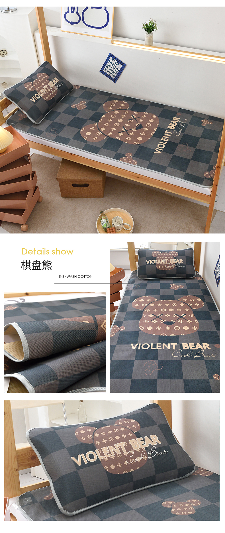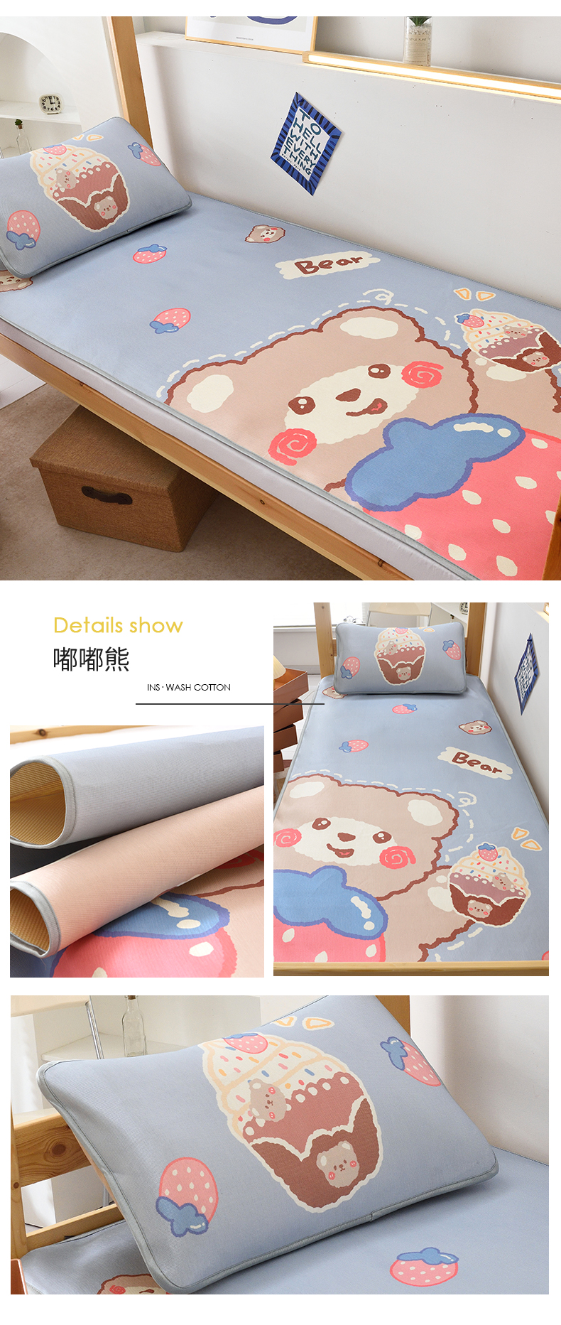 (总)多乐家纺 2025新款学生床数码大版印花冰丝凉席(专版花型),进行时,八大星,芭蕉叶,北极熊,动物乐园,嘟嘟熊,粉兔兔,怪兽伙伴,今日开心-蓝,桔子熊,快乐旅行,萌虎,棋盘熊,热血篮球,绅士熊,兔兔汉堡,熊仔,King,Rich