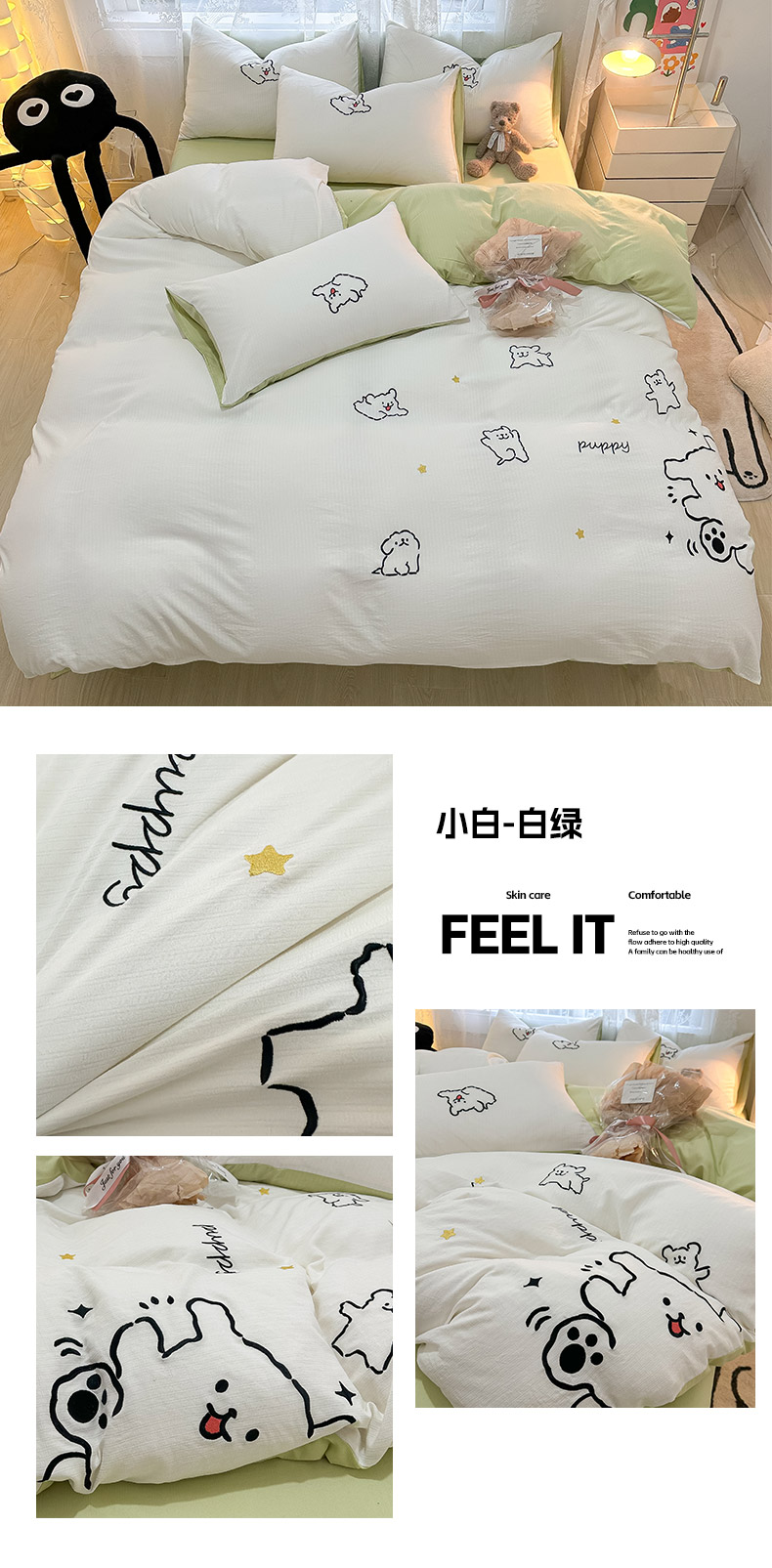 当前位置: 91家纺网 > 商品网购 > 床品套件 > 四件套 > 针织棉四件套 > 多乐家纺 2025新款超柔加厚有氧提花针织小竺棉绣花四件套(提供买家秀) 大脸猫-蓝蓝