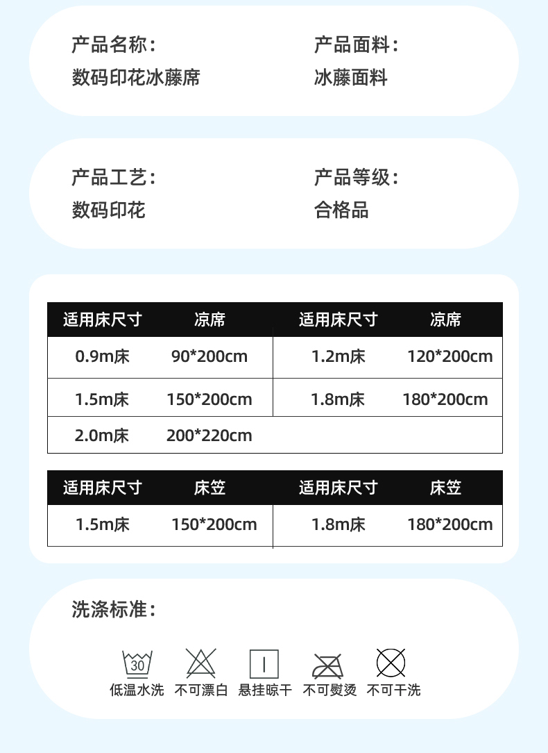 200*220cm床单款凉席三件套 | ¥85.00 |