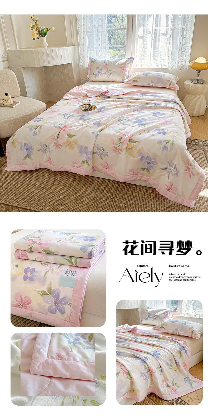 • 91家纺网 家纺一手货源 找家纺 晨希家居 2025春夏新款全棉纯棉印花夏被夏凉被空调被 朝花夕拾