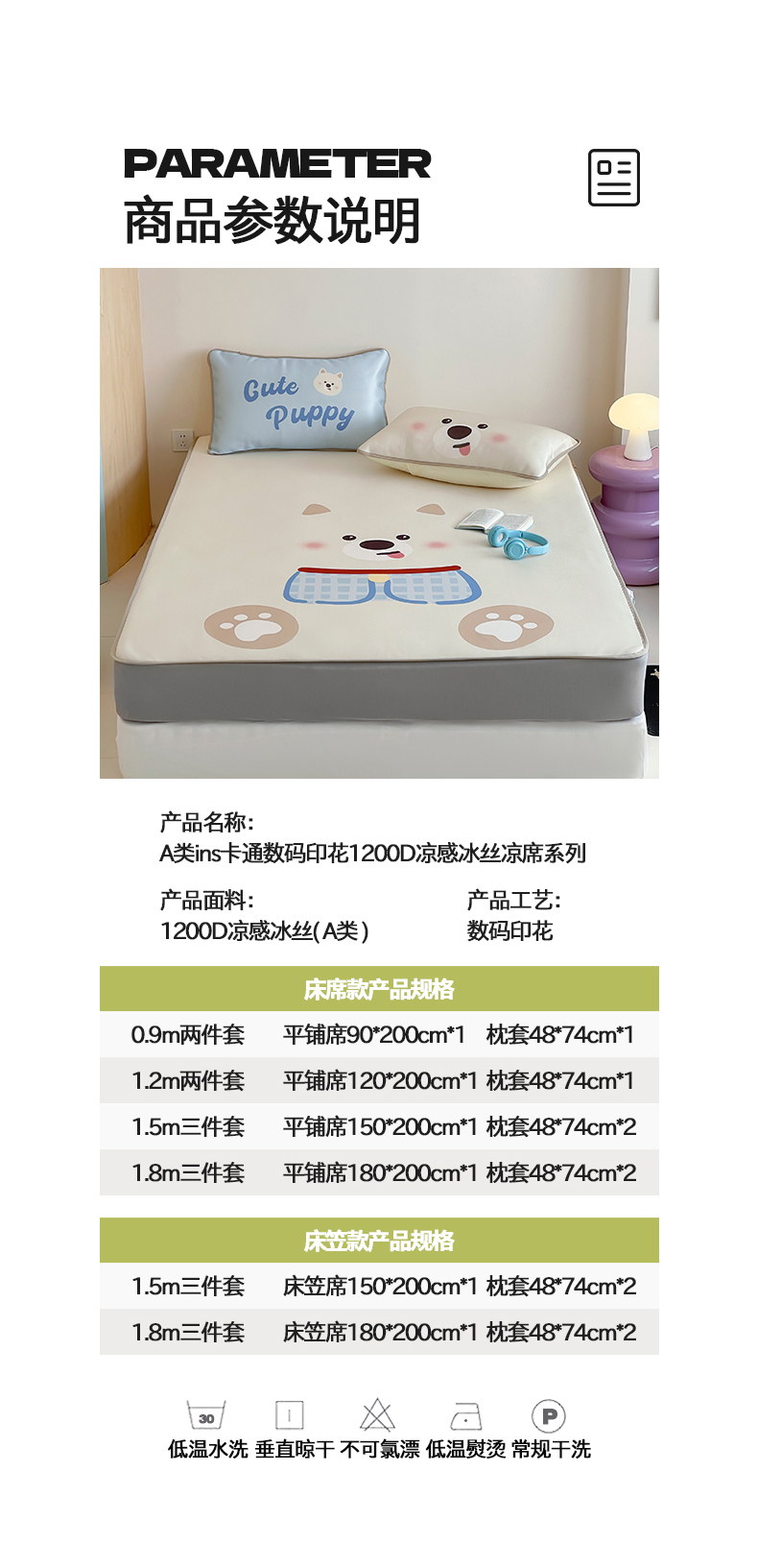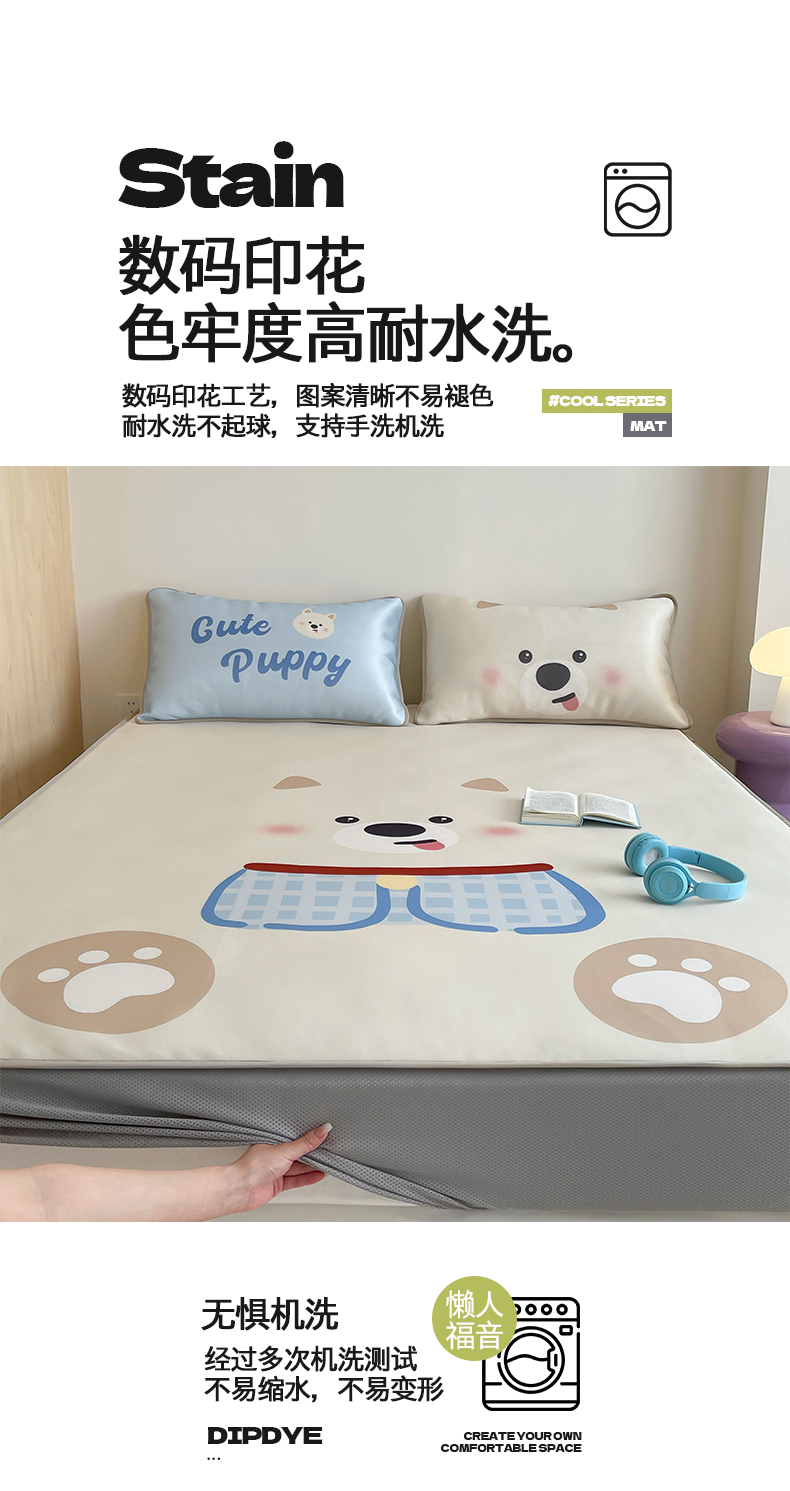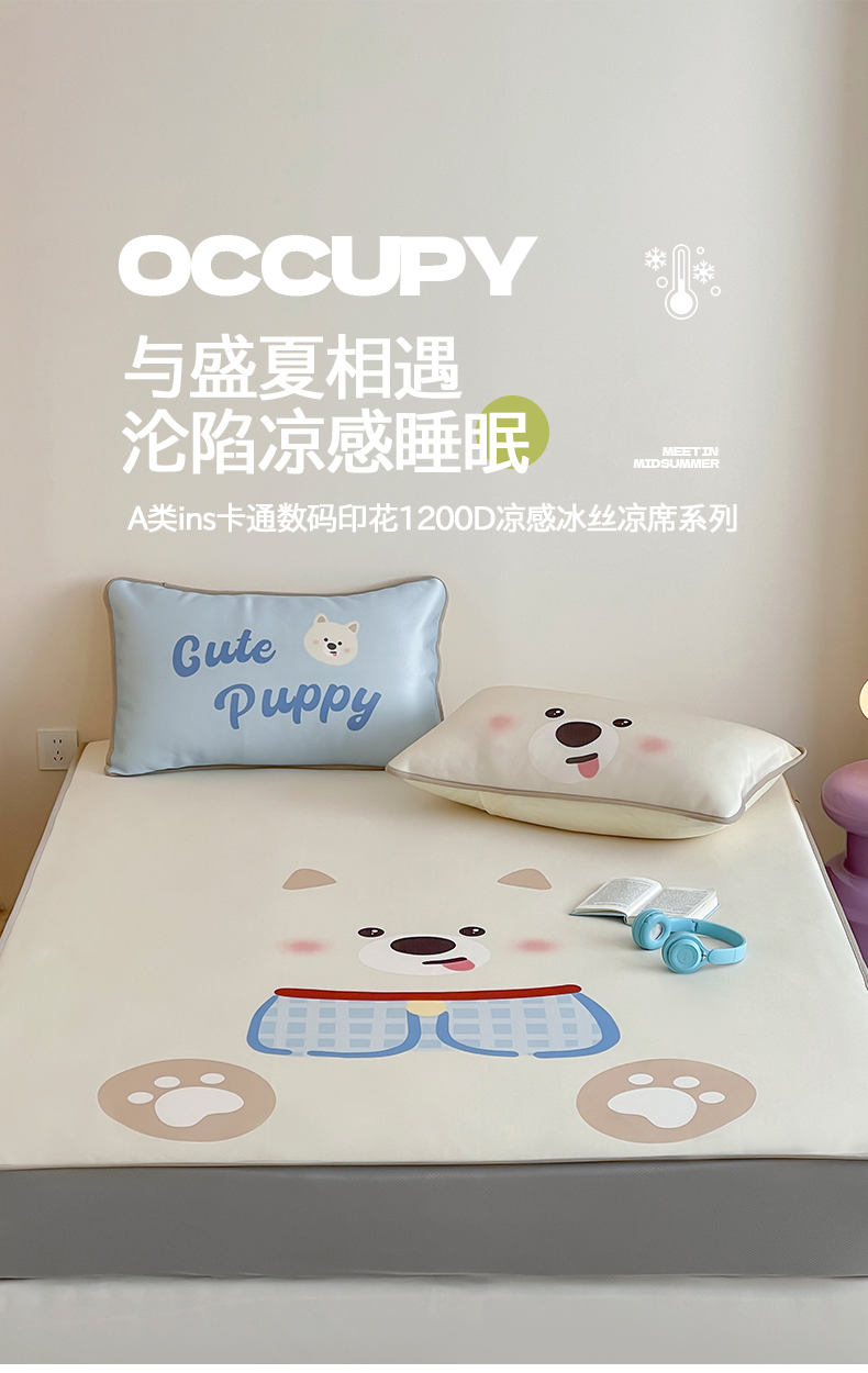 当前位置: 91家纺网 > 商品网购 > 床品套件 > 三件套 > 桃子家居 2025新款A类ins卡通数码印花1200D冰感冰丝凉席系列 冰感席混搭-西高地