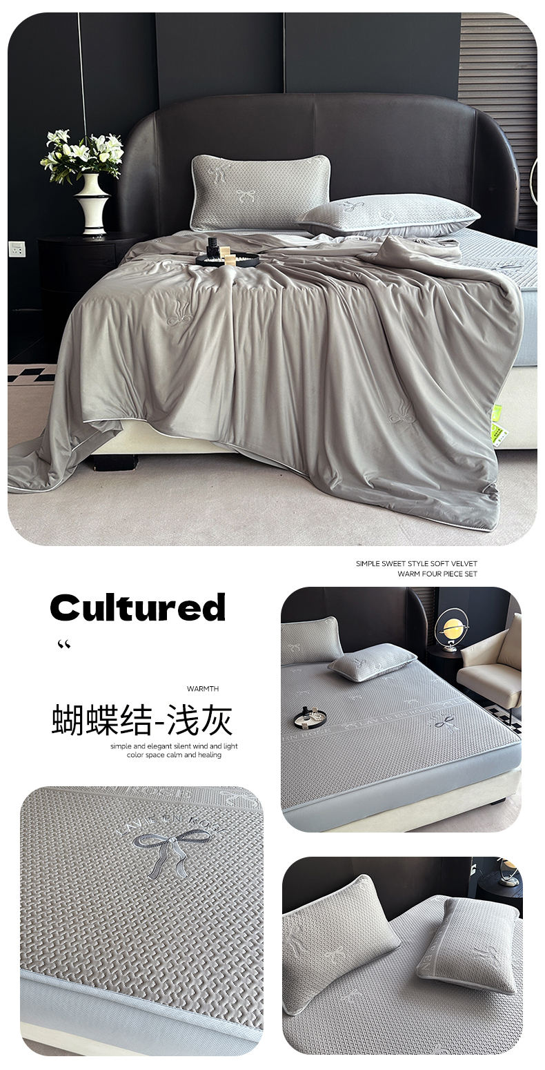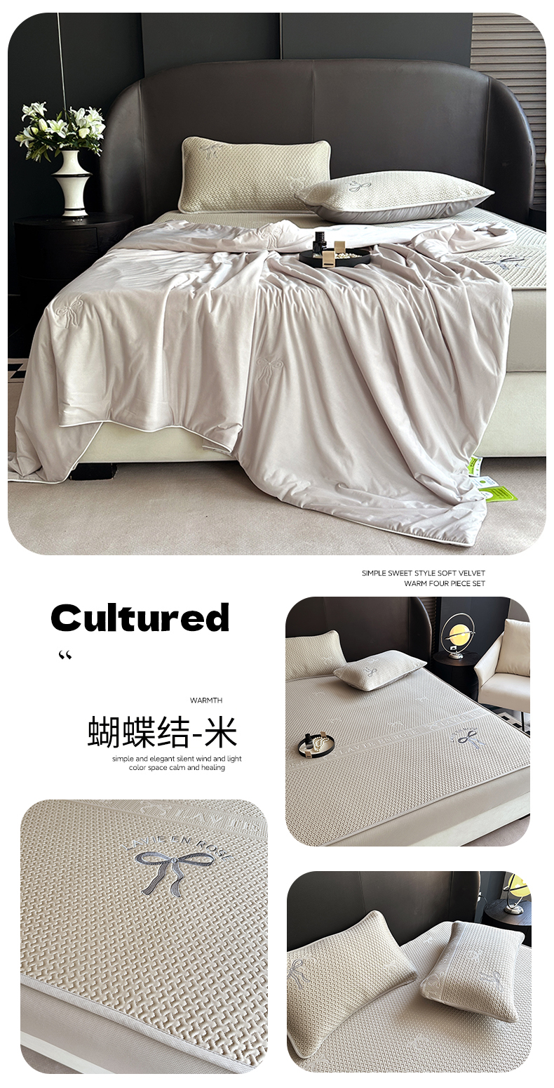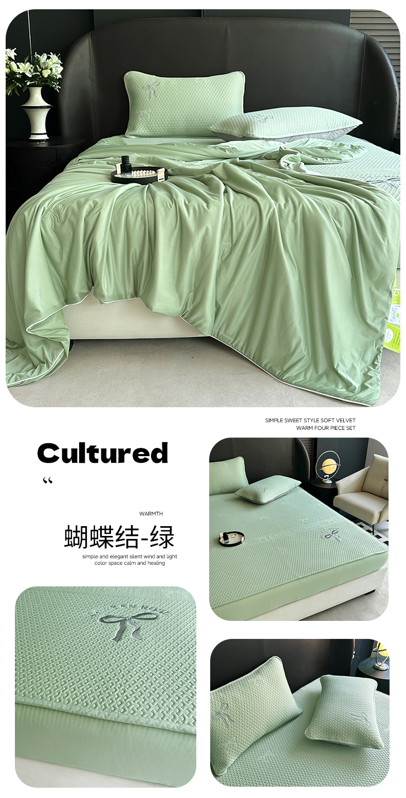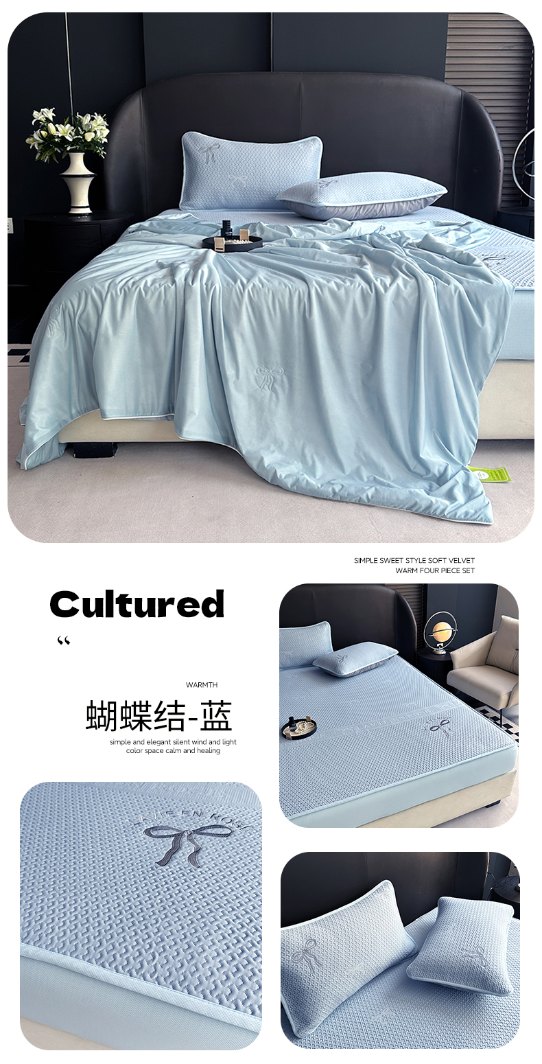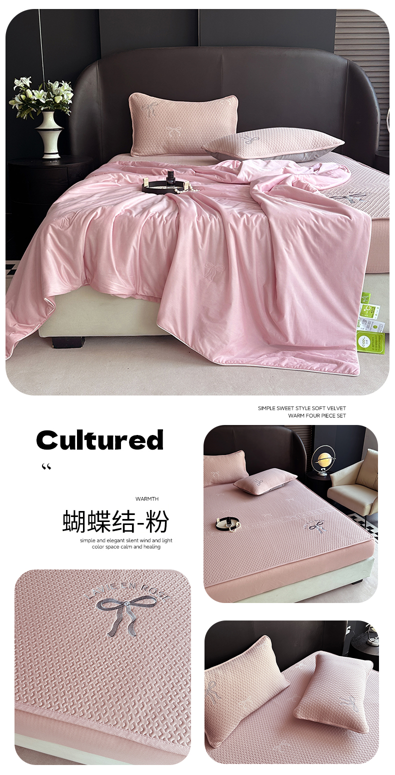 (总)网客家纺 2025新款冰豆豆蝴蝶结绣花床笠夏被四件套系列