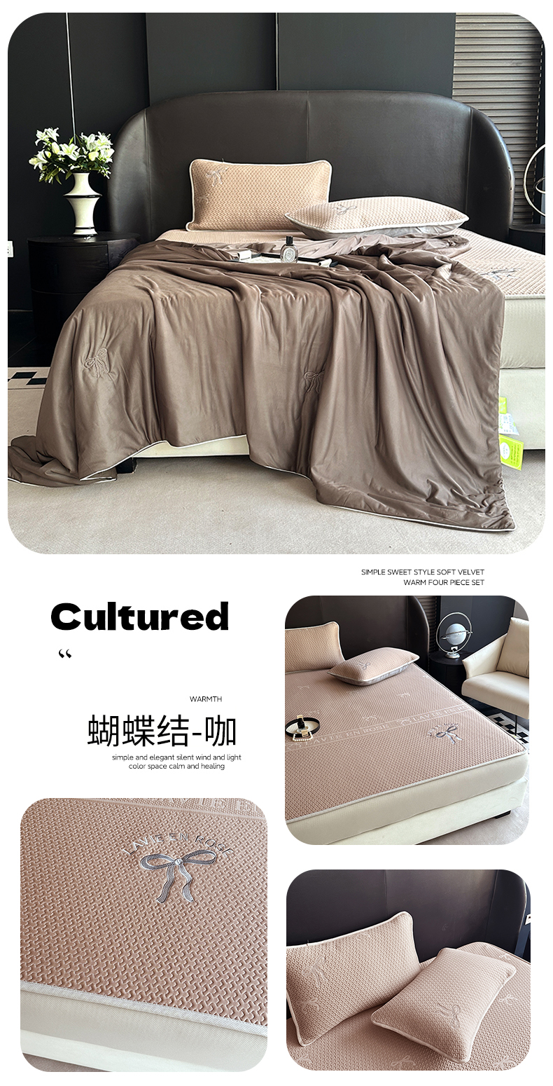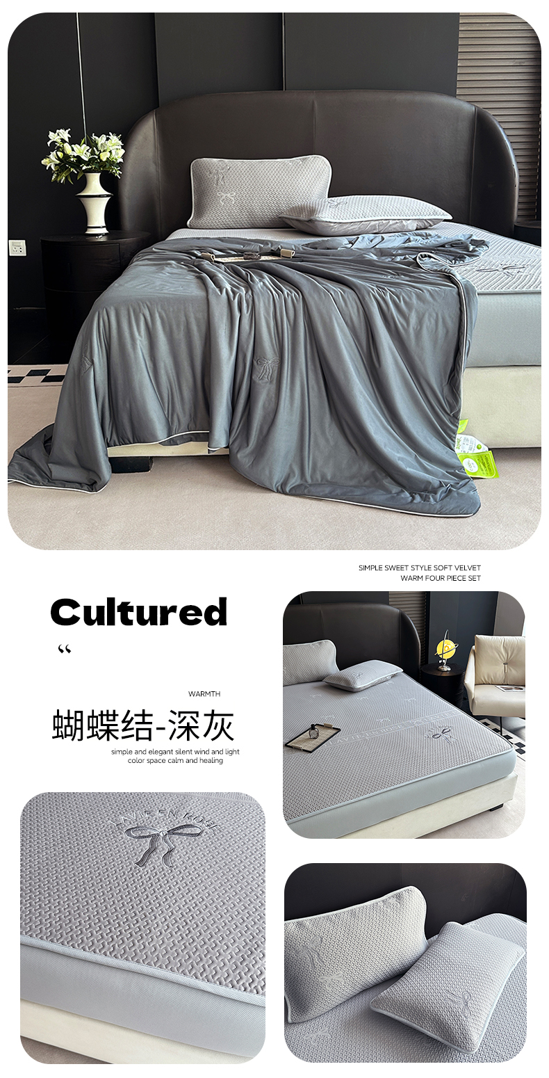 (总)网客家纺 2025新款羊毛绒牛奶绒夹棉床盖四件套,豹点-深灰,简格-黑色,简格-咖色,空间-红色,泥点-灰色,泥点-咖色,维奥-灰色,斜格-灰色,斜格-墨绿