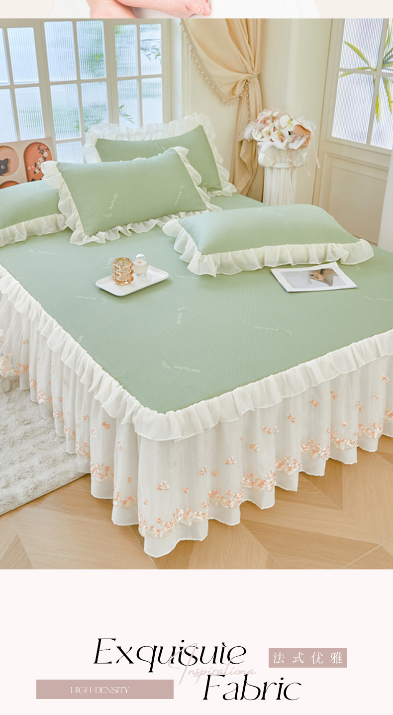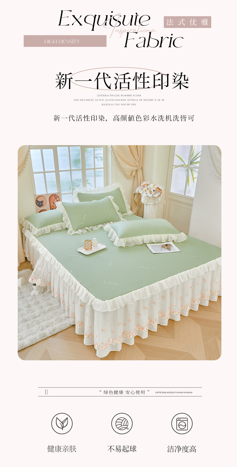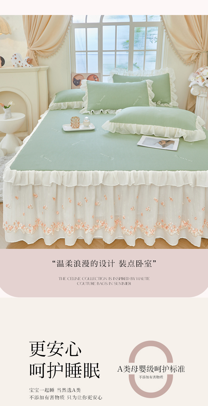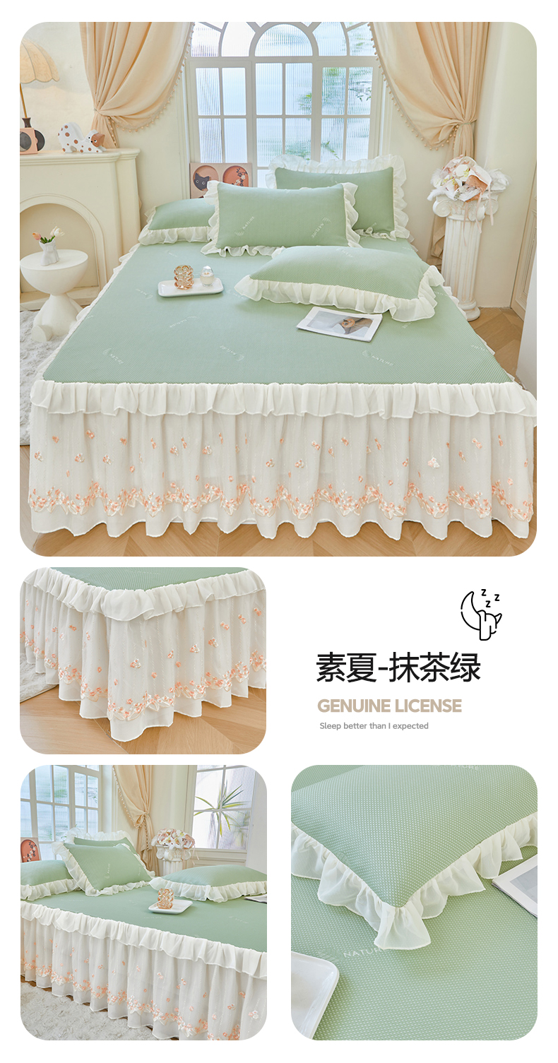 商品名称:虹星家纺 2025新款A类冰感凉豆豆床裙席三件套-素夏 素夏-抹茶绿