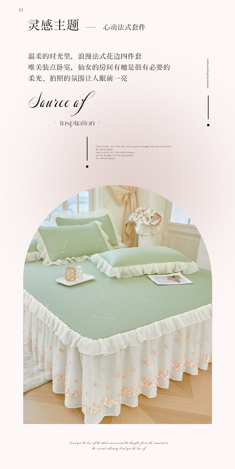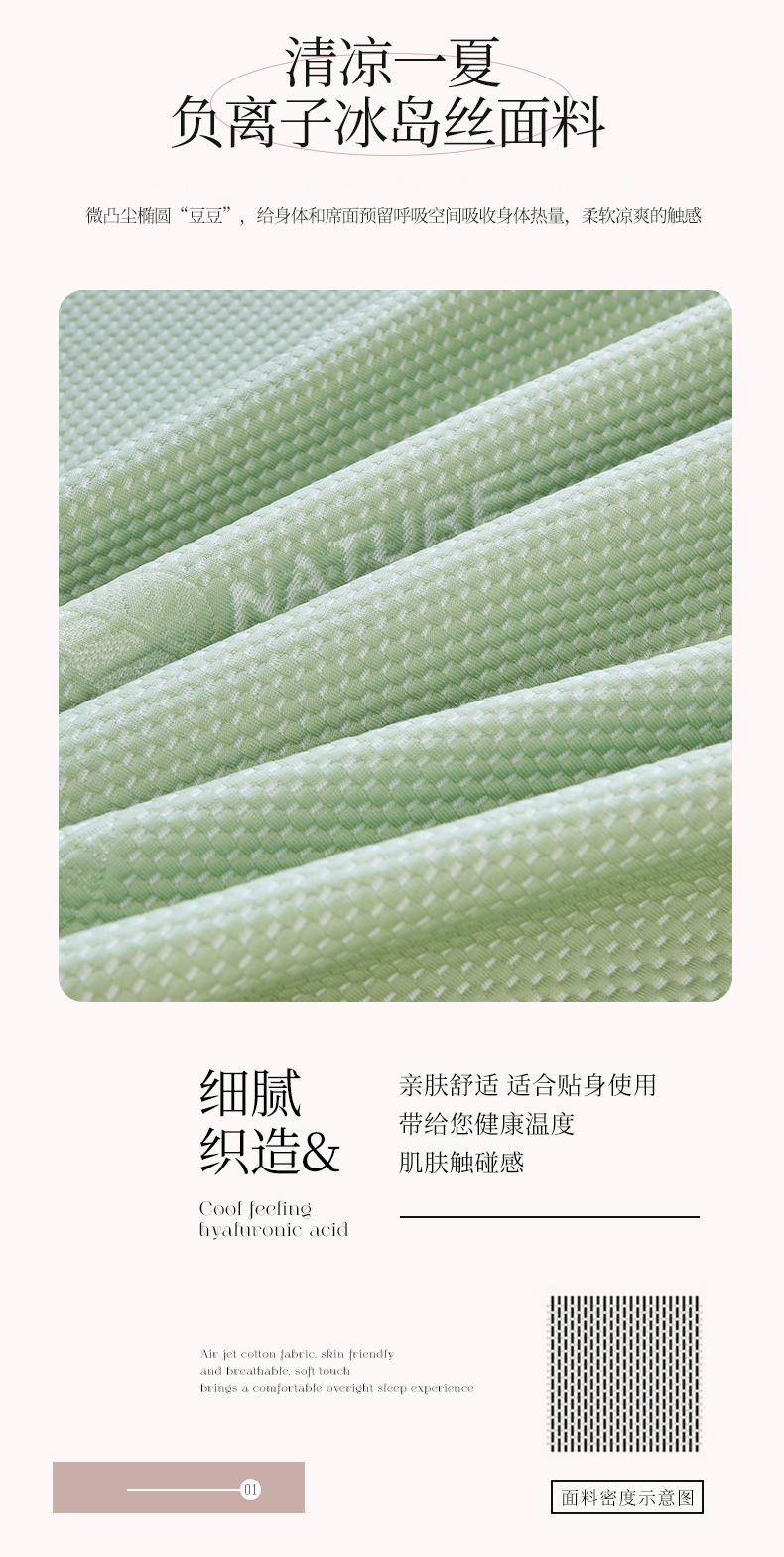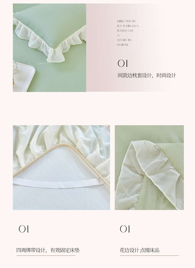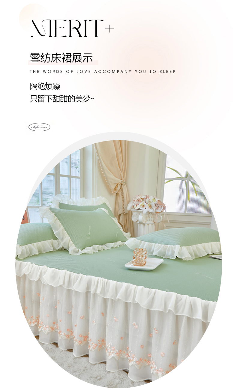 商品名称:虹星家纺 2025新款A类冰感凉豆豆床裙席三件套-素夏 素夏-抹茶绿