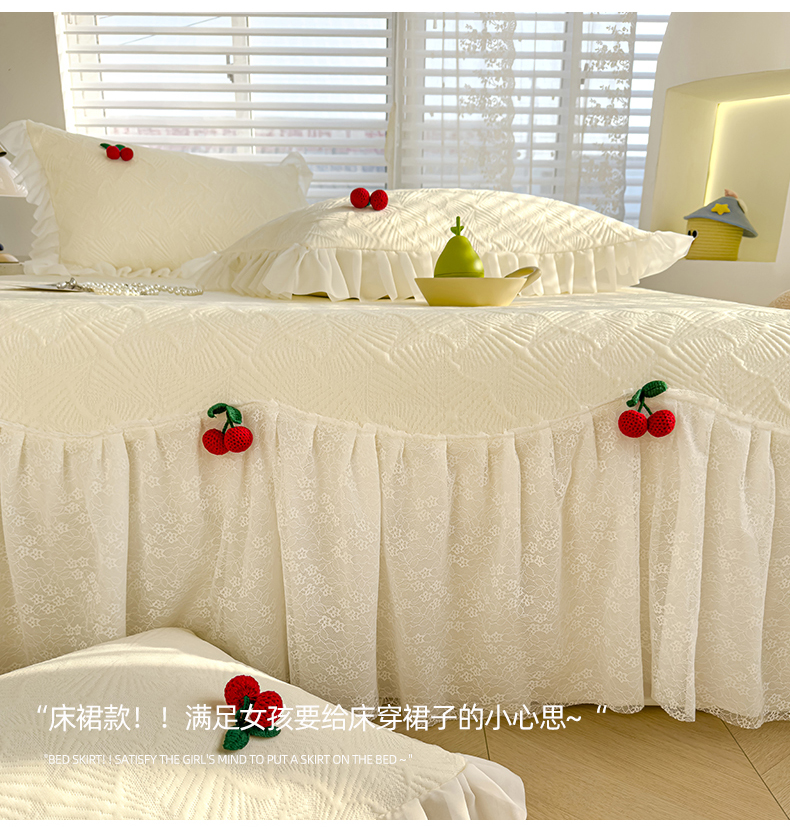 羚羊语家纺 羚羊语 2025新款韩系手作PE中分子凉泡泡冰丝凉席蕾丝花边樱桃乙纶冰豆豆席床裙款夏季凉感软席三件套 组合图(配洗护袋)