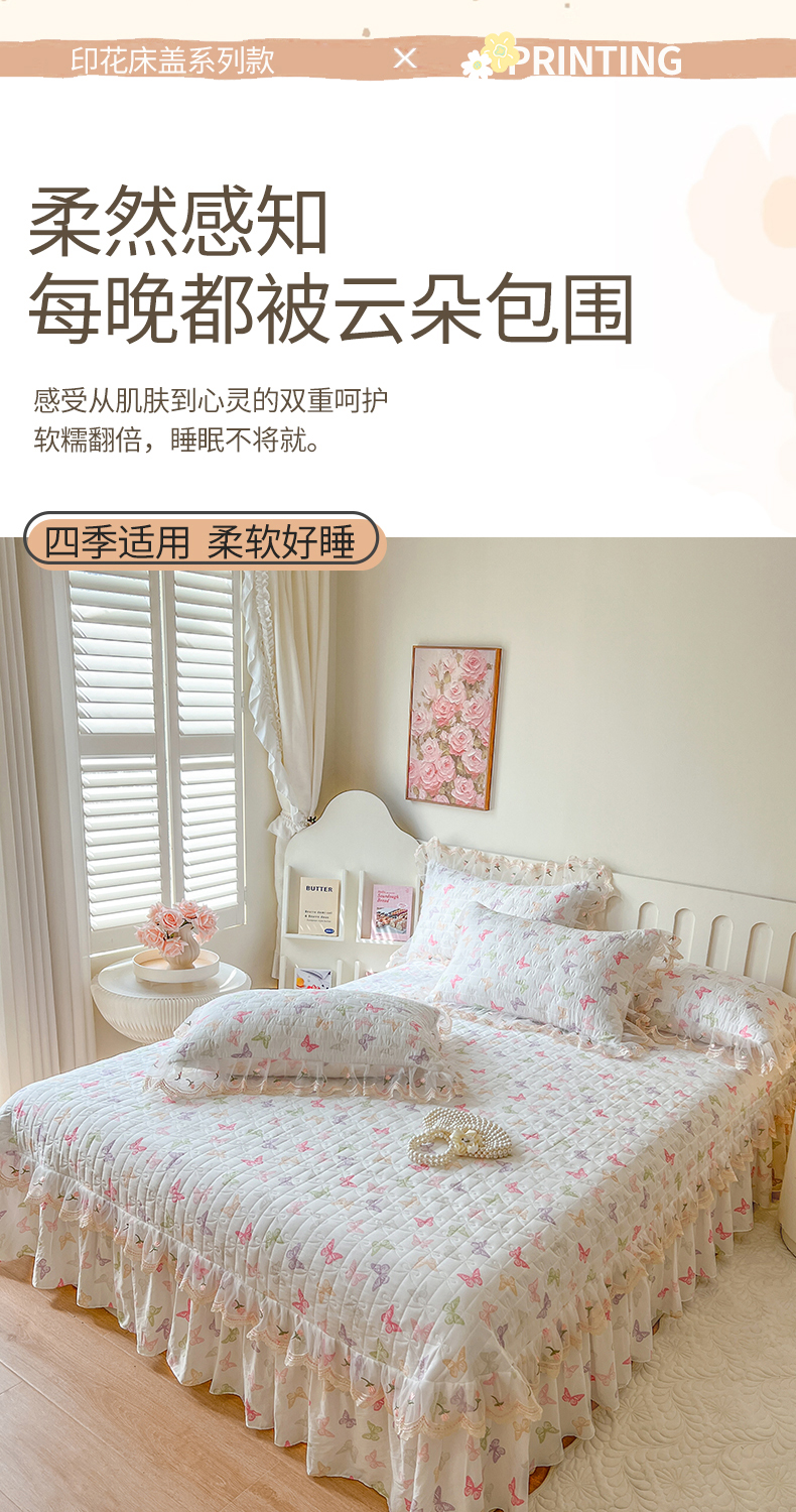 (总)网红馆(ck家纺) 2025新款全棉印花床盖四件套,春湔,花韵花香,玫瑰樱桃,陌上花开,青葱岁月