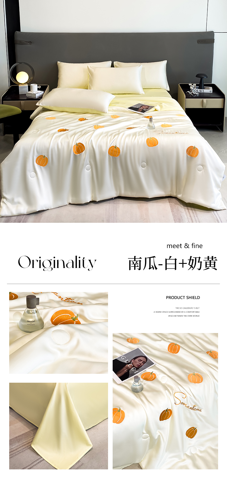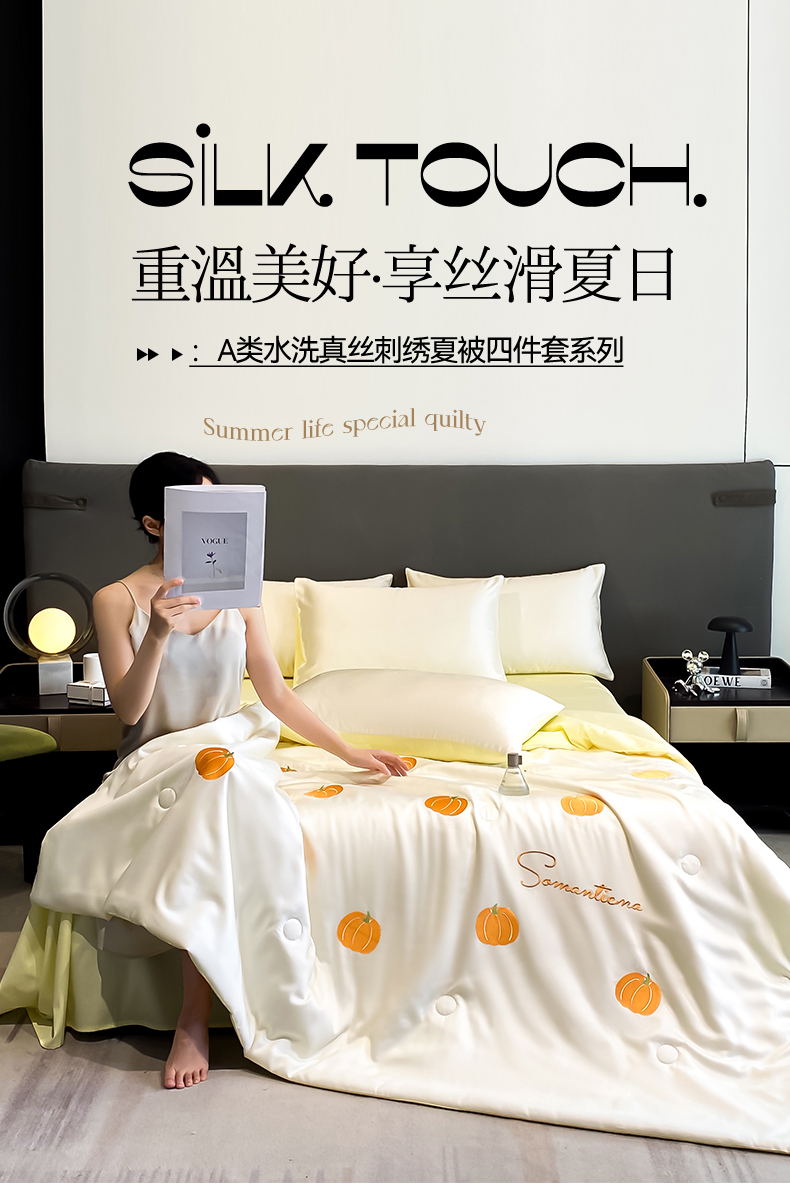 当前位置: 91家纺网 > 商品网购 > 床品套件 > 四件套 > 水洗真丝四件套 > 笙意家纺 2025新款水洗真丝夏被夏凉被空调被四件套-满绣系列 南瓜-白+奶黄
