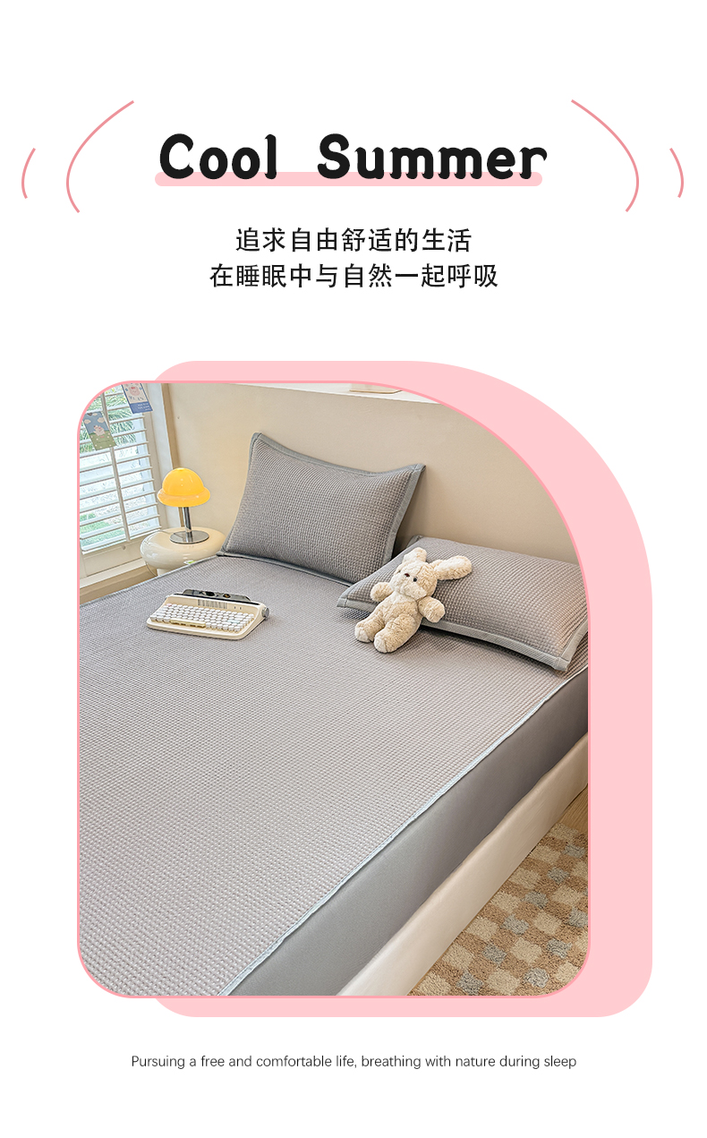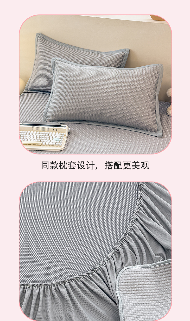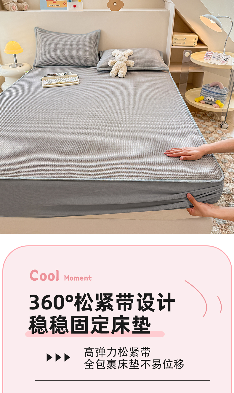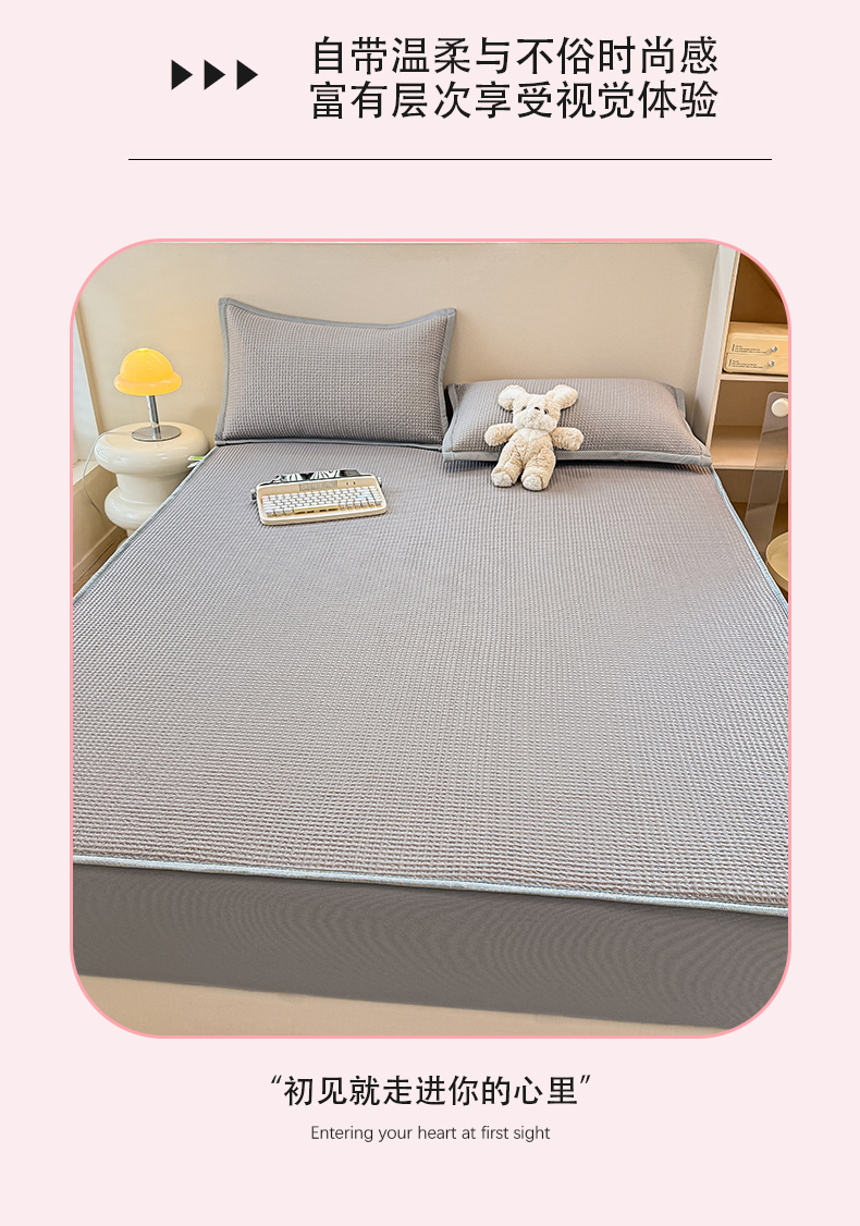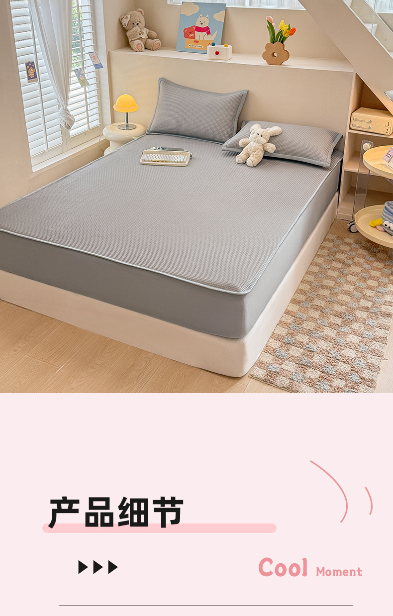 • 91家纺网 家纺一手货源 找家纺 金盛纺 2025新款冰豆豆凉席-床笠款 华夫格-灰