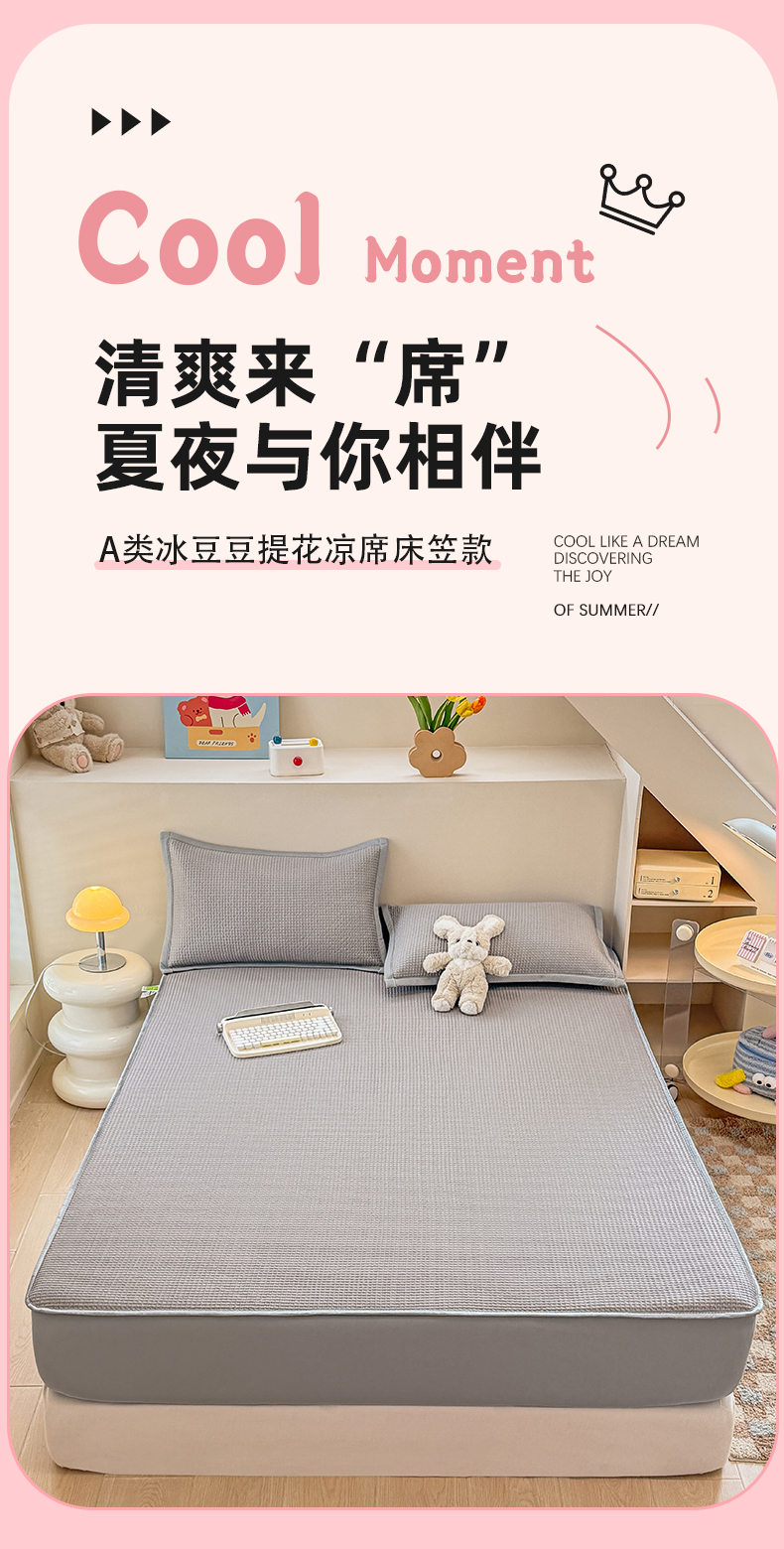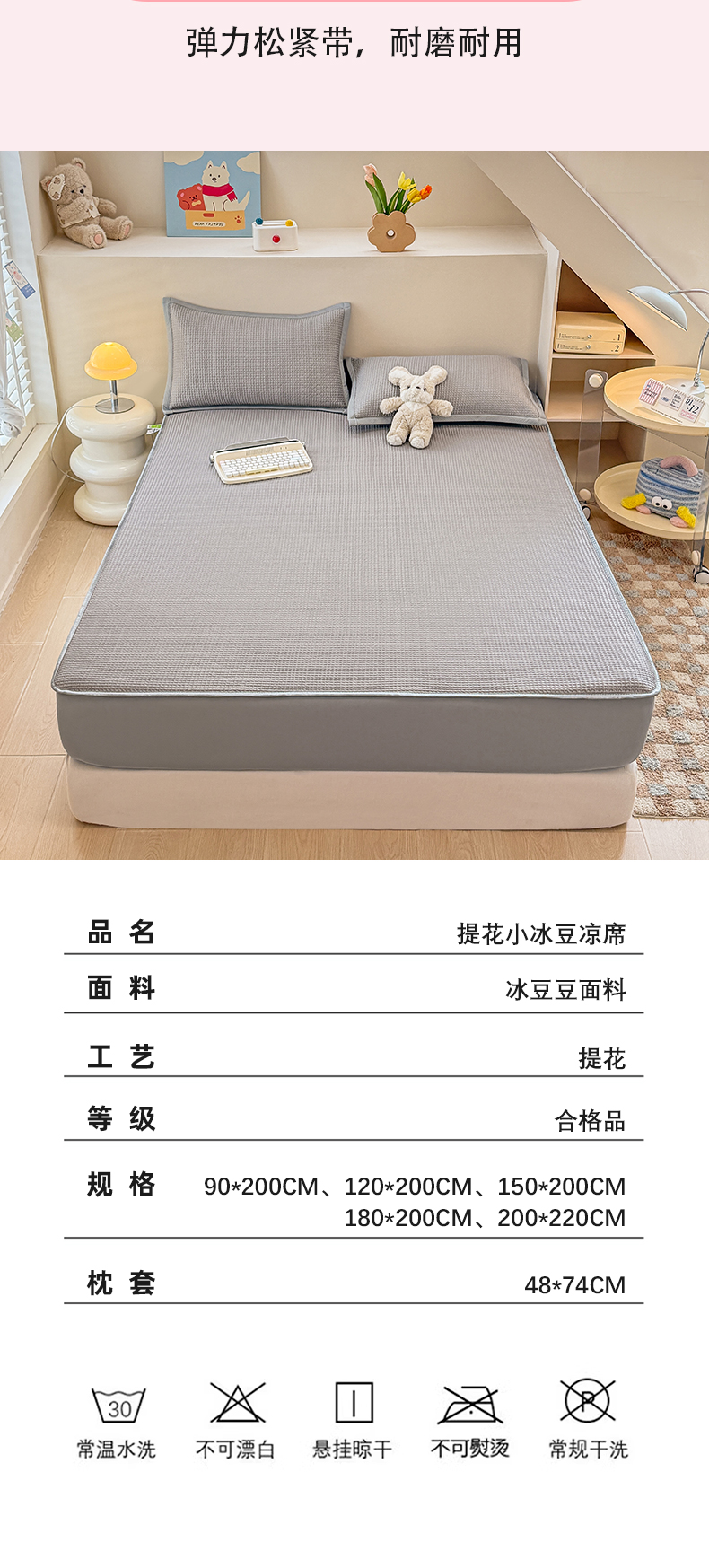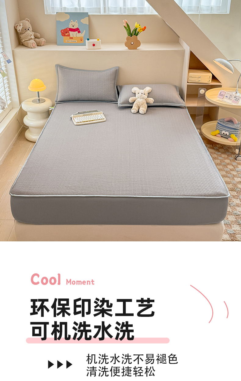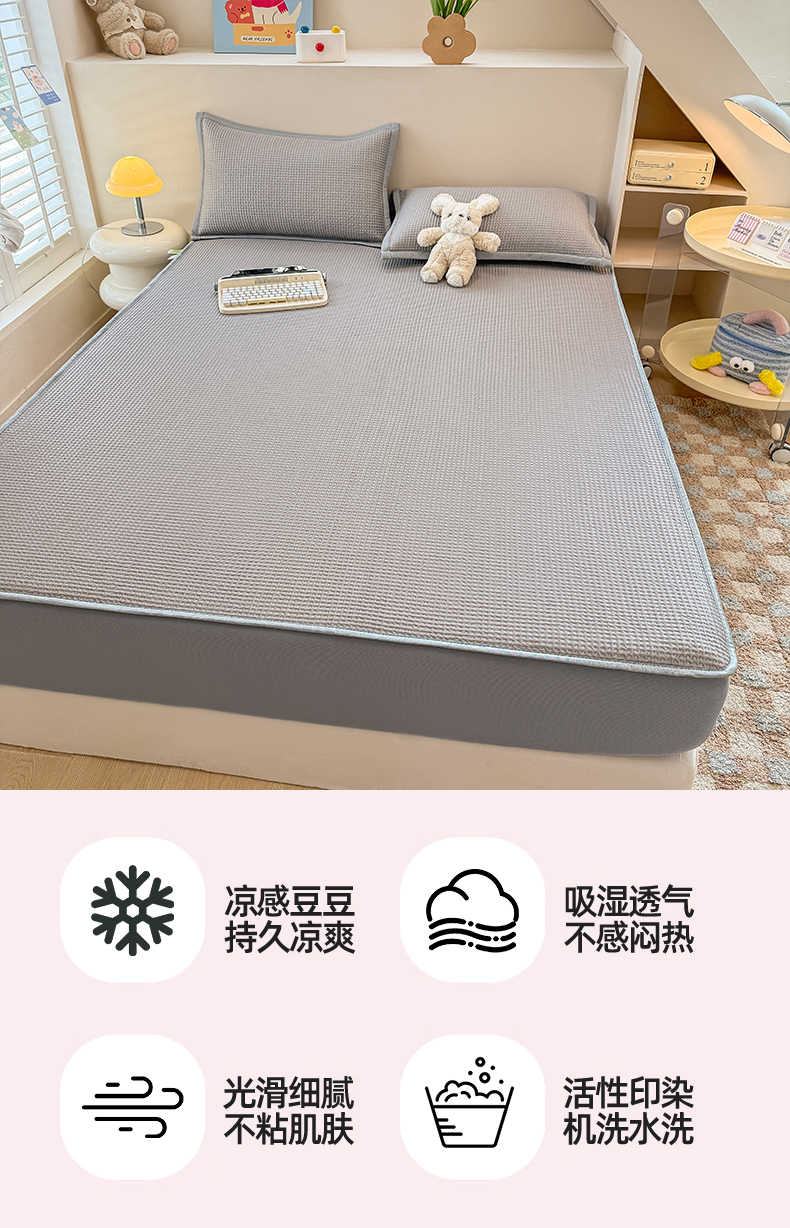 金盛纺 2025新款冰豆豆凉席-床笠款 华夫格-灰