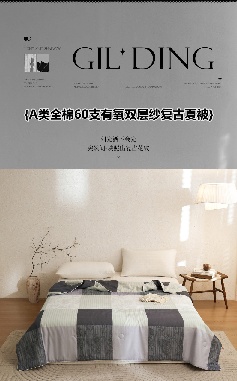 商品名称:蜜柚 2025新款赛瑞娜复古系列 A类全棉纯棉60支有氧双层纱复古夏被夏凉被空调被 东方伶