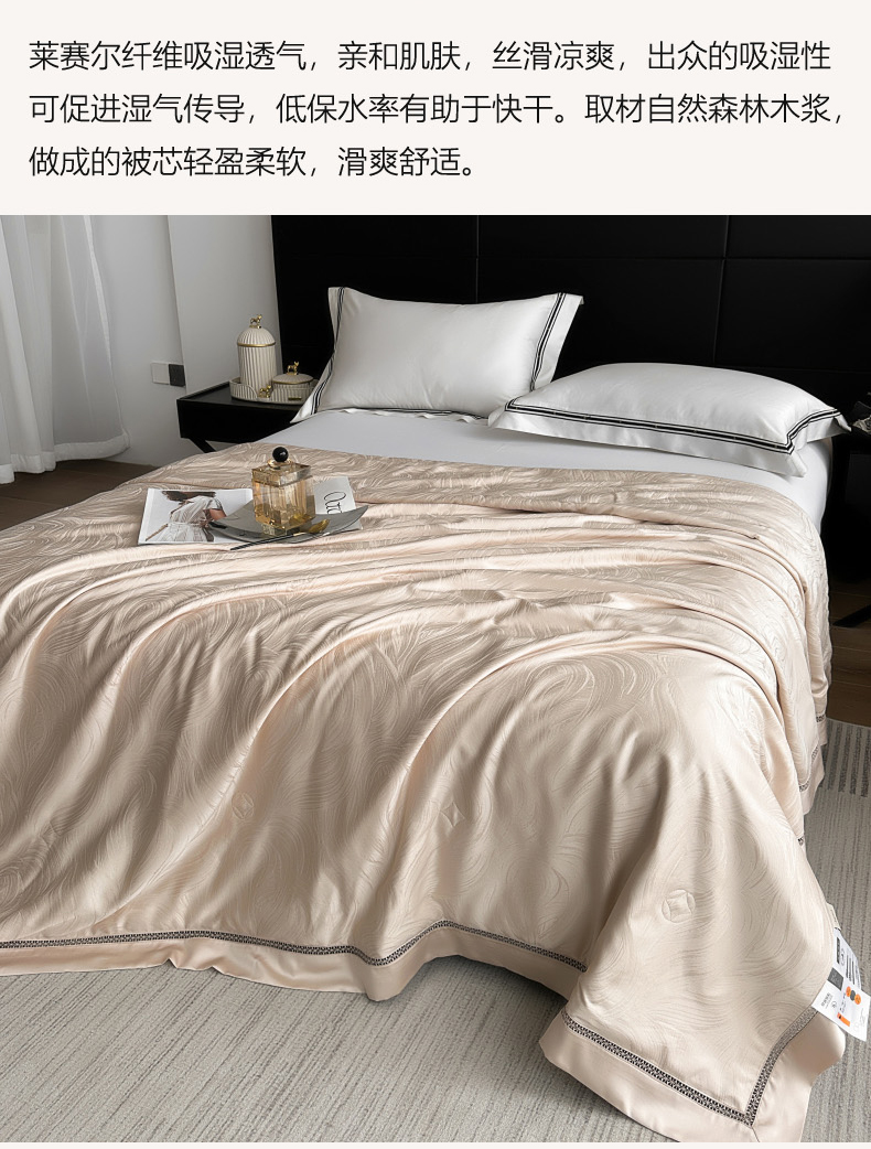 (总)蜜柚 2025新款卡伦50s莱赛尔天丝提花工艺夏被夏凉被空调被,卡伦绿,卡伦金,卡伦灰,卡伦米,组合图仅供参考
