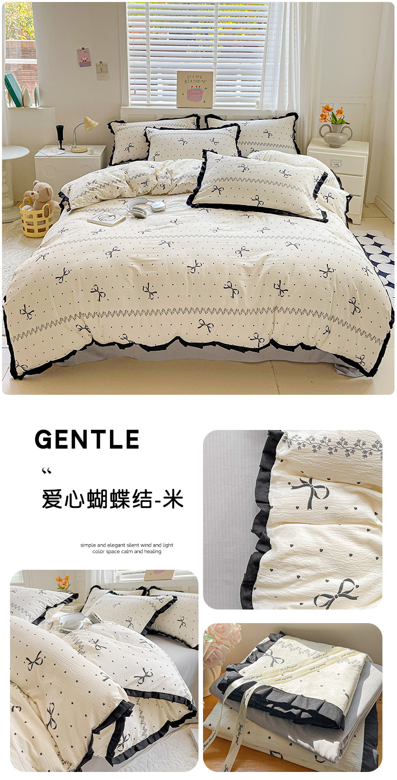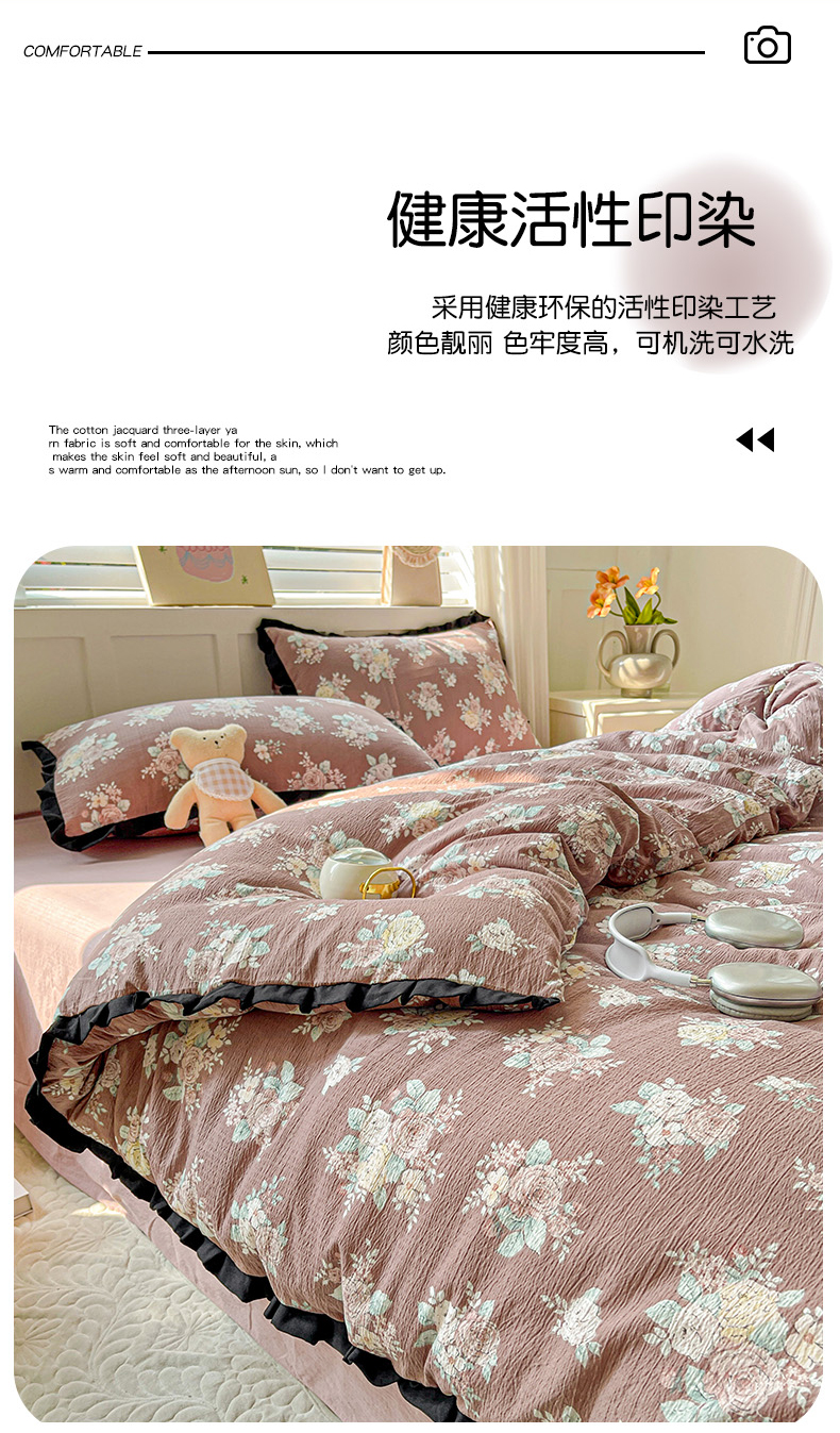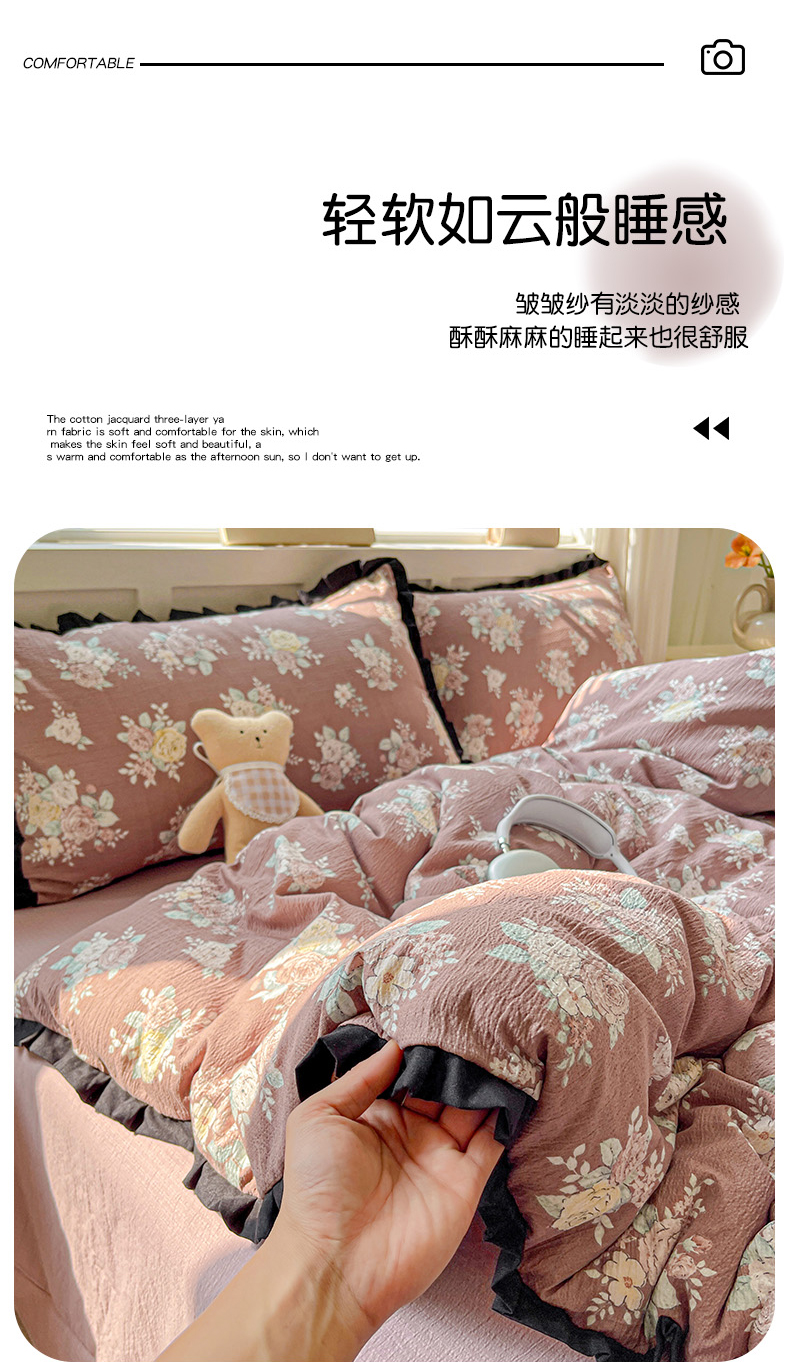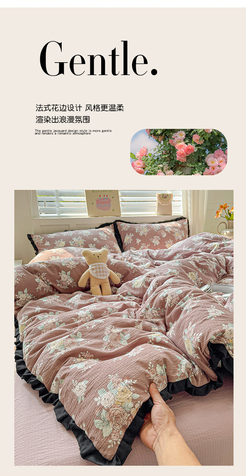 当前位置: 91家纺网 > 商品网购 > 床品套件 > 四件套 > 其它四件套 > 暖芯优选 2025新款直播热款赫本风花边款针织法式印花吊边床单三件套床笠四件套 瑶枝