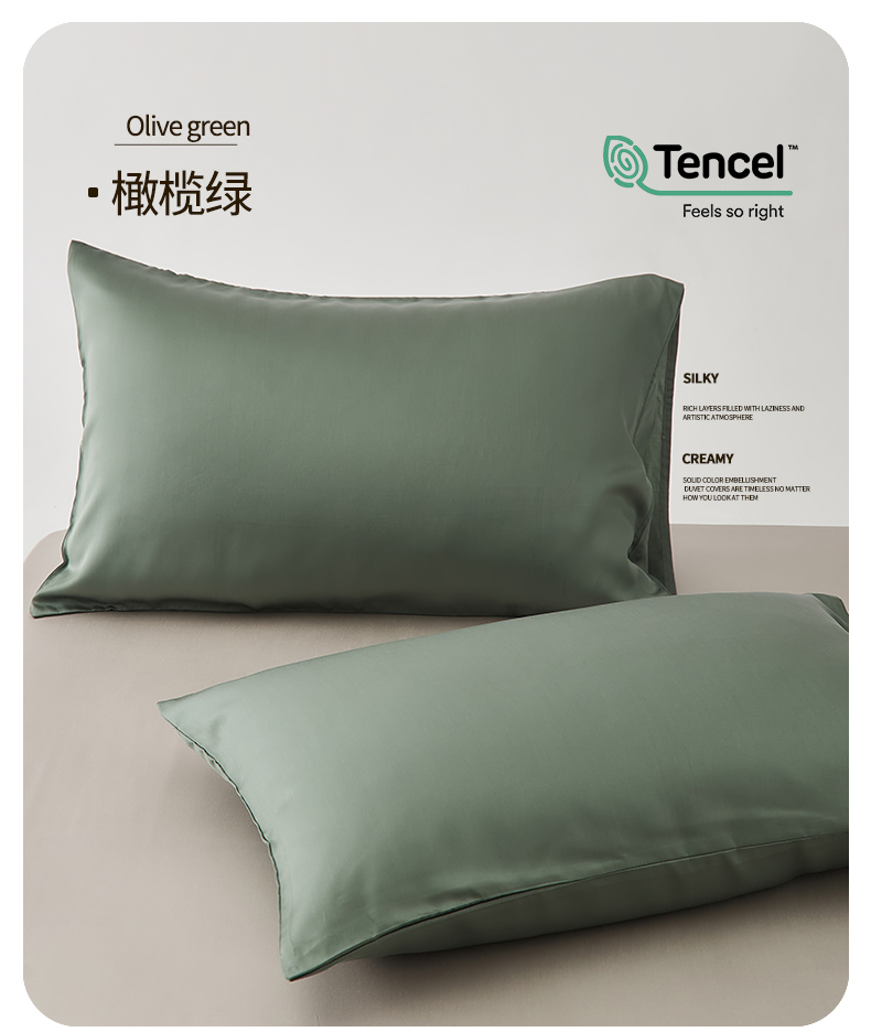 商品名称:禧缘家纺(原梦想家) 2025新款60天丝简约舒适纯色单品系列-单枕套 橄榄绿