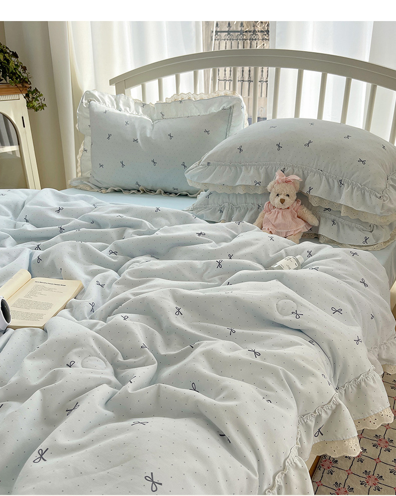 当前位置: 91家纺网 > 商品网购 > 床品套件 > 四件套 > 夏被四件套 > 轻奢坊 2025新款水洗棉双层纱双层花边夏被夏凉被空调被四件套 夏被-波点
