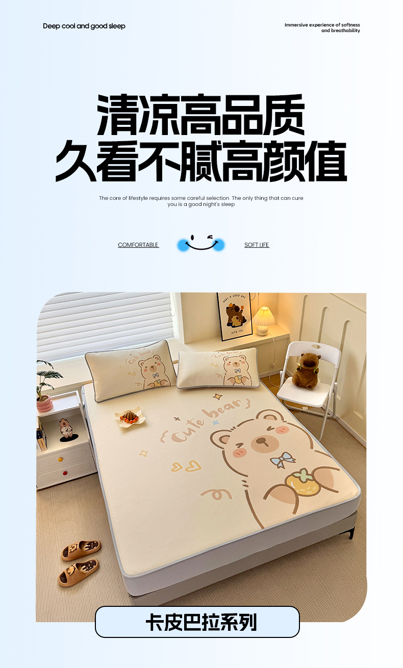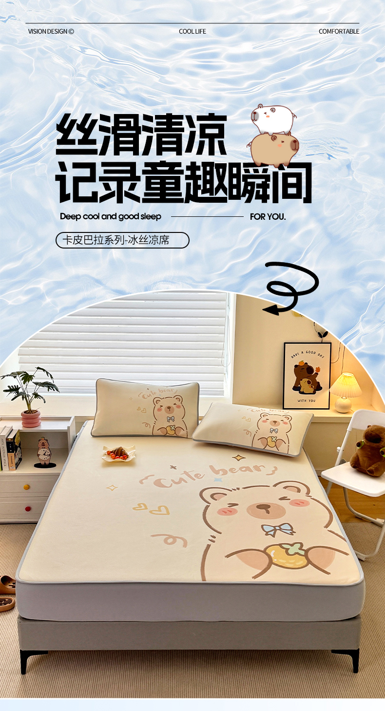 • 91家纺网 家纺一手货源 找家纺 蘭菲家纺 2025新款凉感丝卡皮巴拉凉席 大美豚