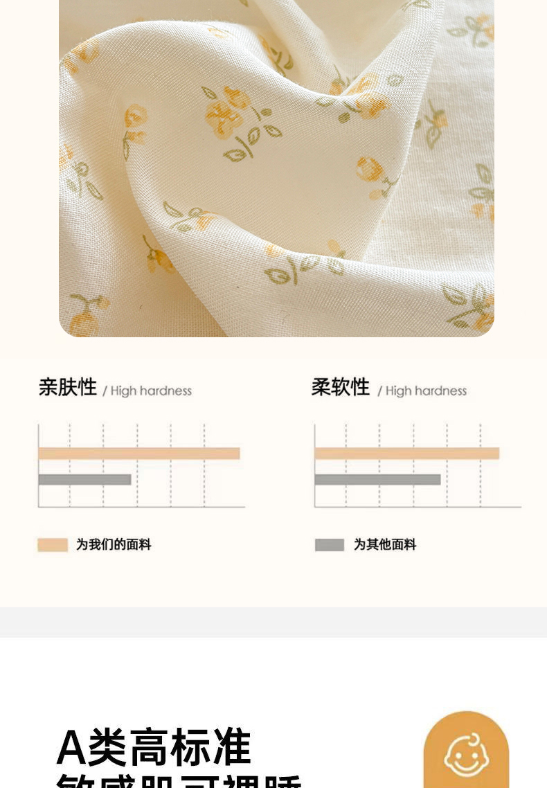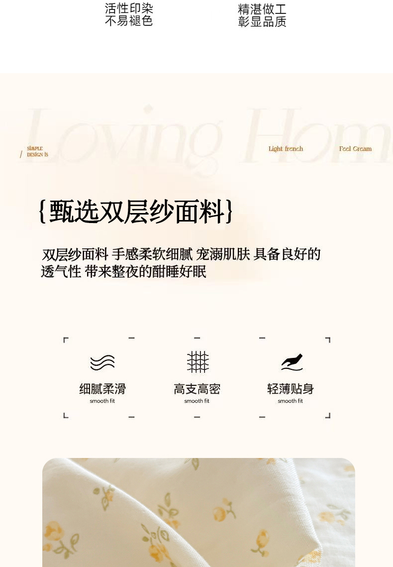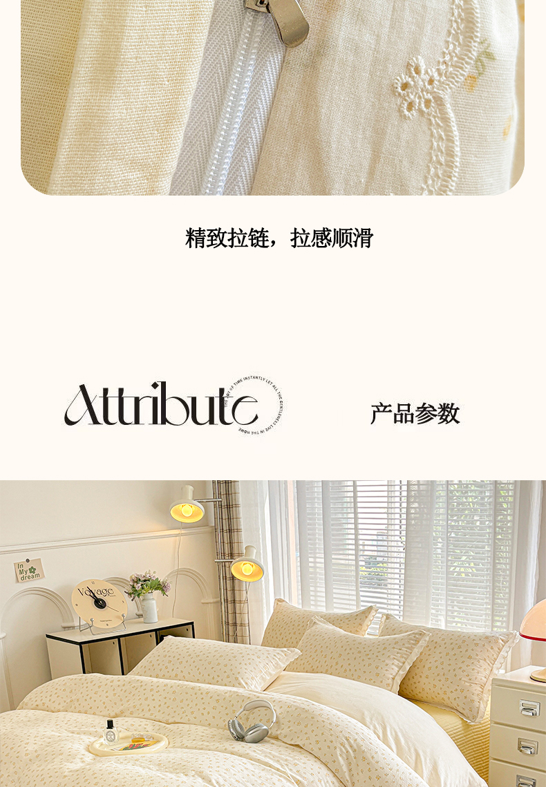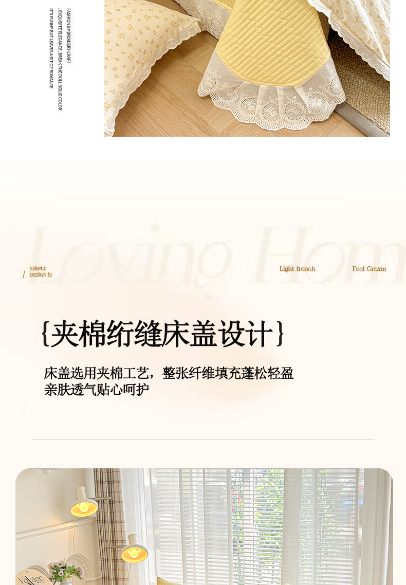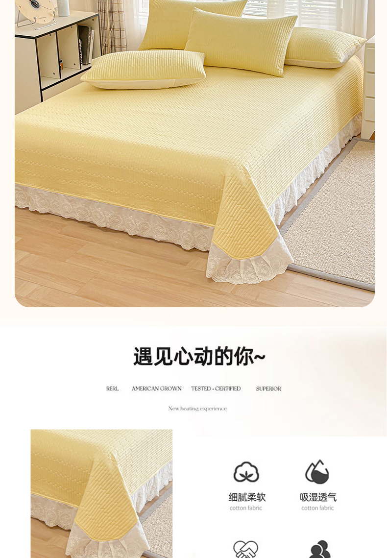 商品名称:金艾草2026新款床盖款A类纯棉双层纱花边四件套 奶油黄-小花