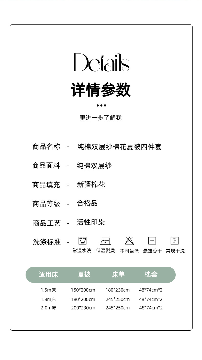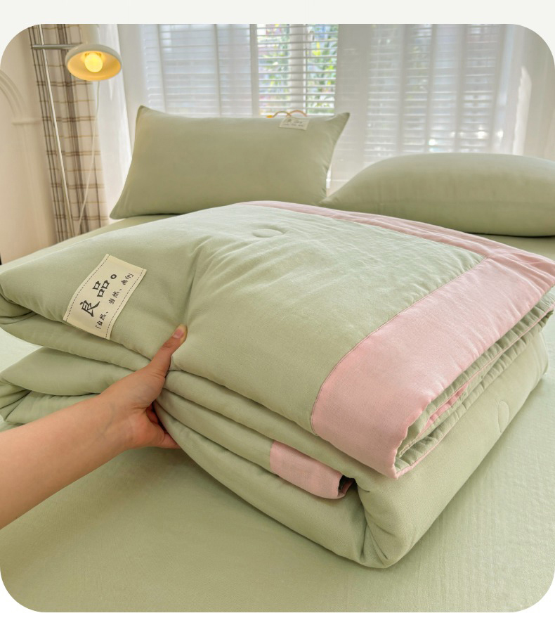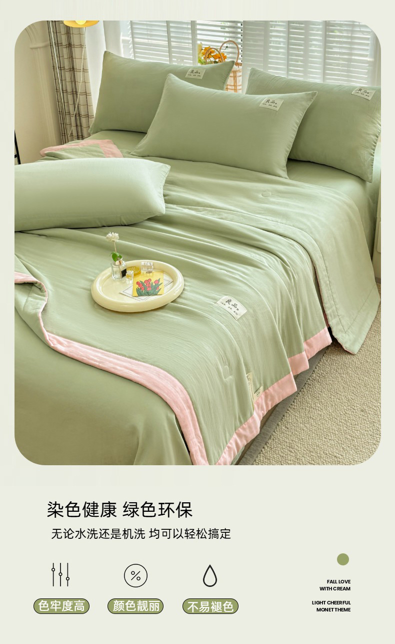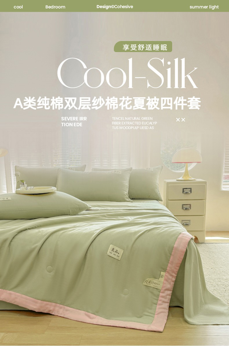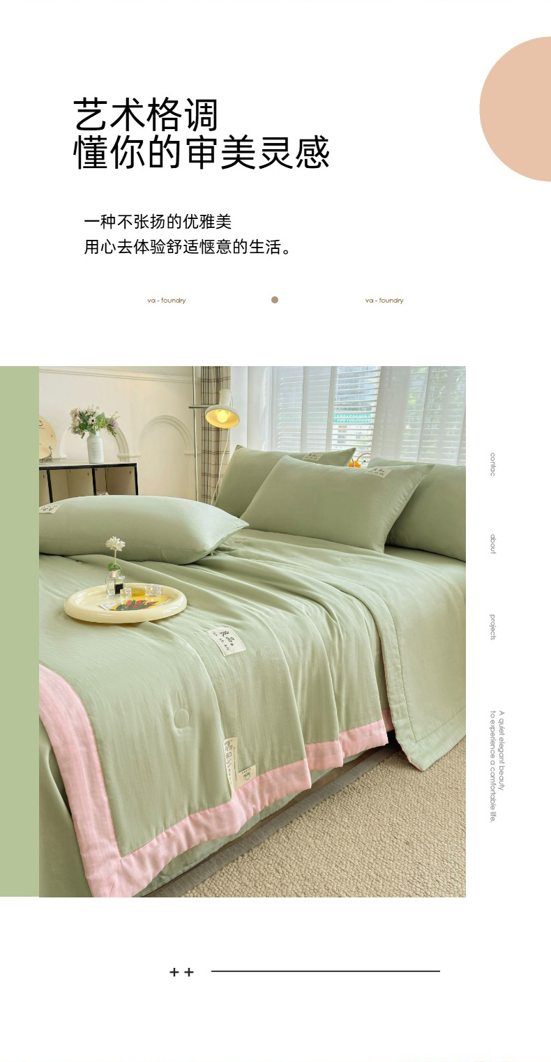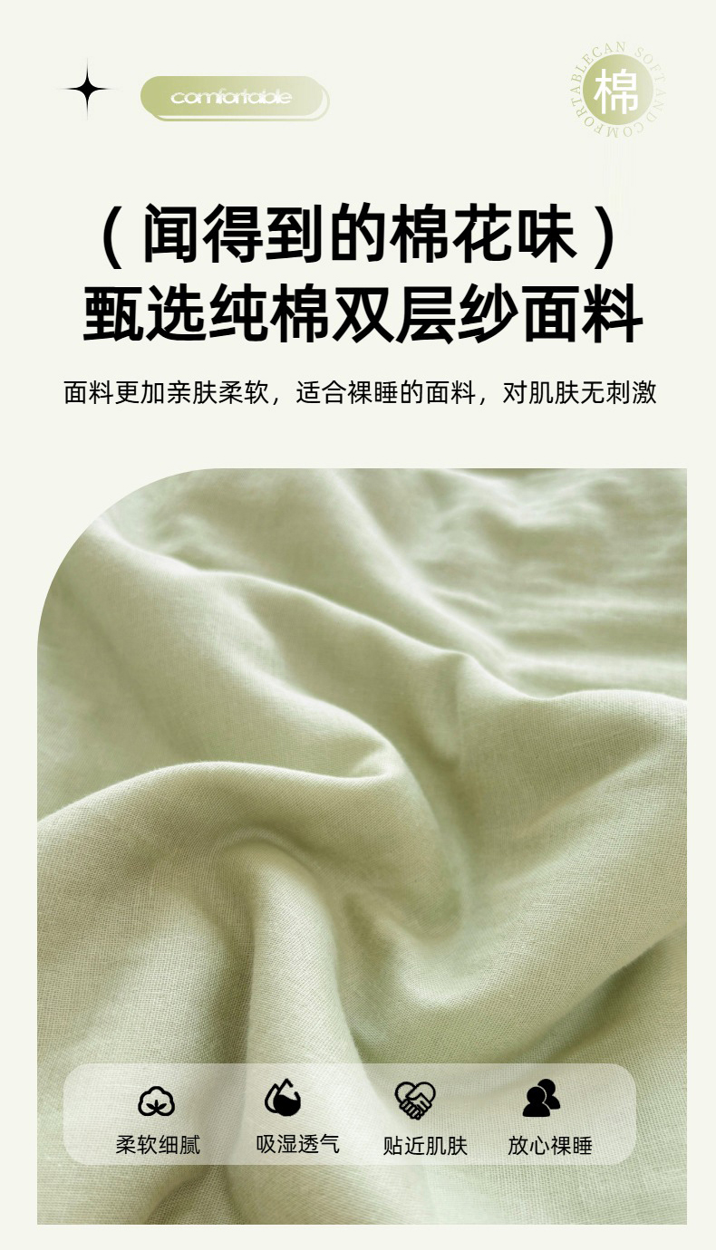 商品名称:(总)金艾草2025新款纯色A类纯棉双层纱夏被四件套