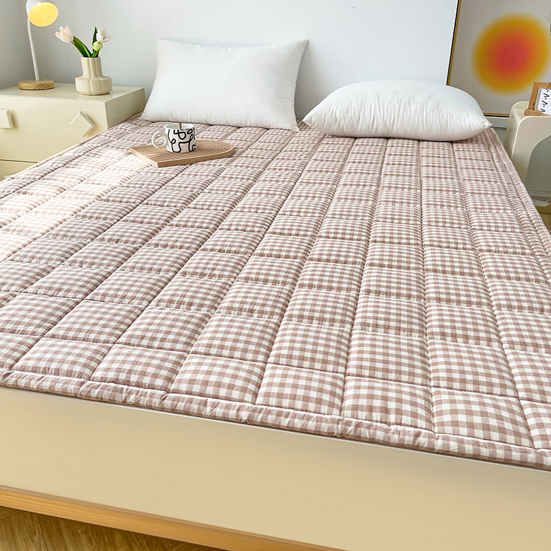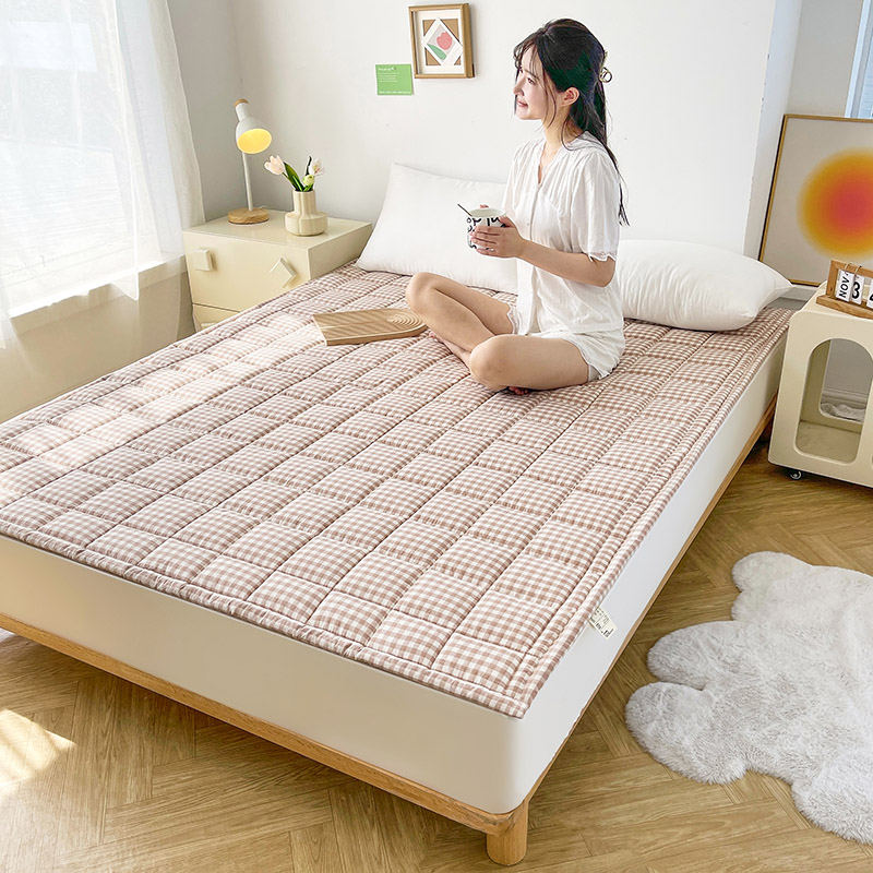 • 91家纺网 家纺一手货源 找家纺 丽诺床垫 2025新款亲肤舒适全棉纯棉色织棉花床褥床垫-少女粉 咖小格