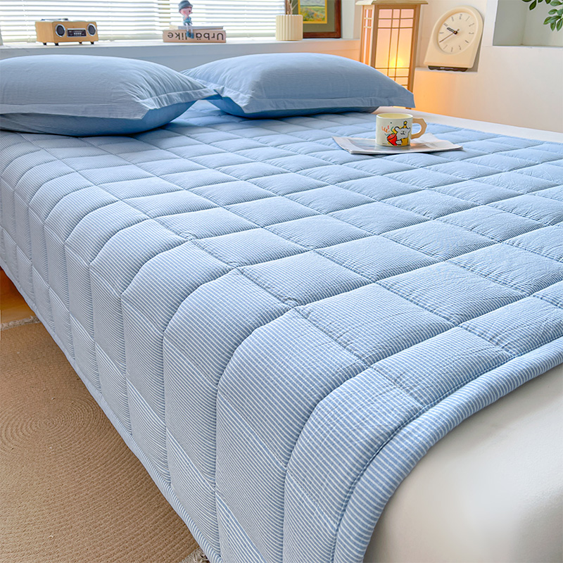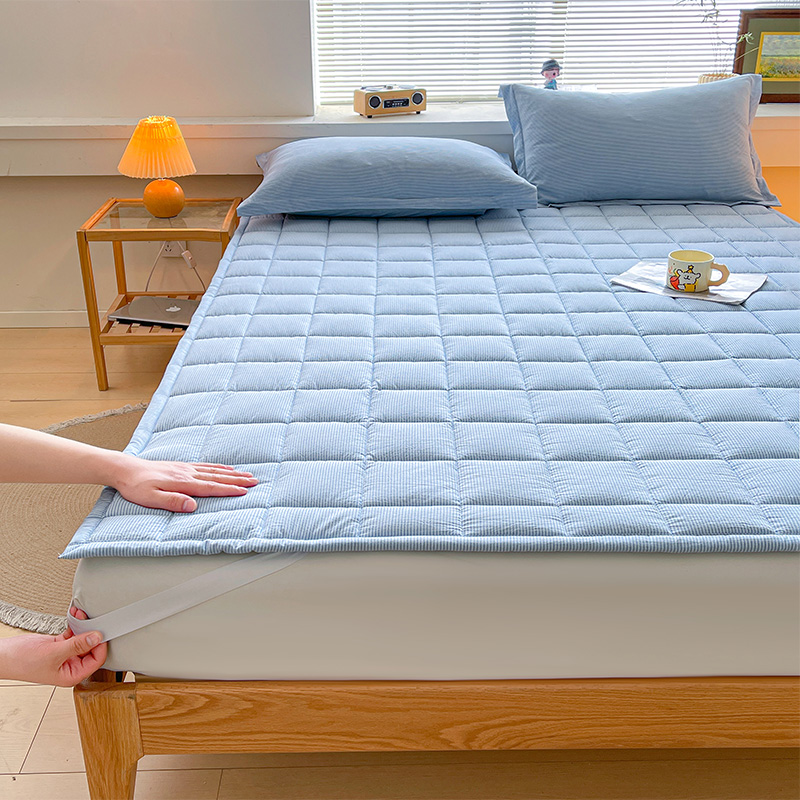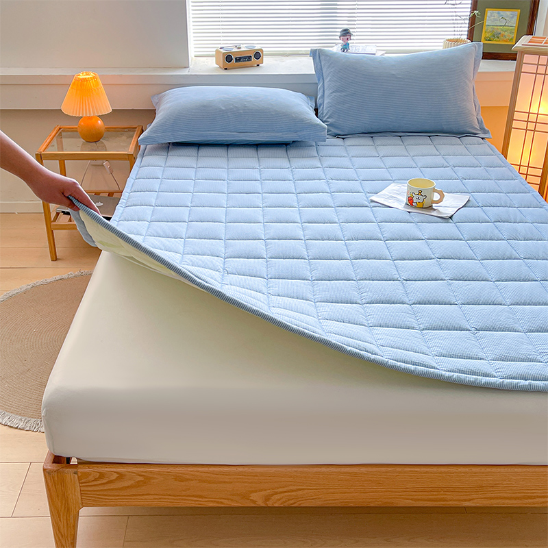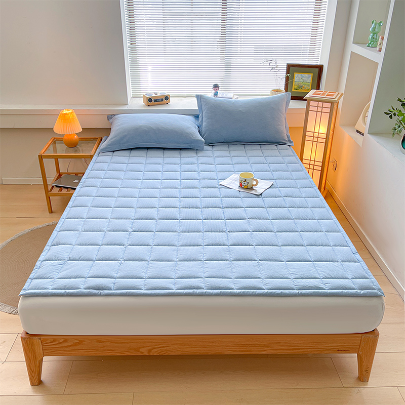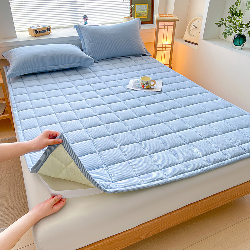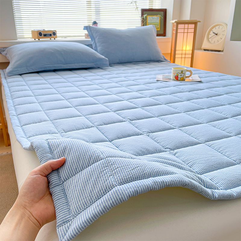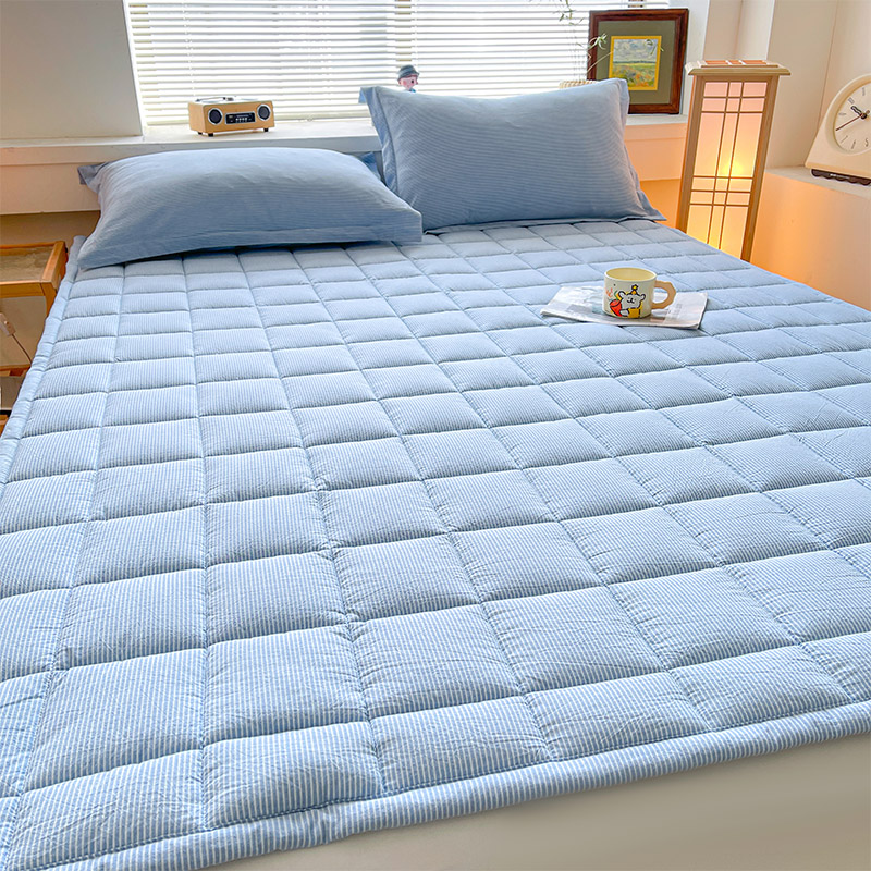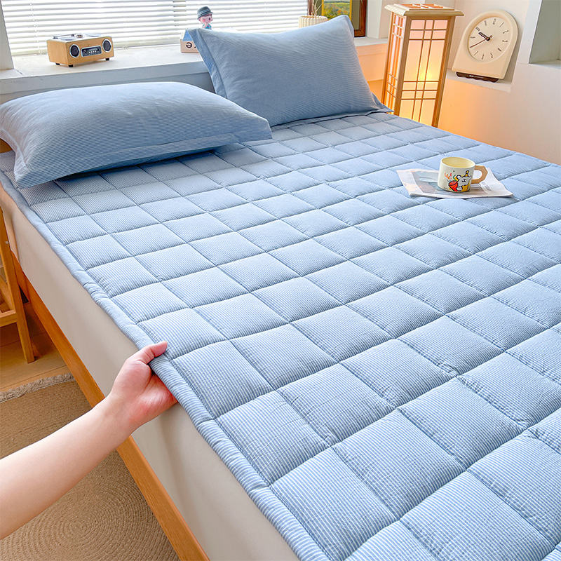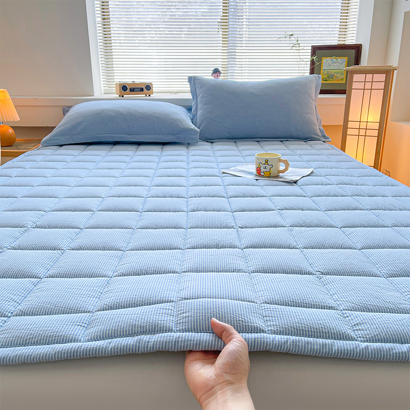 • 91家纺网 家纺一手货源 找家纺 丽诺床垫 2025新款亲肤舒适全棉纯棉色织棉花床褥床垫-少女粉 细条蓝
