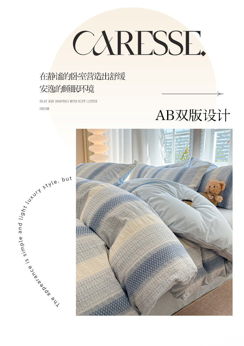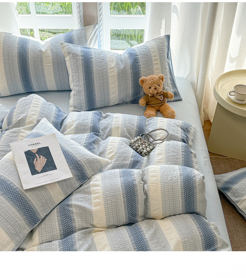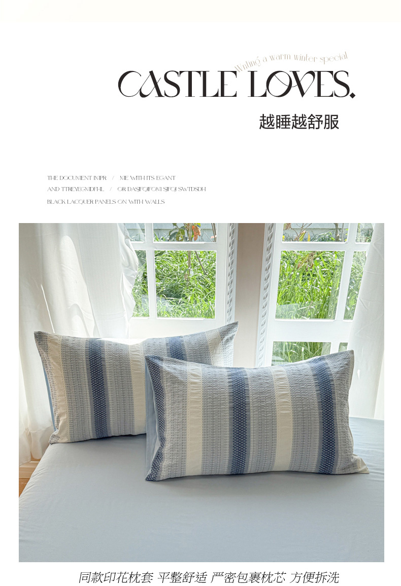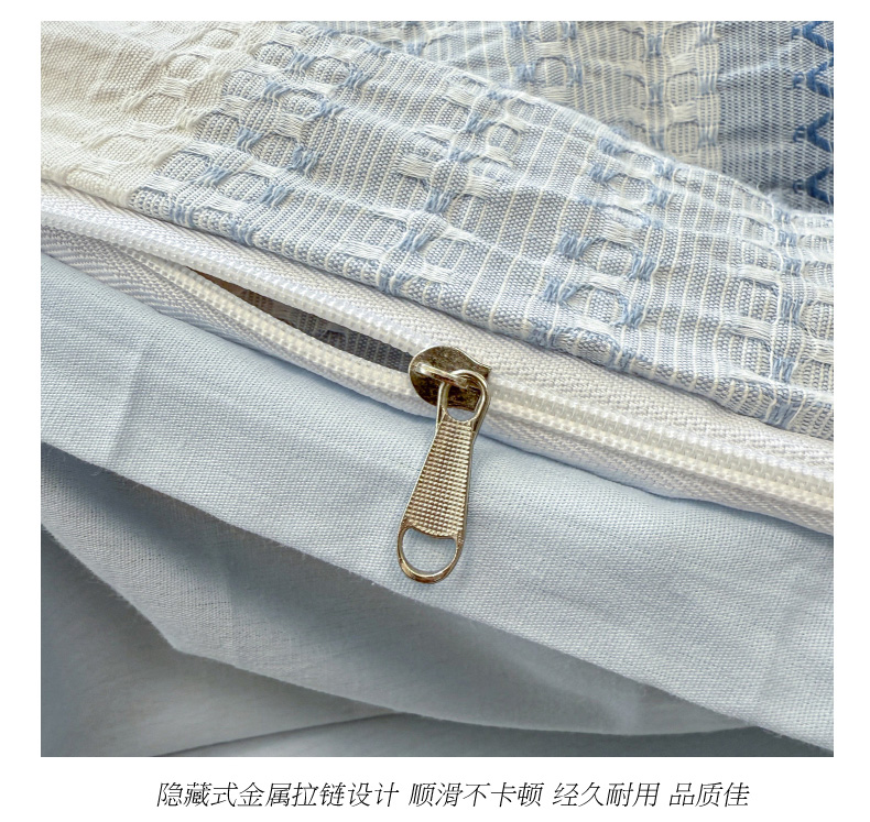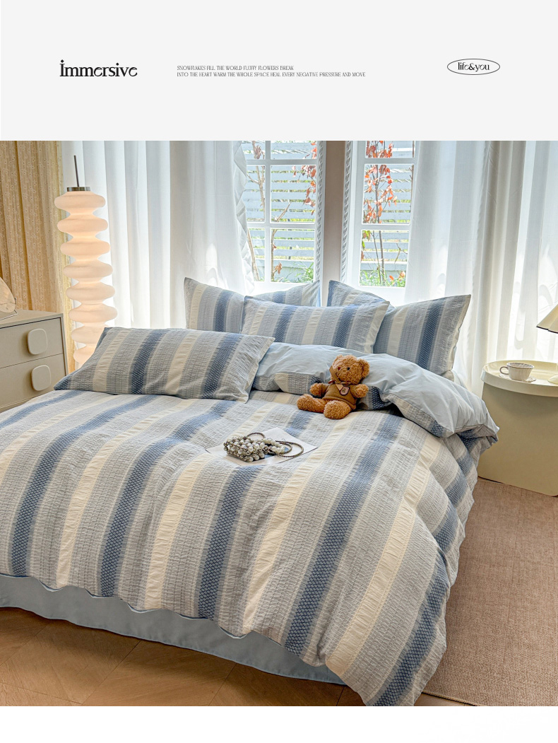 当前位置: 91家纺网 > 商品网购 > 床品套件 > 四件套 > 全棉普通四件套 > 米可2025春夏新款A类色织华夫格提花全棉四件套 沐言-蓝