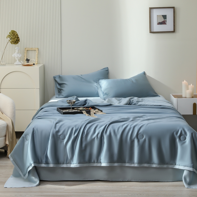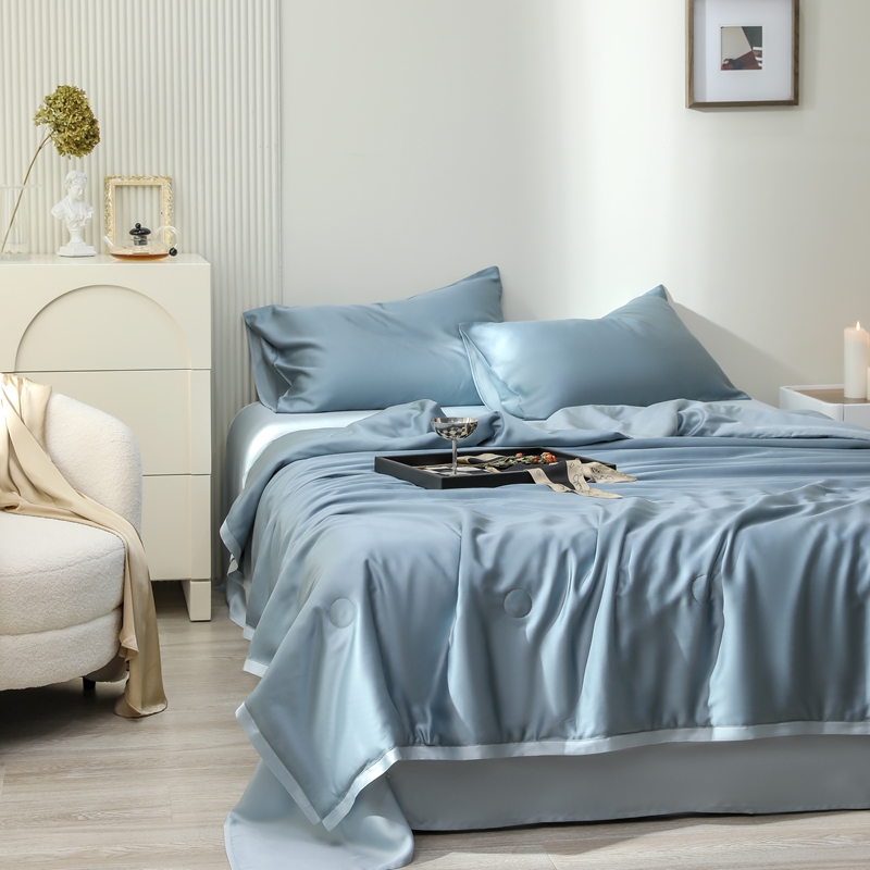 当前位置: 91家纺网 > 商品网购 > 床品套件 > 四件套 > 夏被四件套 > 眷恋家纺 2025春夏新款双拼纯色60天丝夏被四件套 灰蓝色-冰川灰