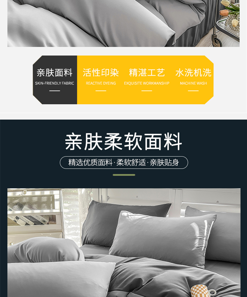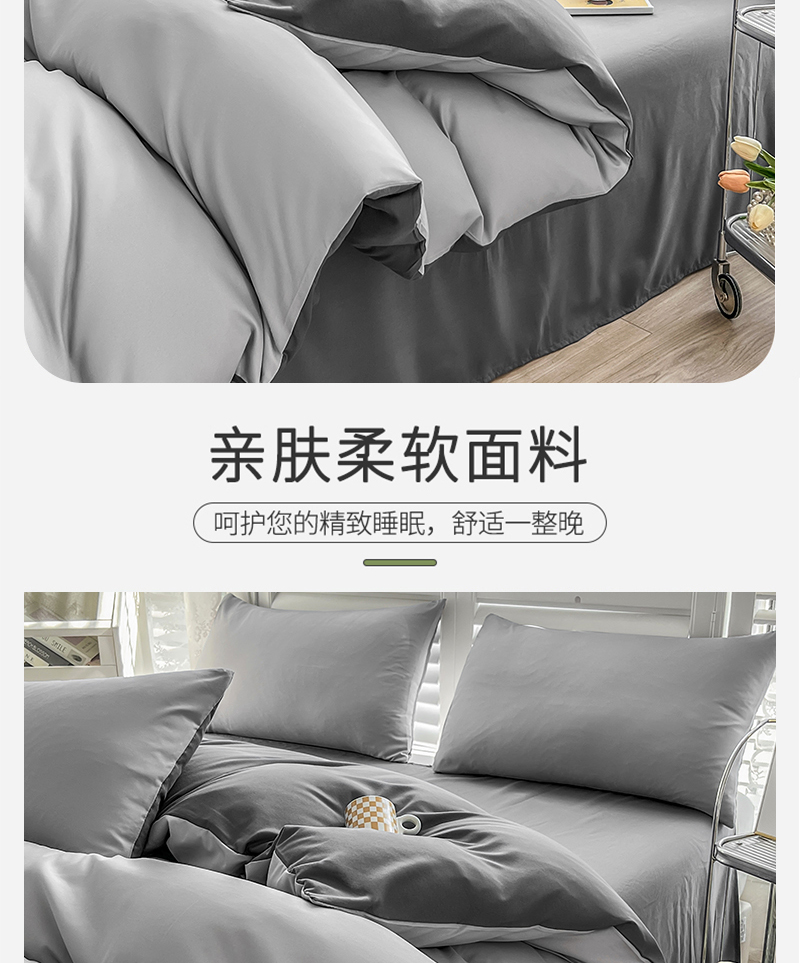 当前位置: 91家纺网 > 商品网购 > 床品套件 > 四件套 > 其它四件套 > 啊雅家居 2025新款学生宿舍双拼磨毛被套床单床笠单品三件套四件套 浅灰加深灰