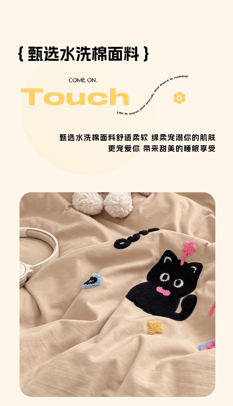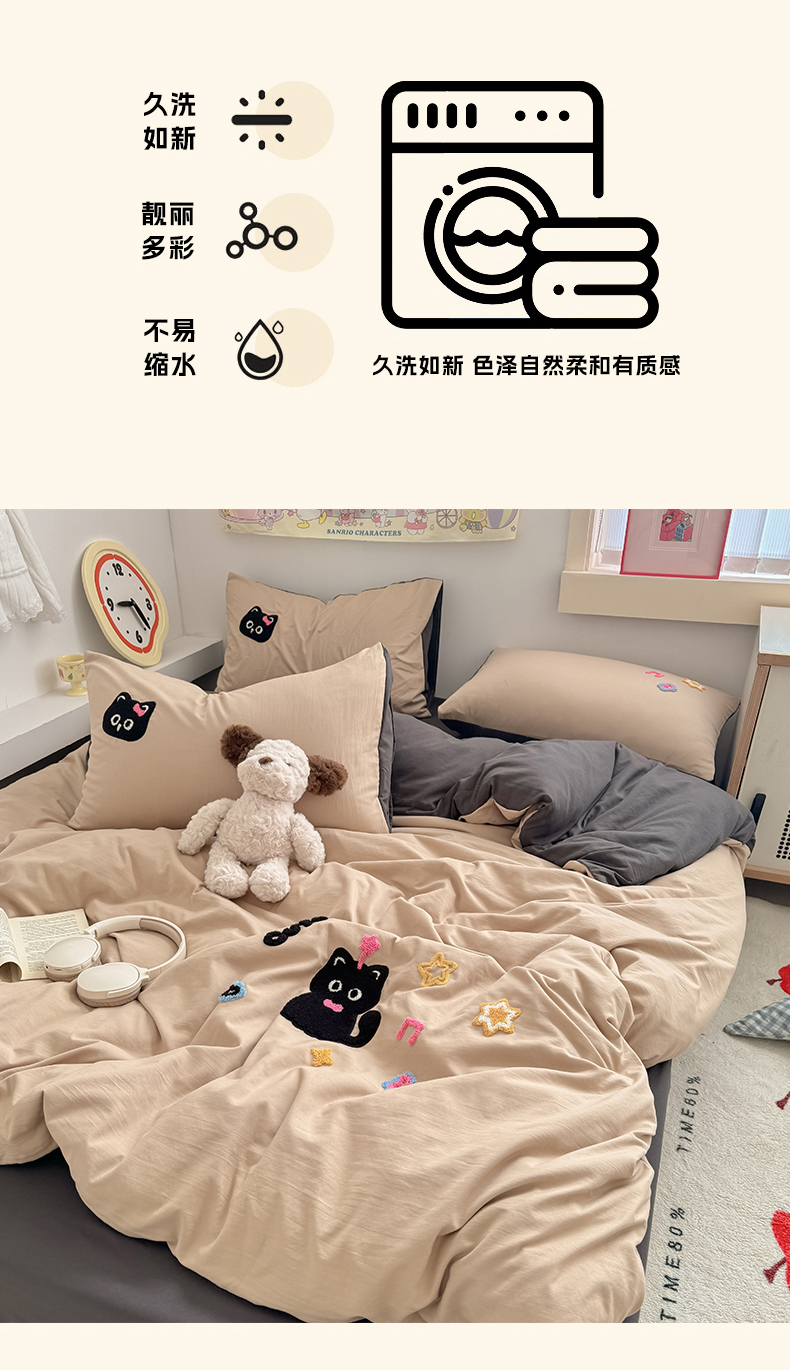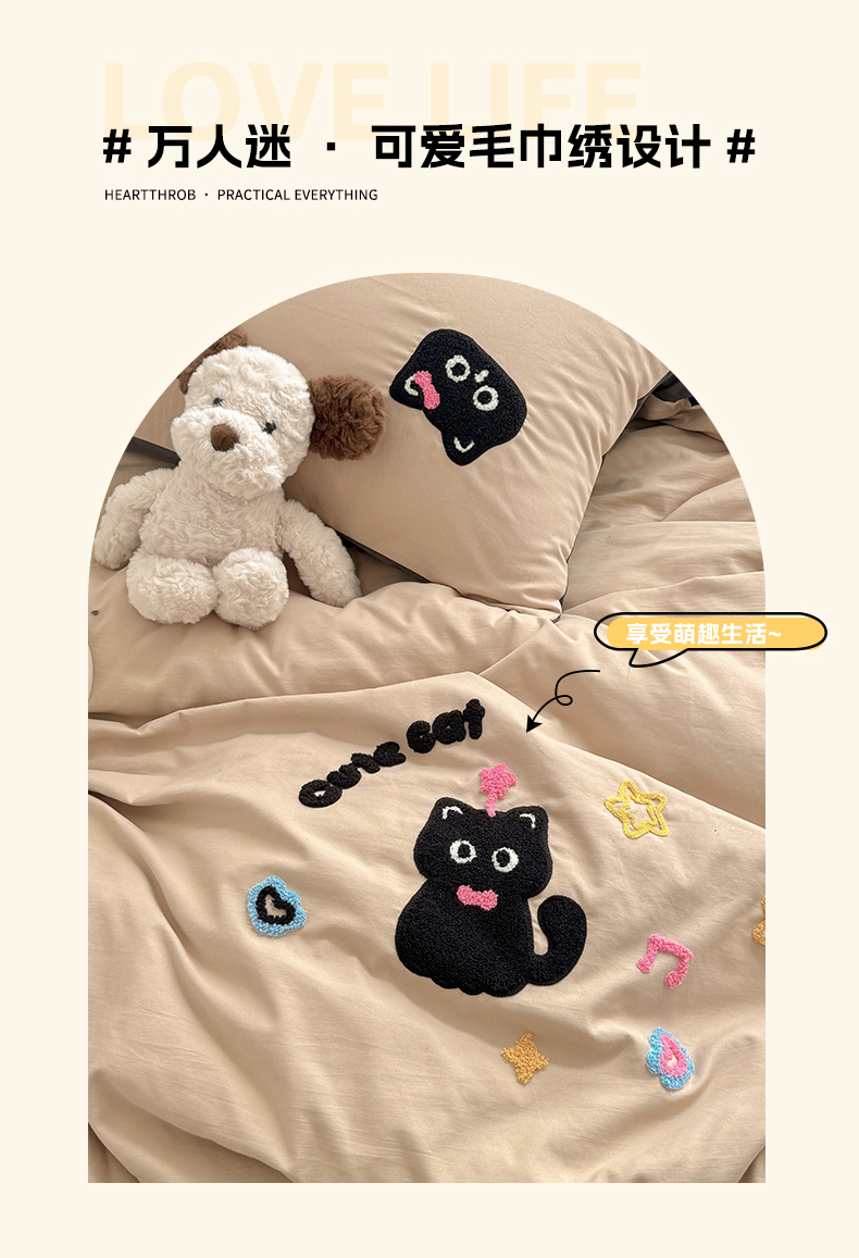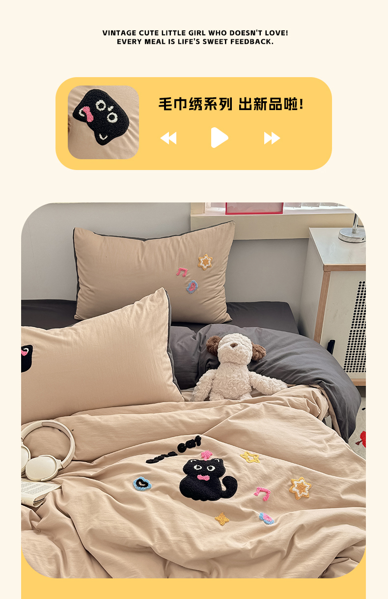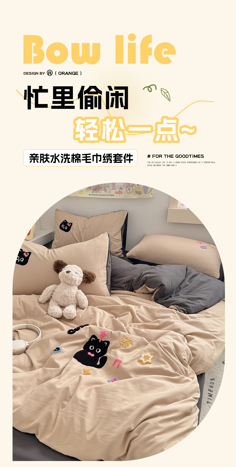 当前位置: 91家纺网 > 商品网购 > 床品套件 > 四件套 > 水洗棉四件套 > 沃朴家居 2025春夏新款亲肤水洗棉毛巾绣四件套 音乐猫咪